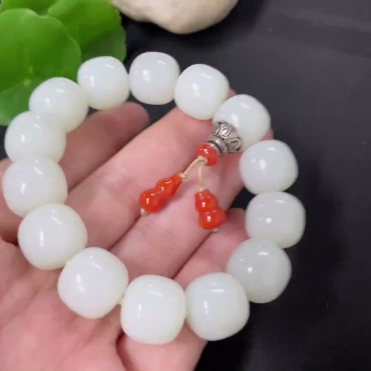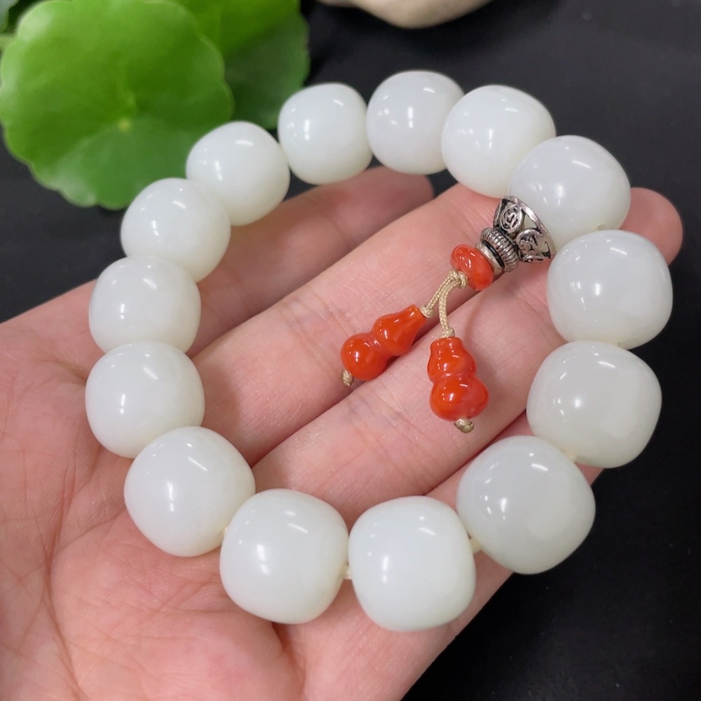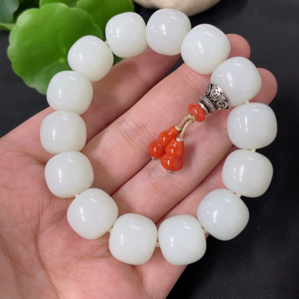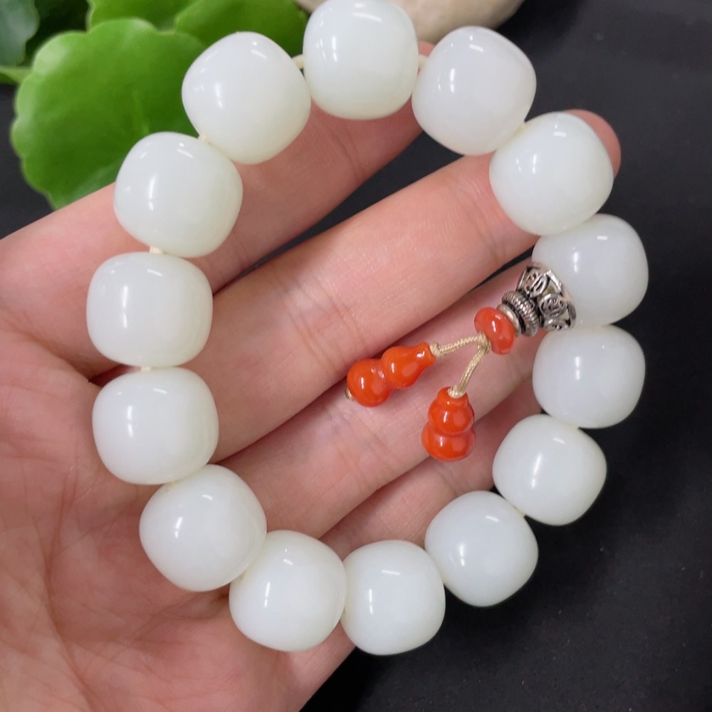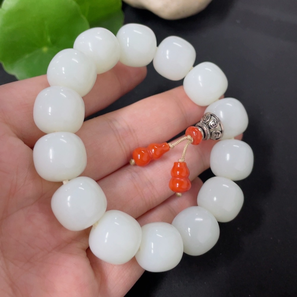 Hetian Jade Bracelet, approx. 13.6mm, total weight approx. 64.6g, beads not Hetian Jade