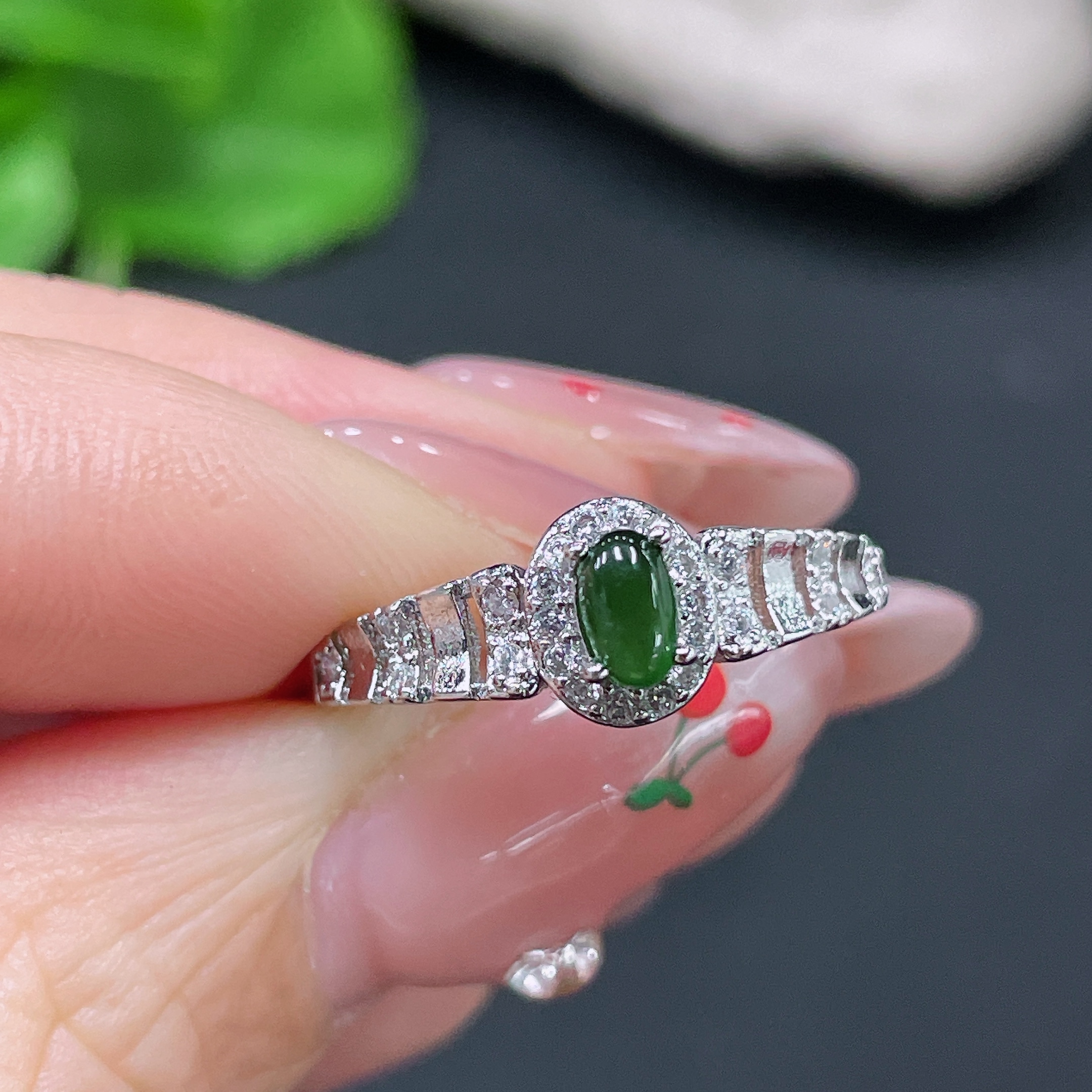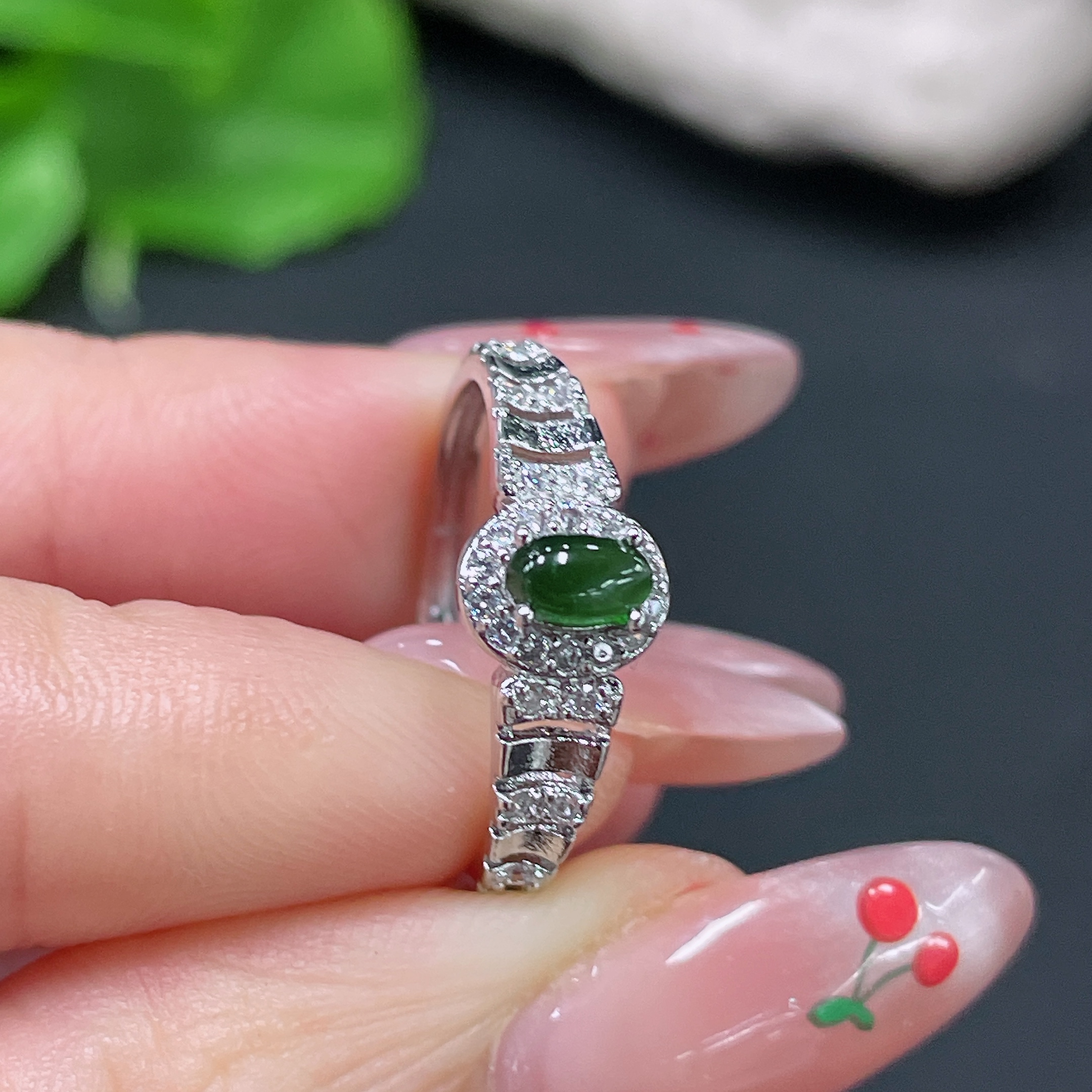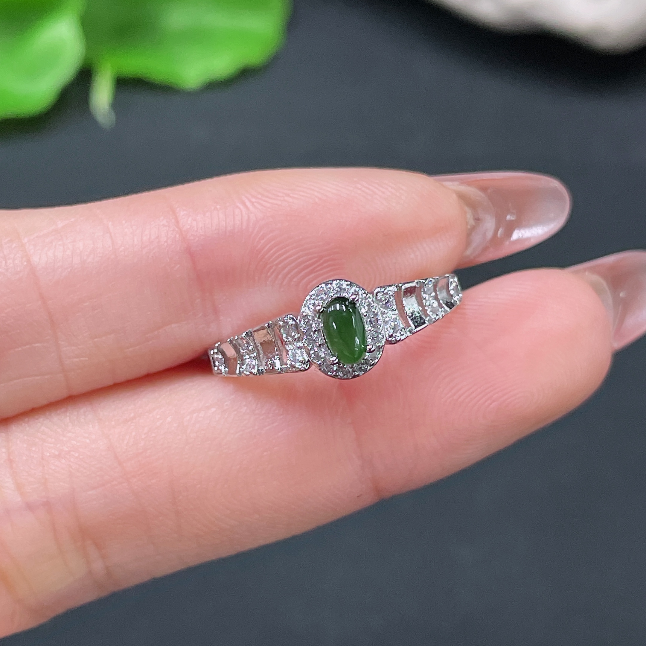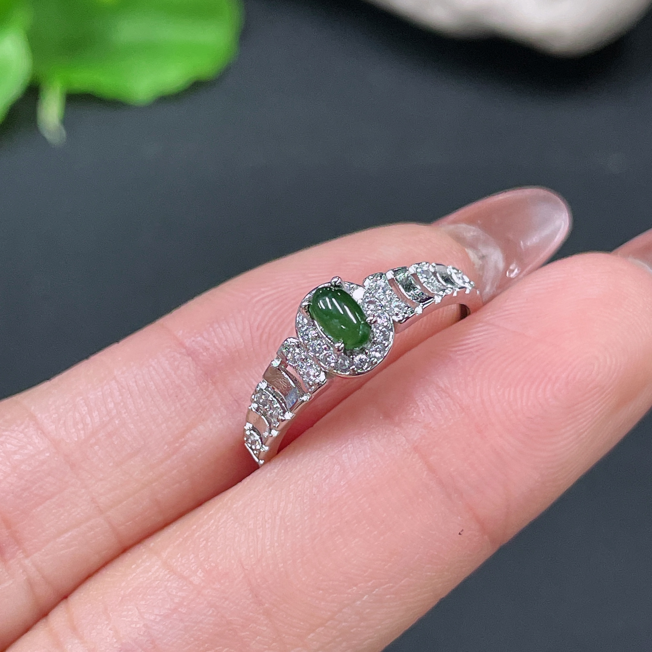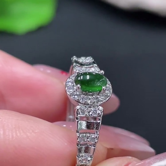 Jadeite Cabochon Inlaid Ring Non-Gold Adjustable Total Weight Approx. 1.42g