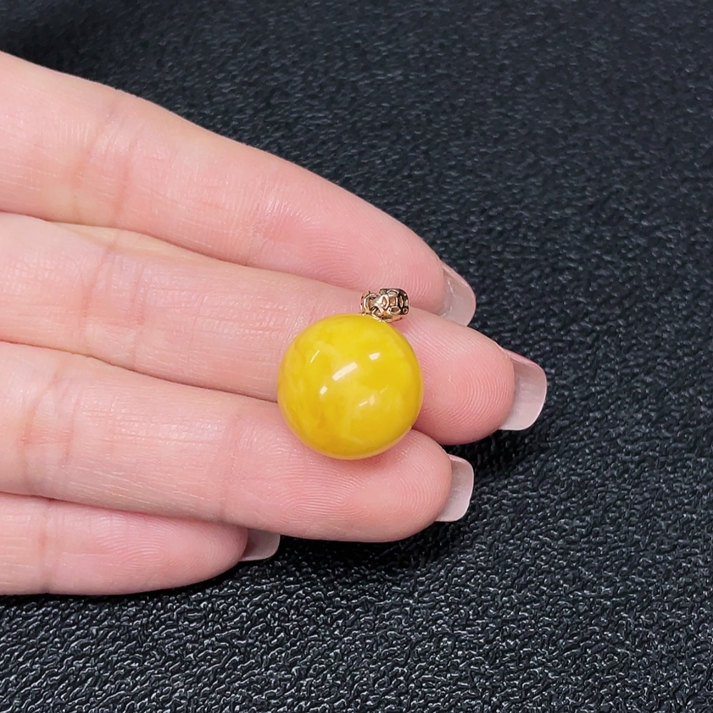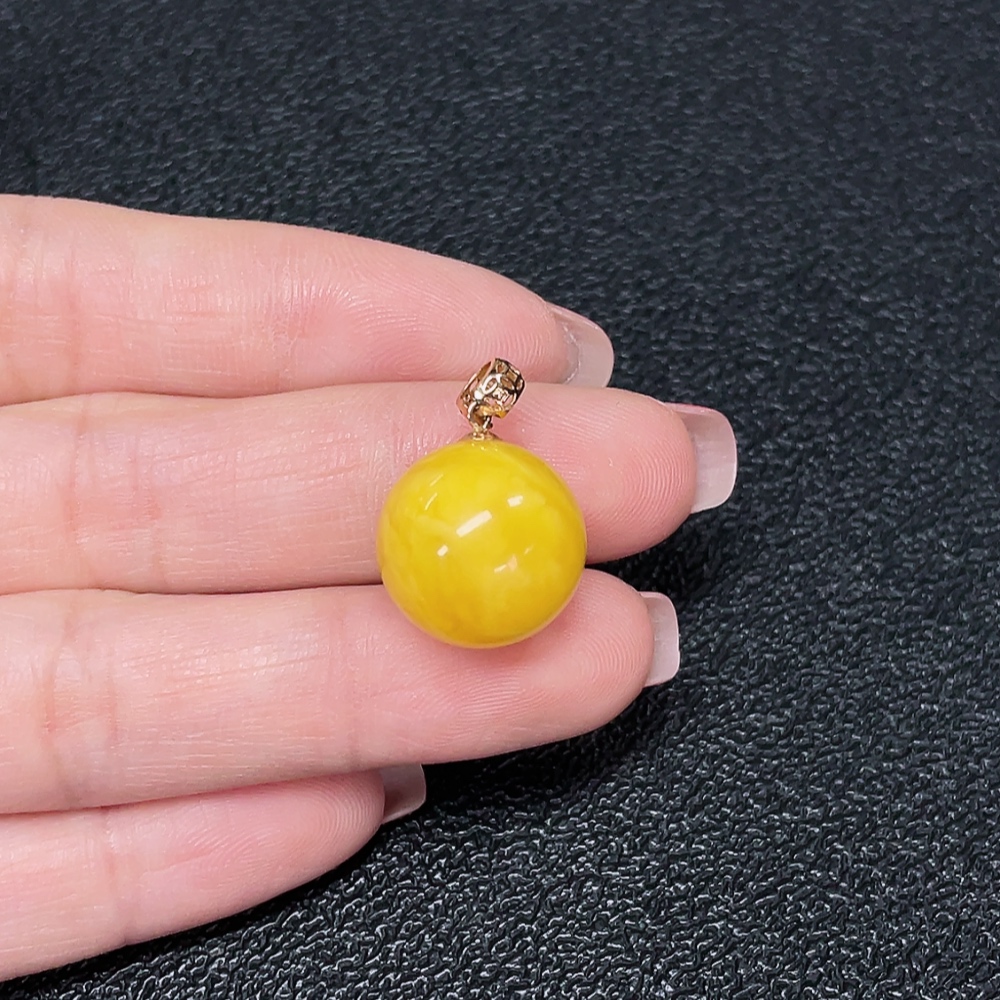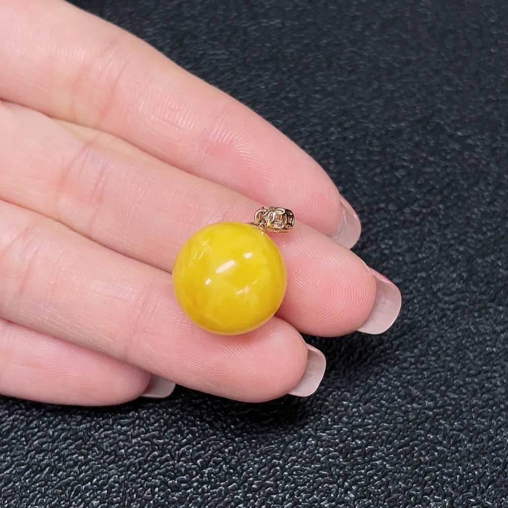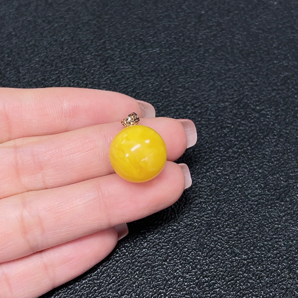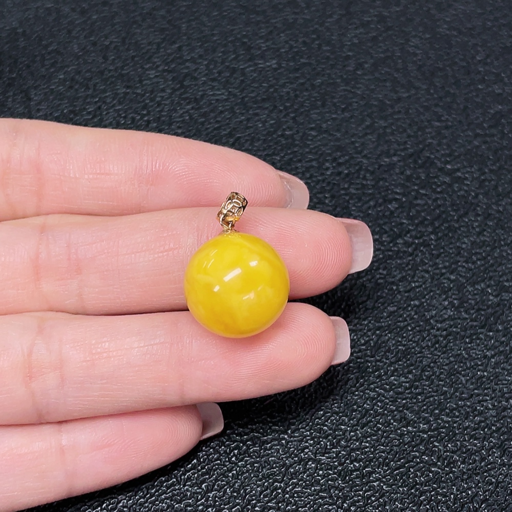 18K Gold Amber Beeswax Pendant, Total Weight Approx. 2.03g, Size Approx. 14.7mm
