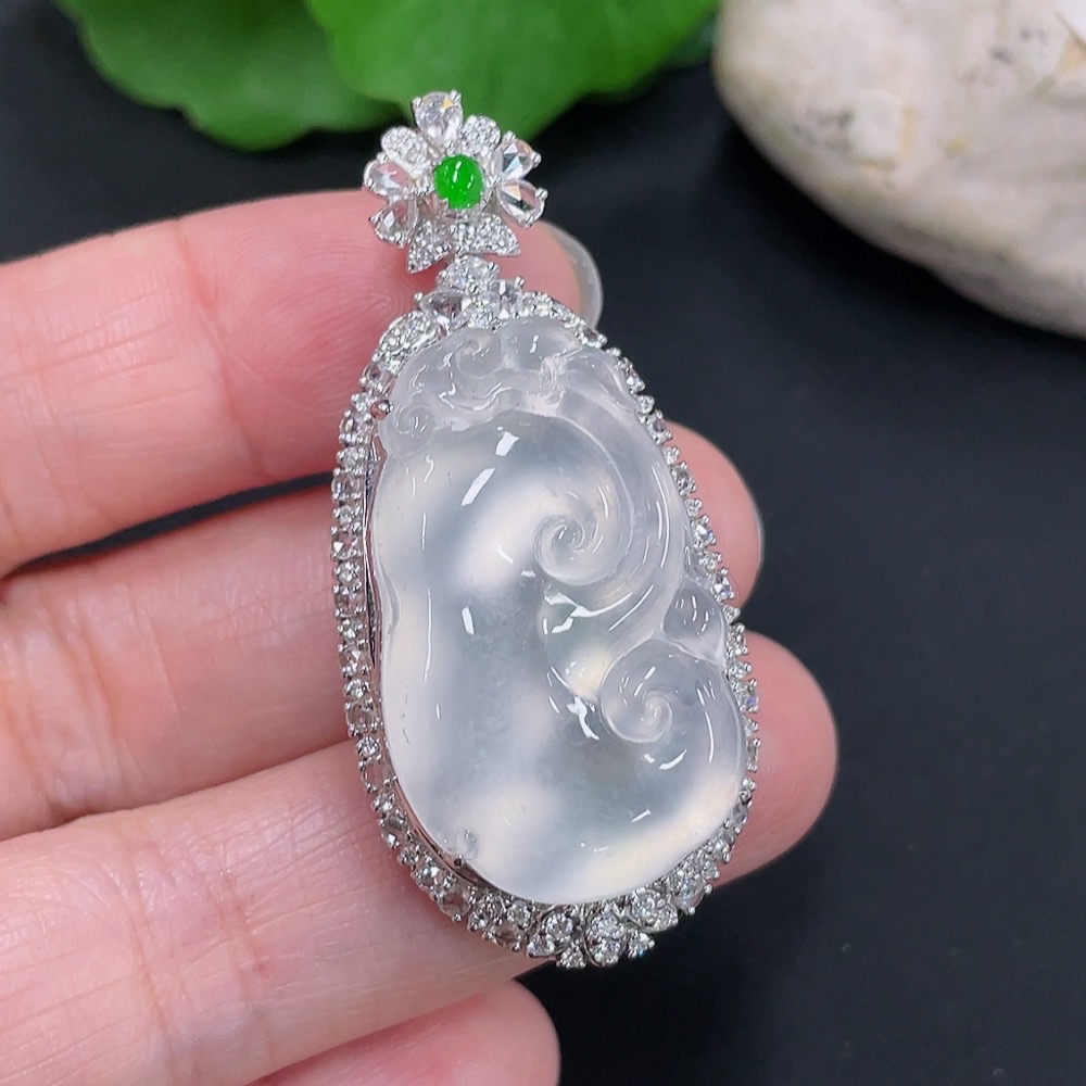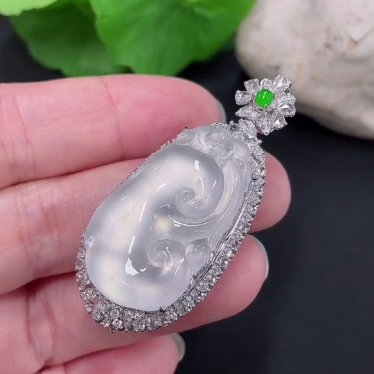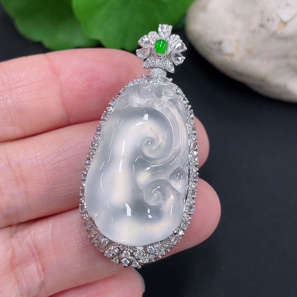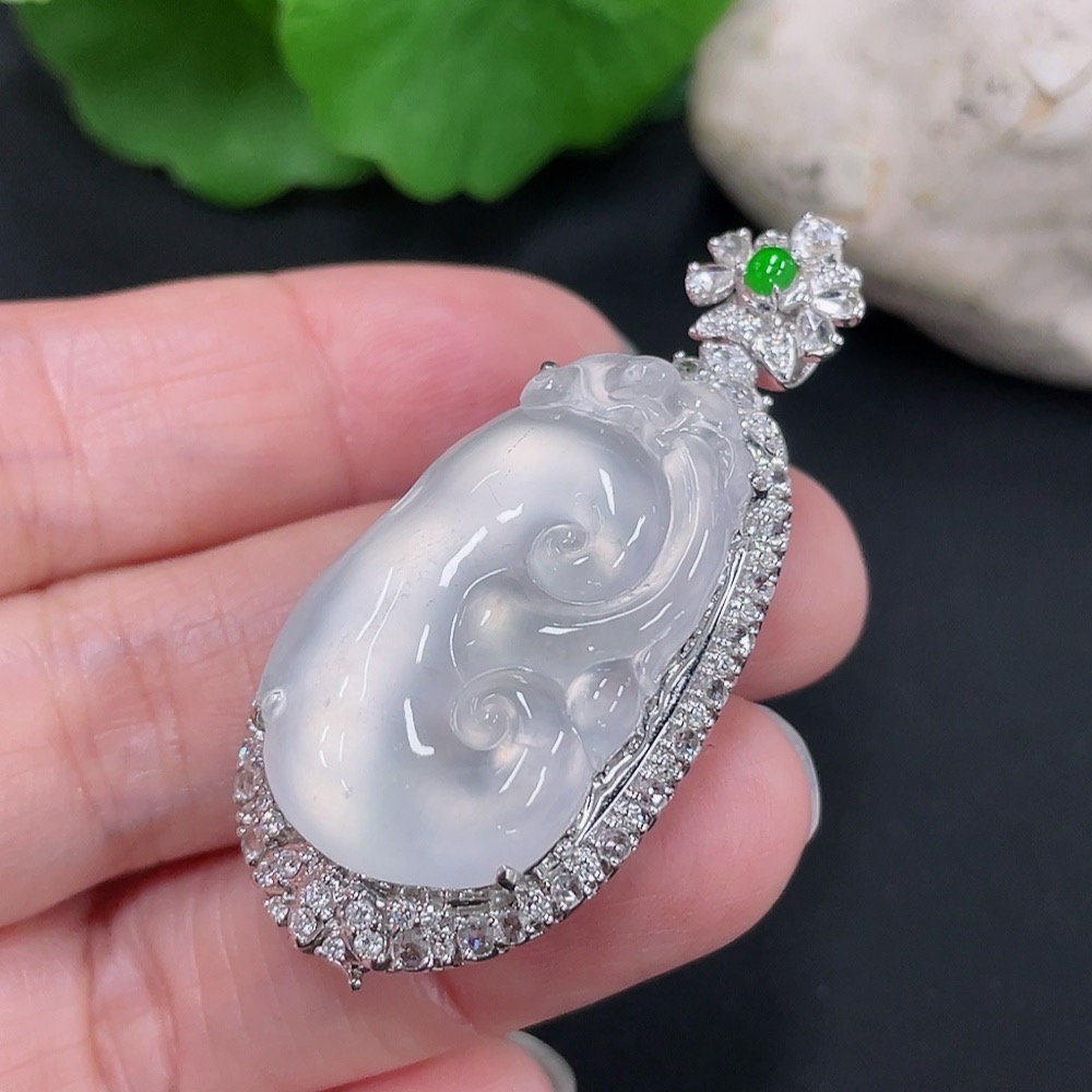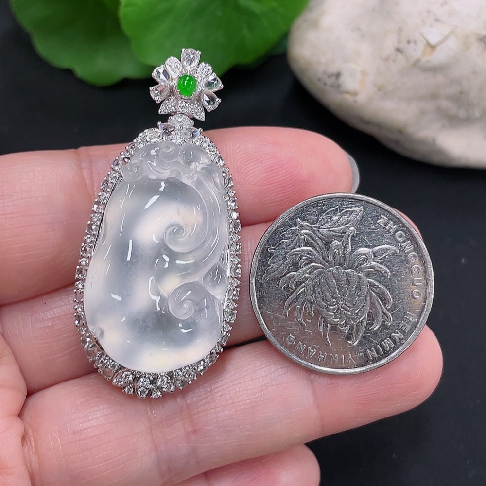 Jadeite Ruyi Inlaid Pendant 18K Gold Total Weight Approx. 13g (With Diamond Accents)