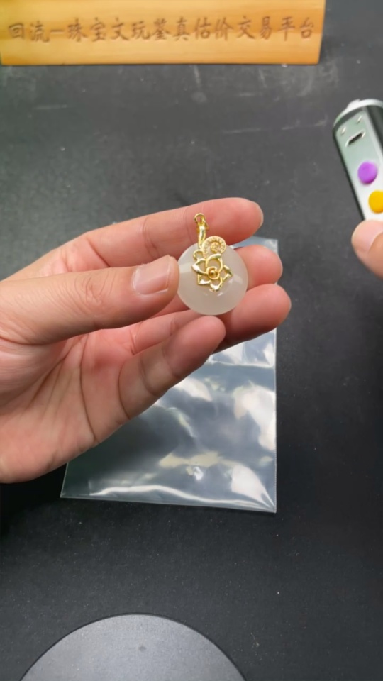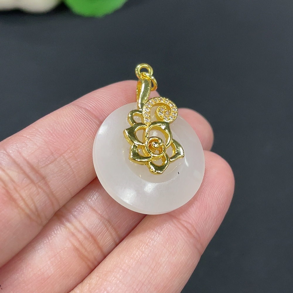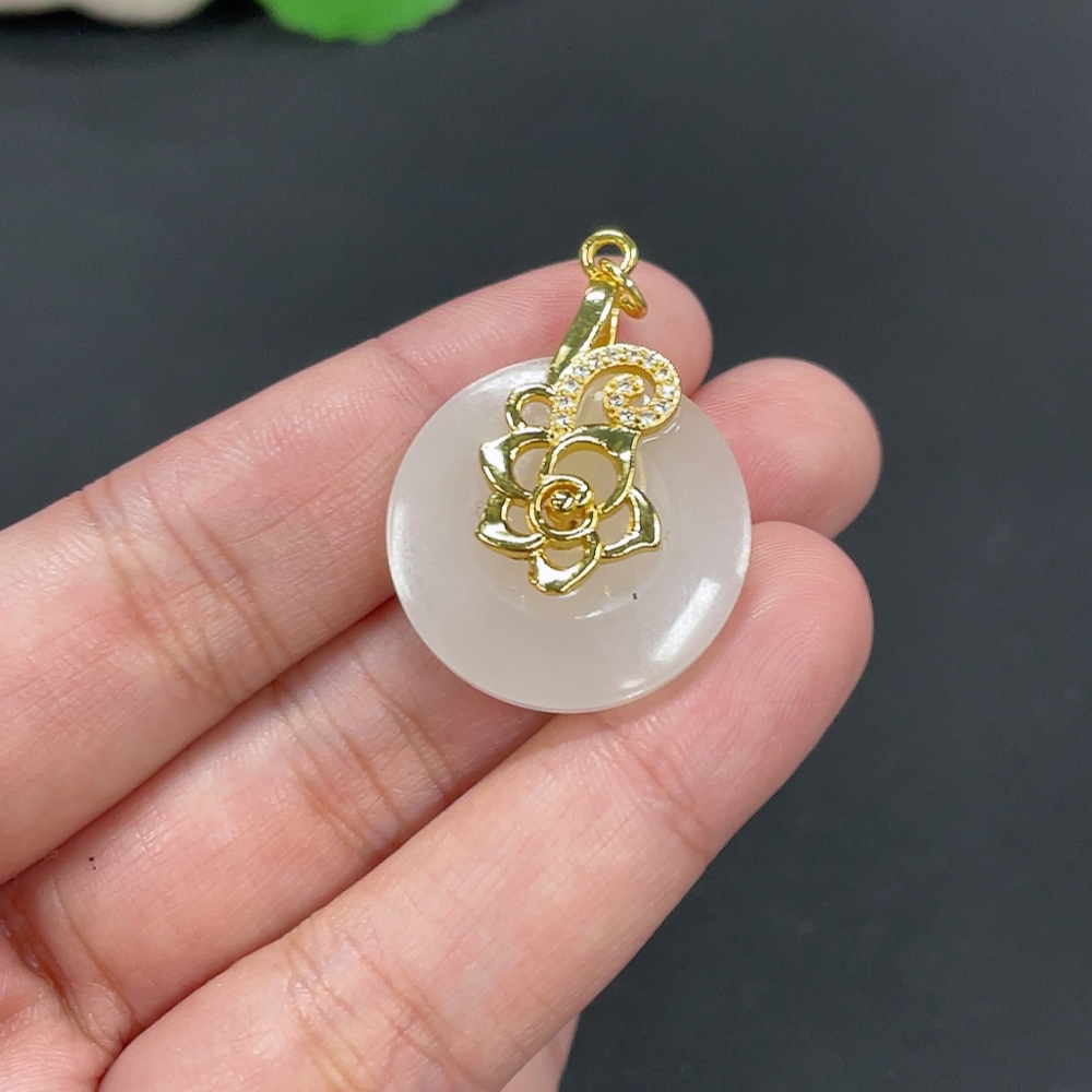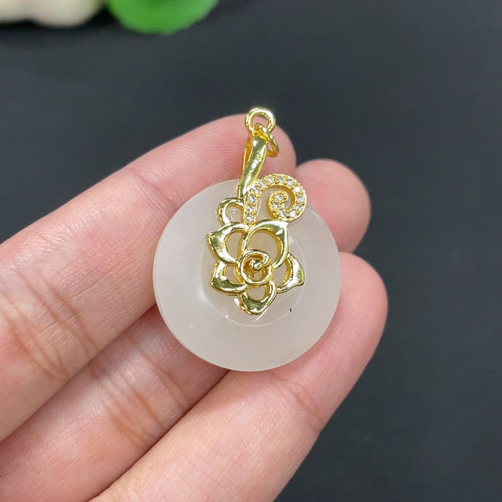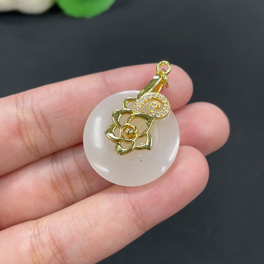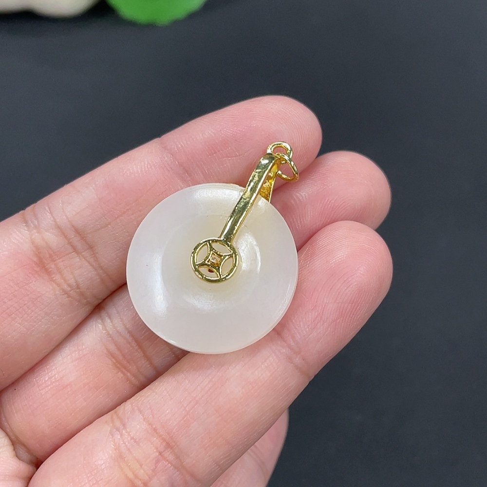 Hetian Jade Inlaid Pendant Peace Button, Total Weight Approx. 6.8g, Non-Gold