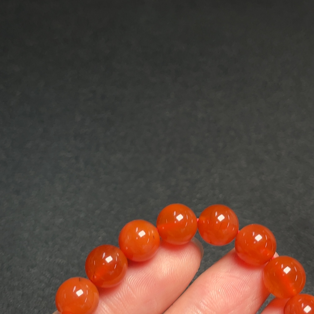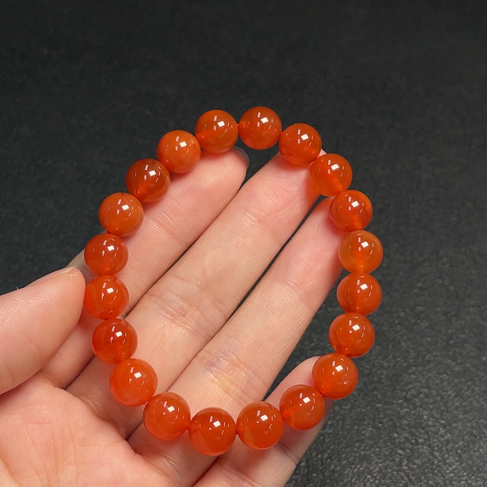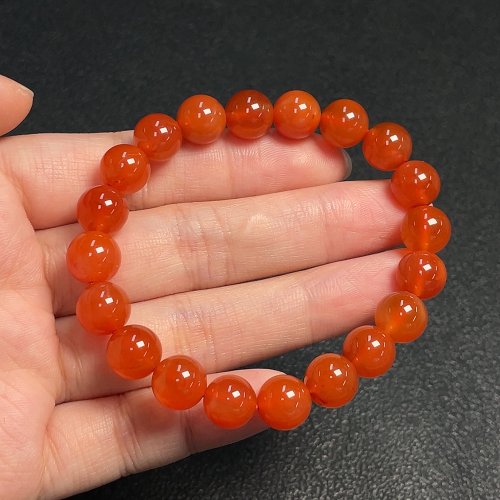 Red Agate Bracelet with Visible Organic Matter, Total Weight Approx. 21.19g, Bead Size ~9.1mm