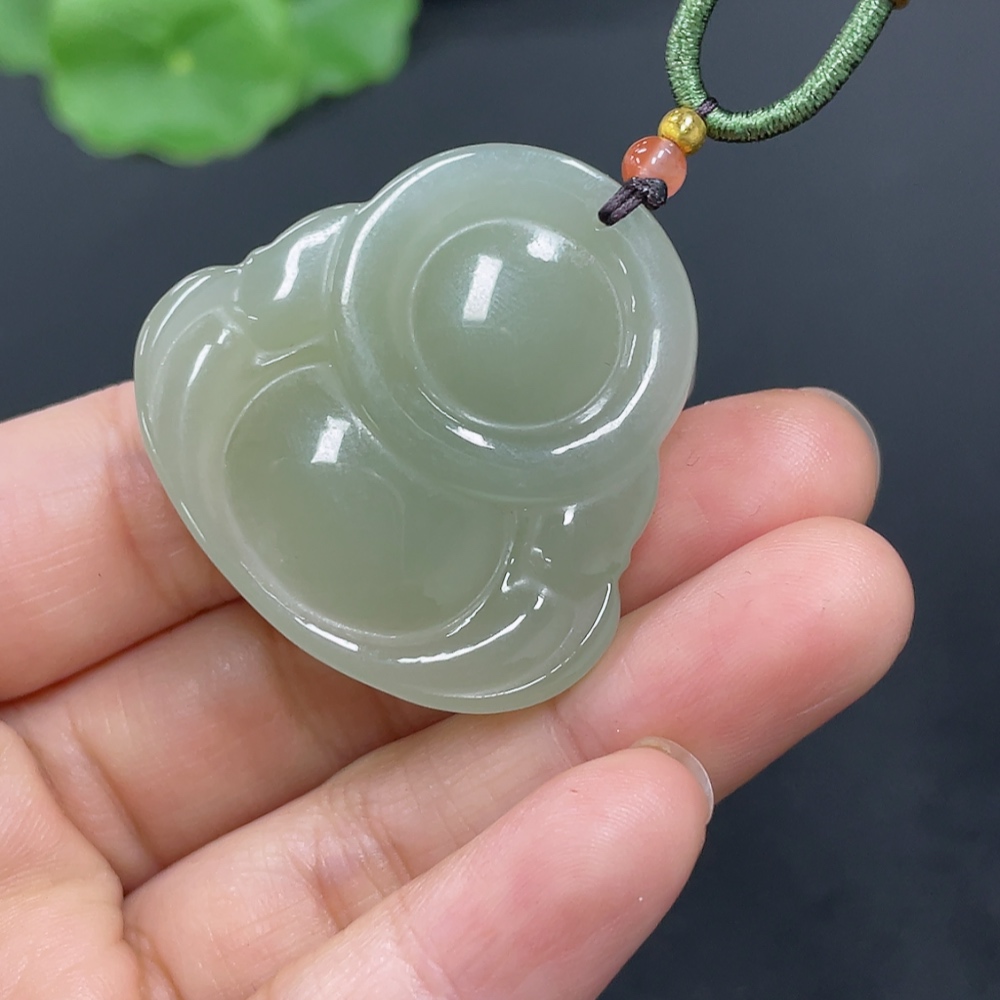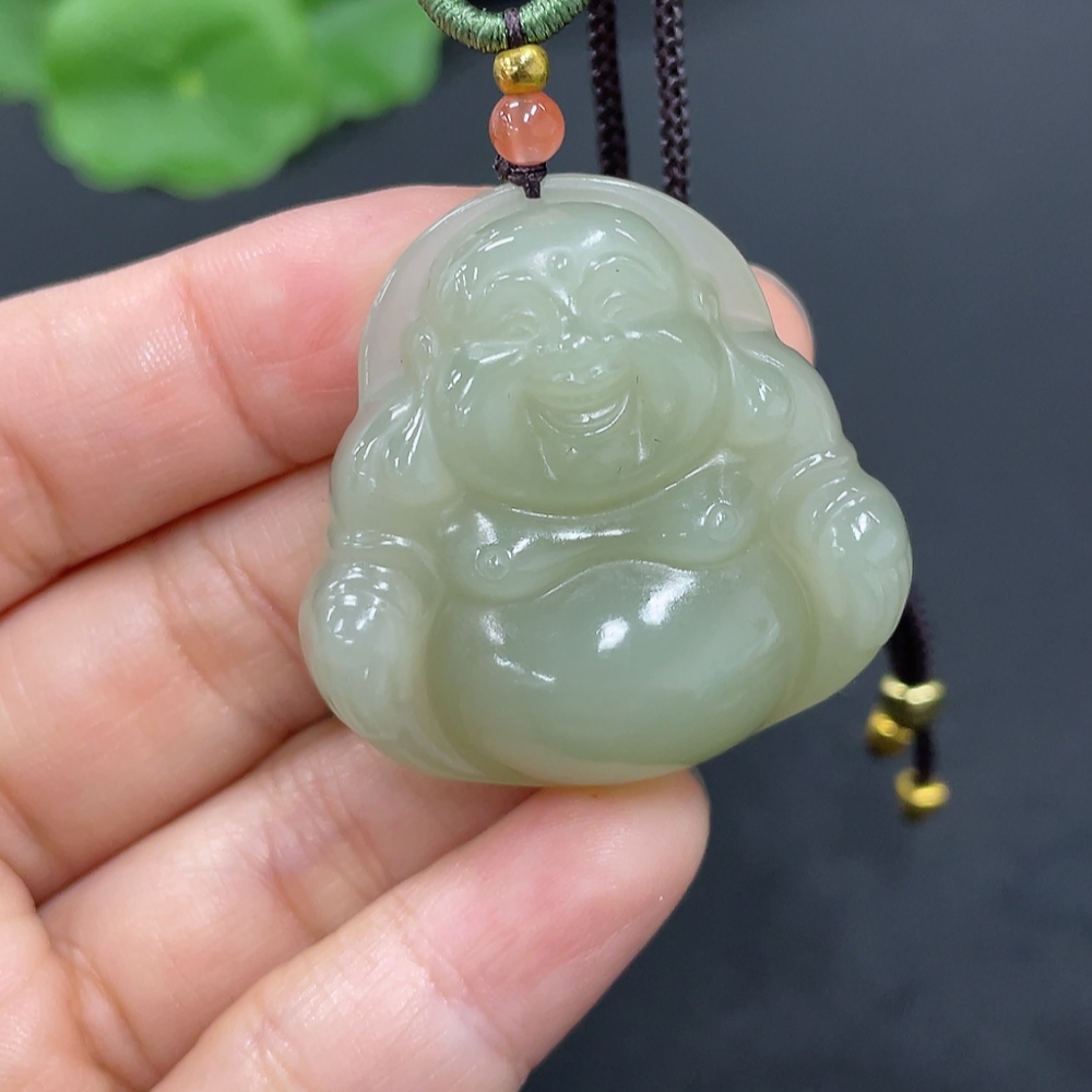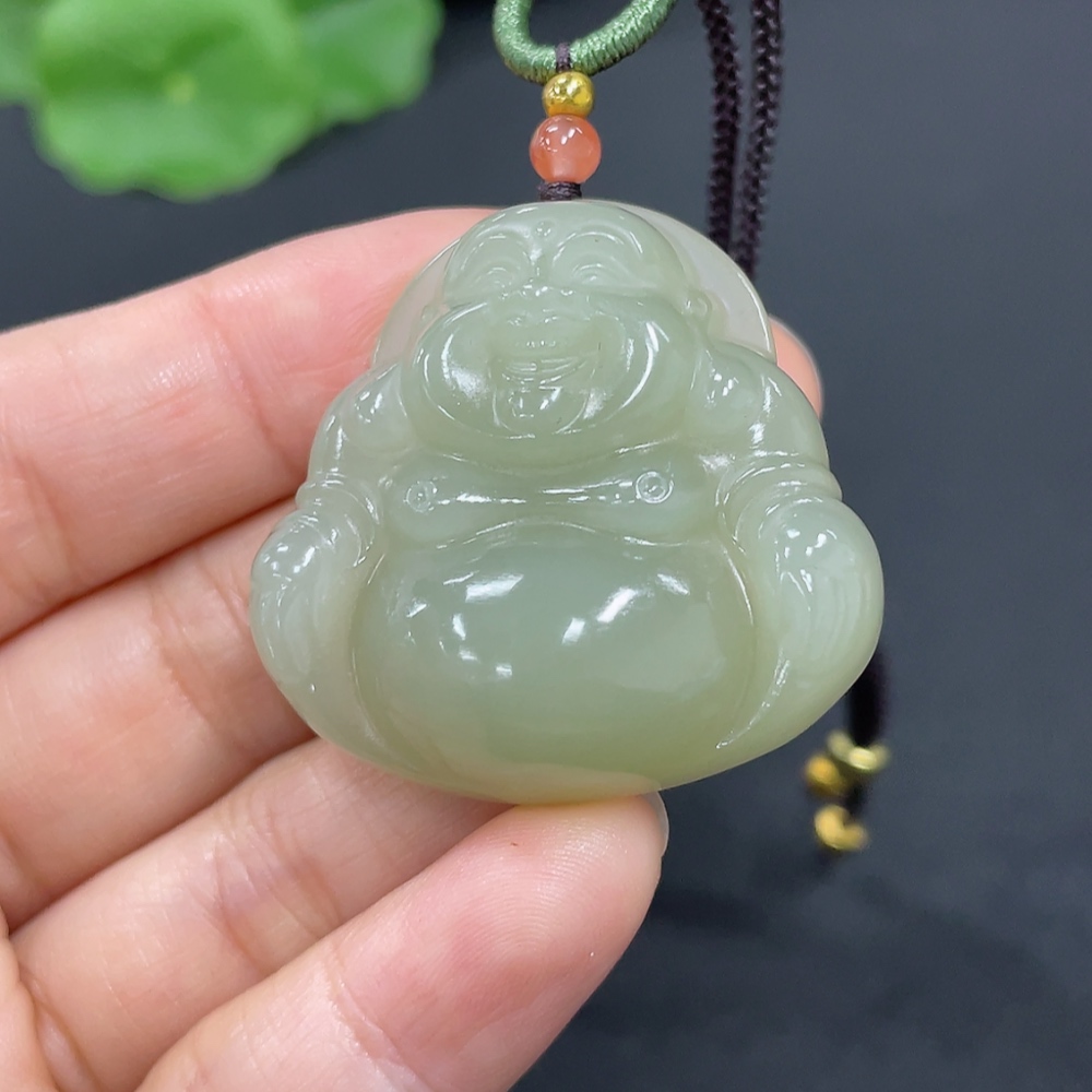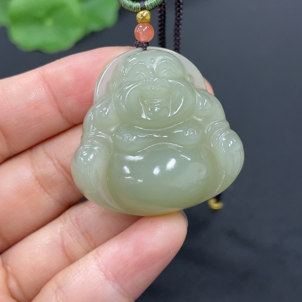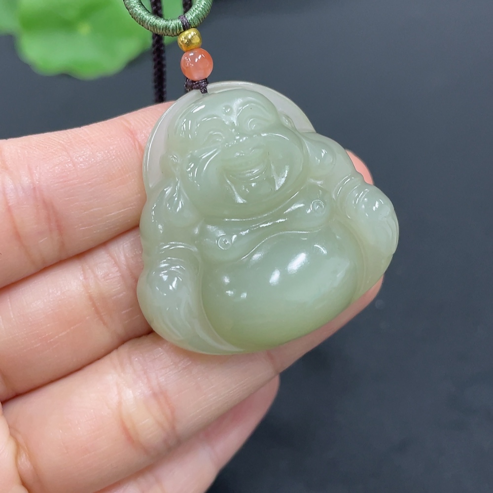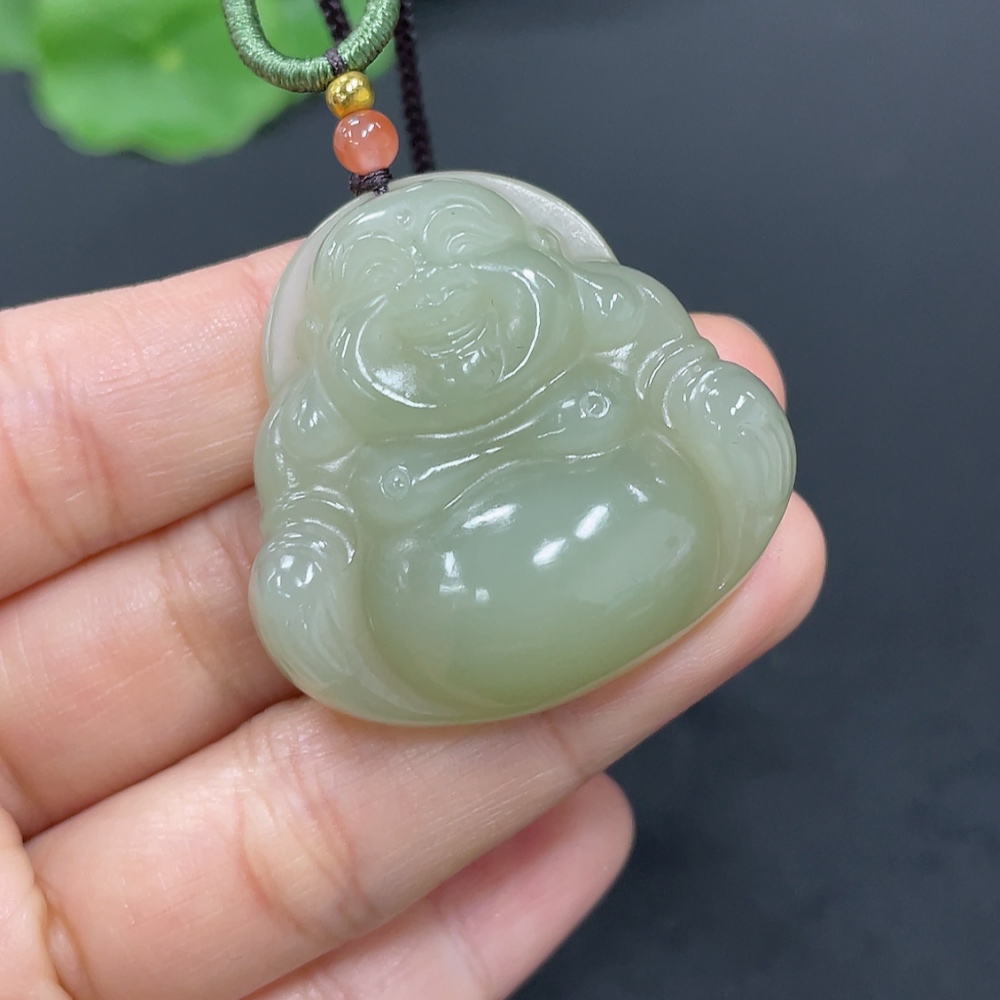Hetian Jade Pendant Buddha Total Weight Approx. (Including Rope) 21.7g Matching Beads Not Hetian Jade