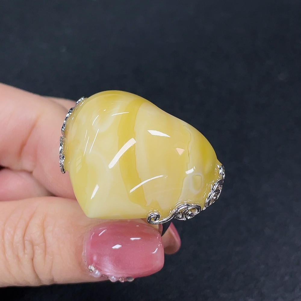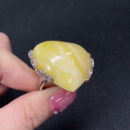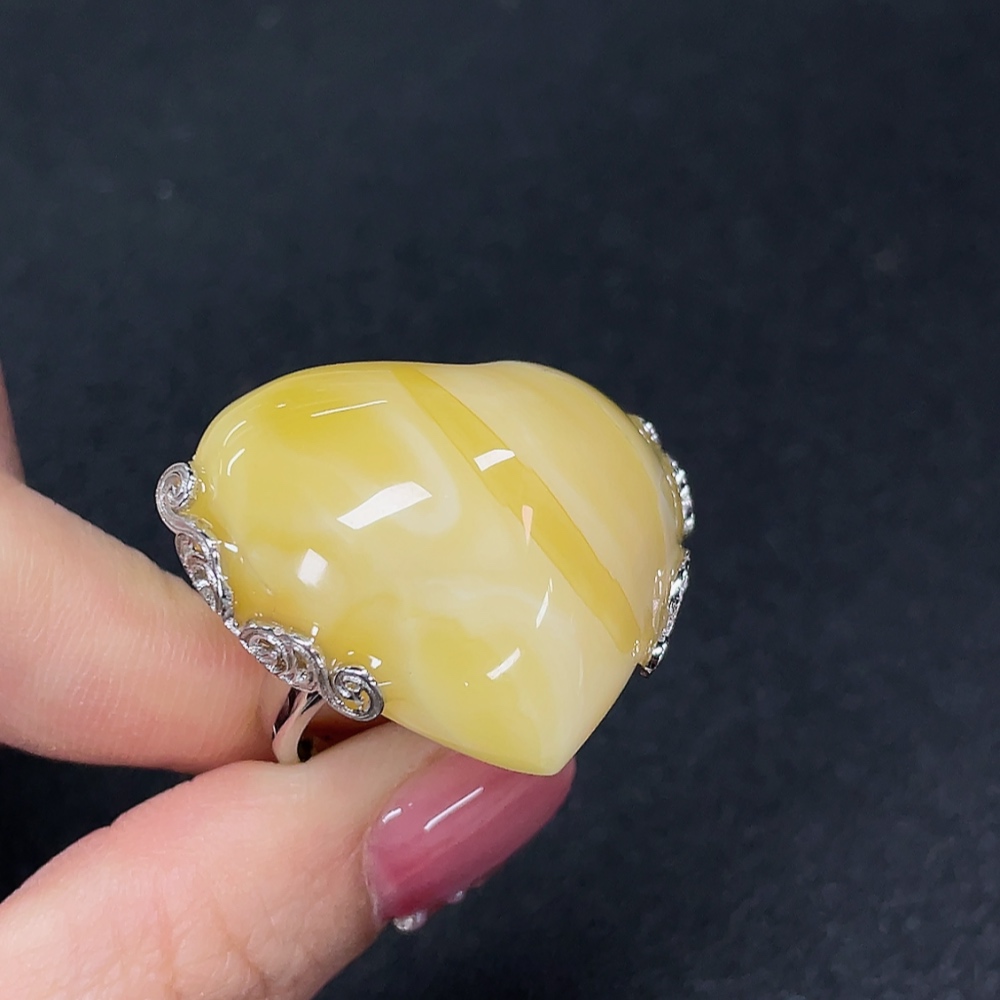 Amber Beeswax Ring Non-Gold Adjustable Total Weight Approx. 11.37g