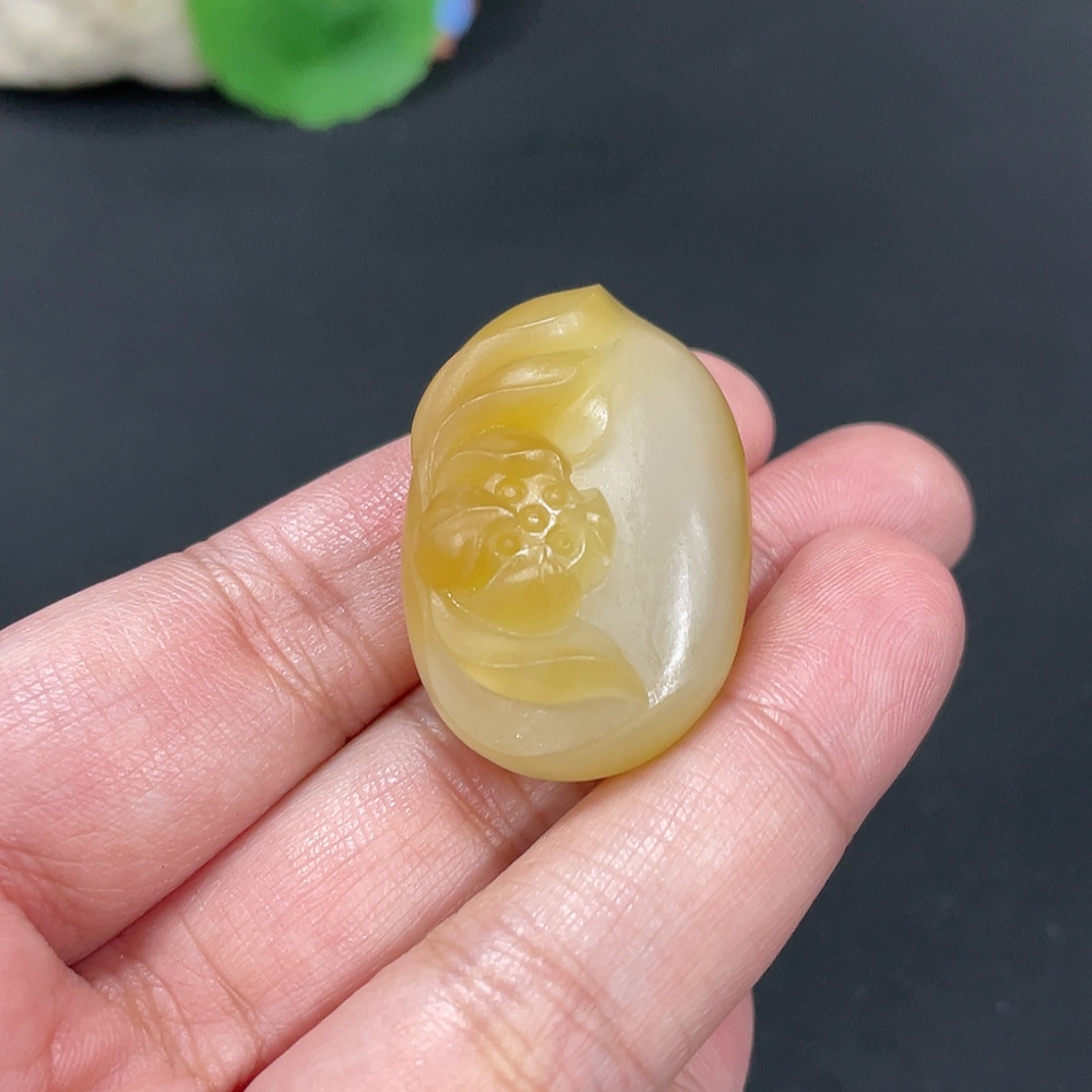 Hetian Jade Pendant "Flowers Blooming and Wealth Flourishing" Total Weight Approx. 21.6g
