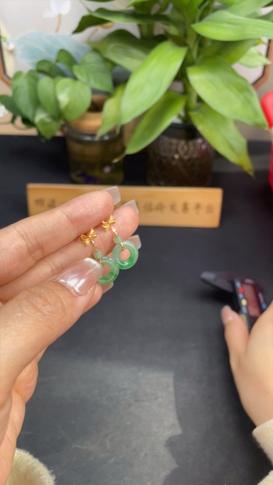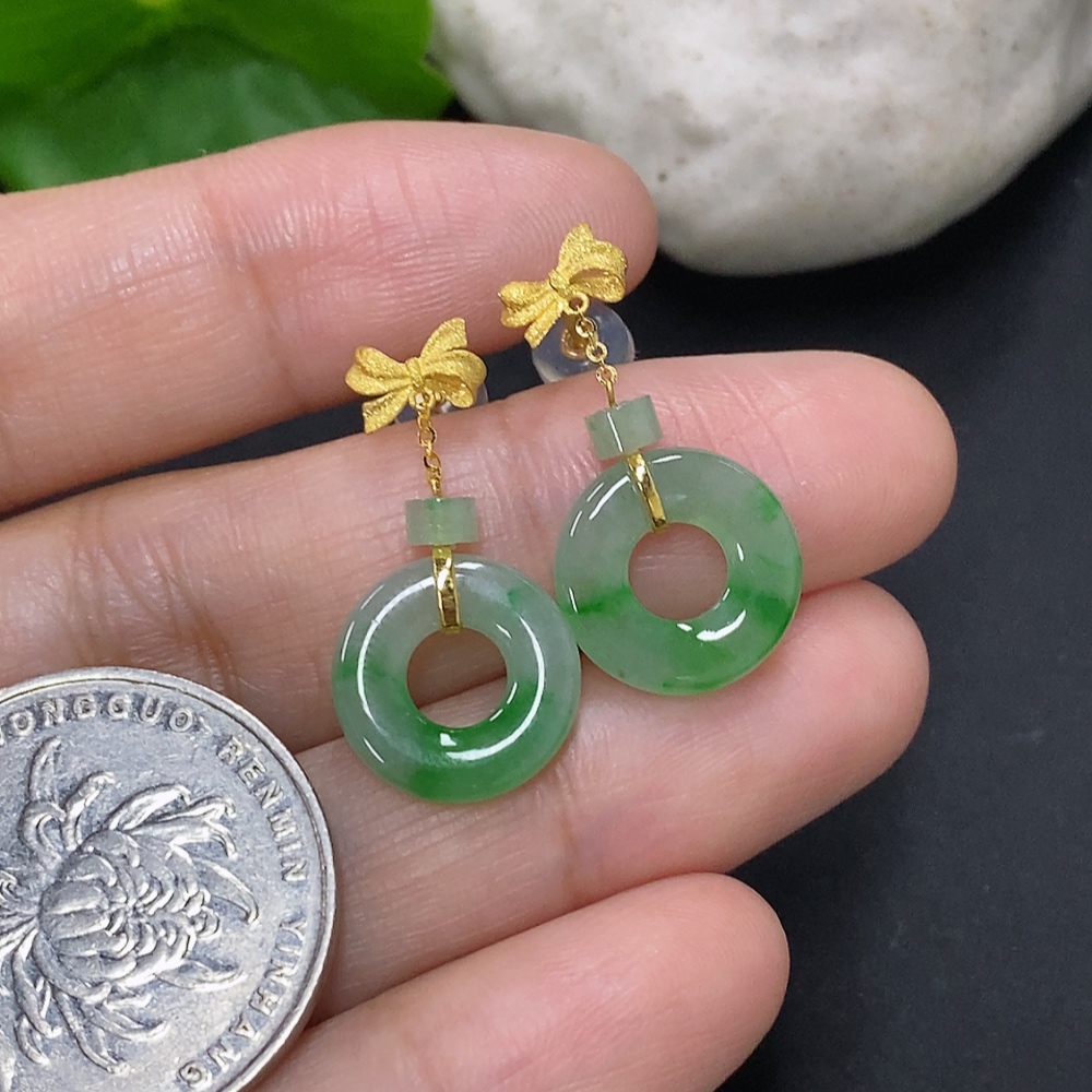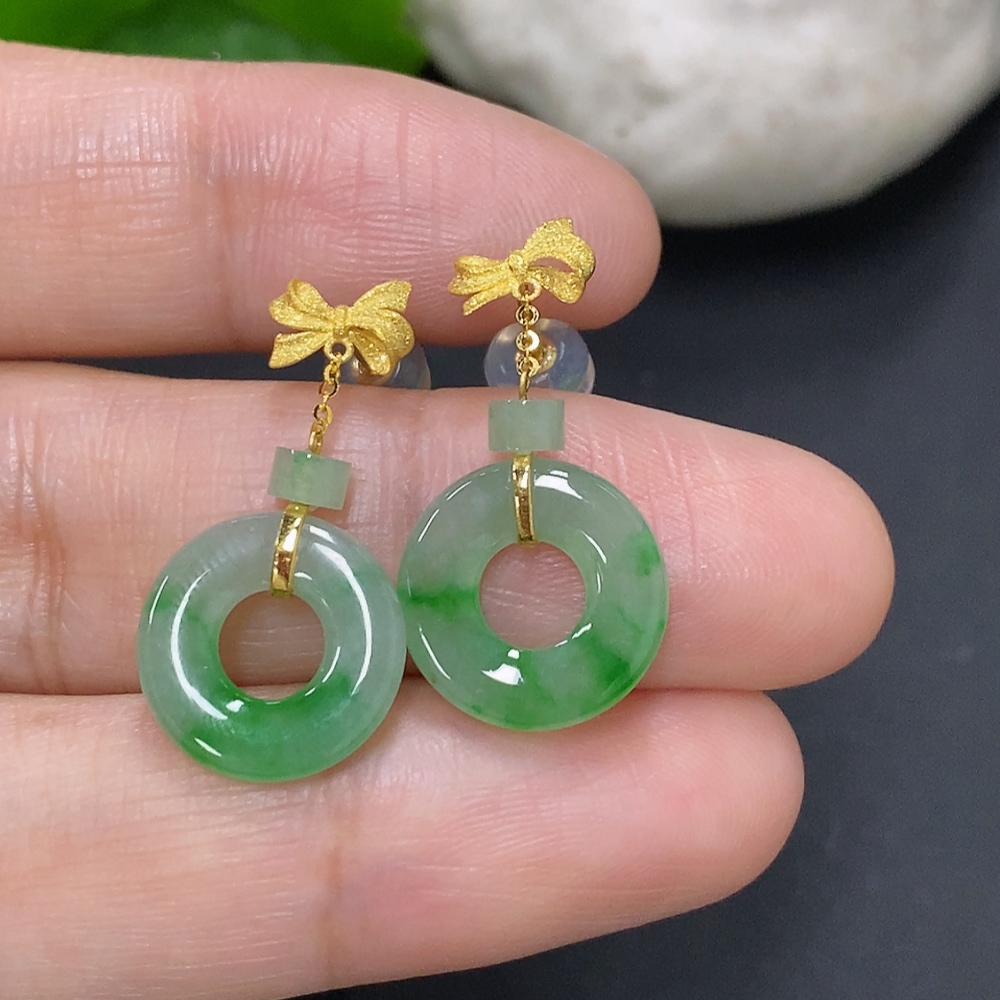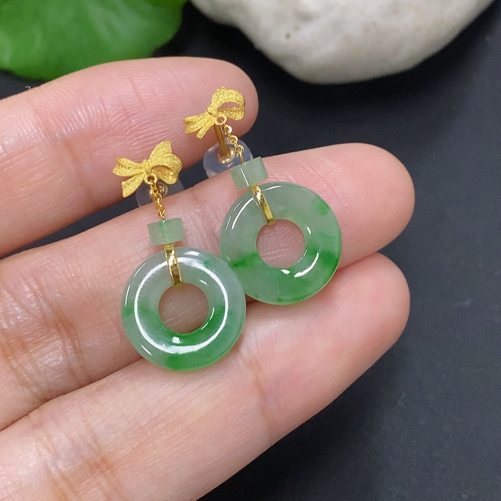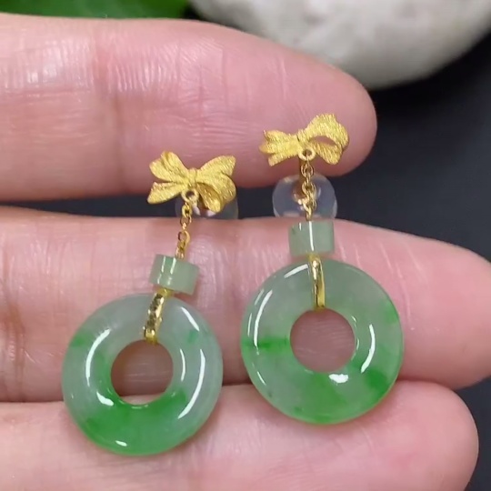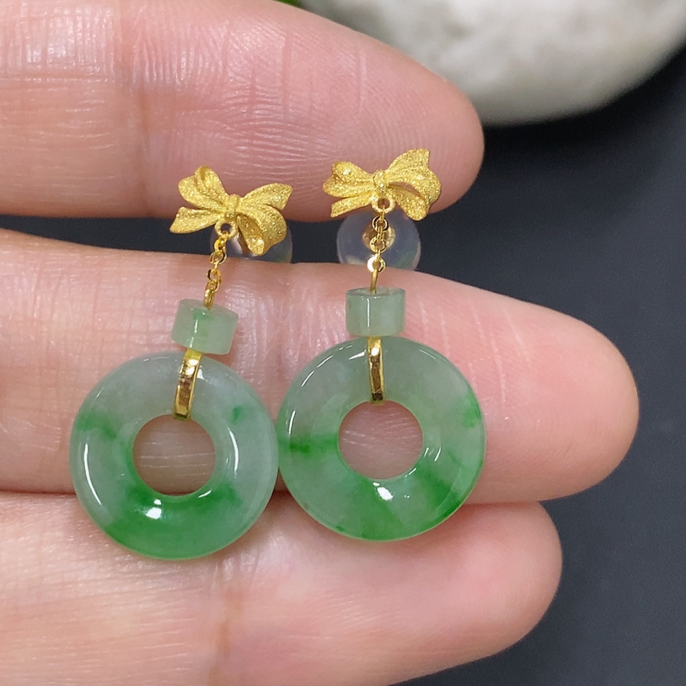 Jadeite Inlaid Earrings 18K Gold Total Weight Approximately 2g Without Ear Backs