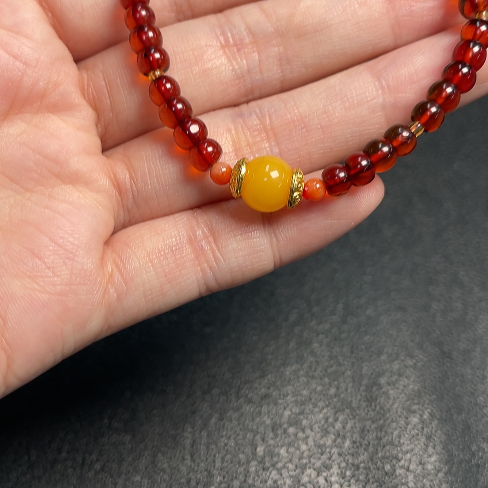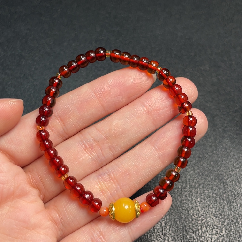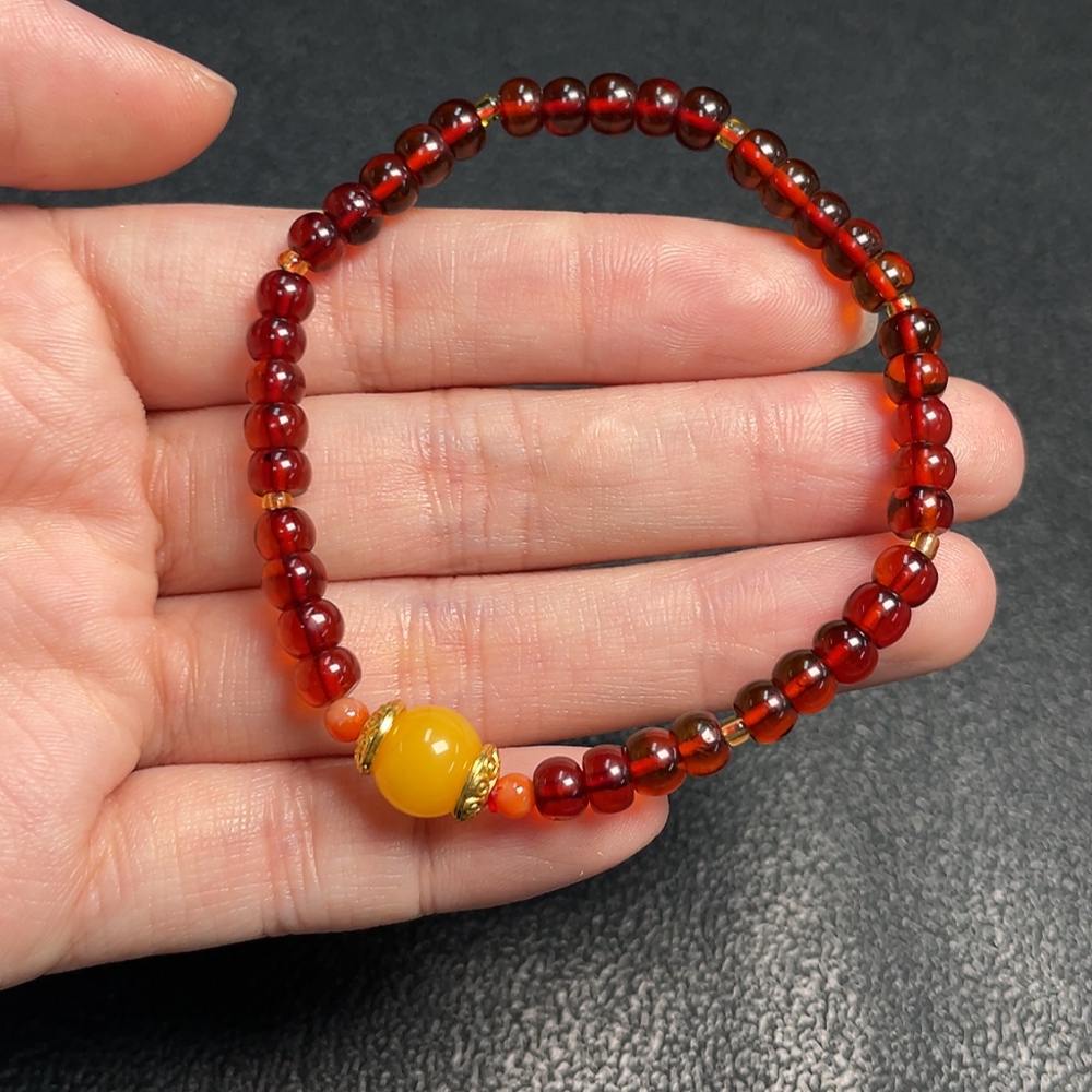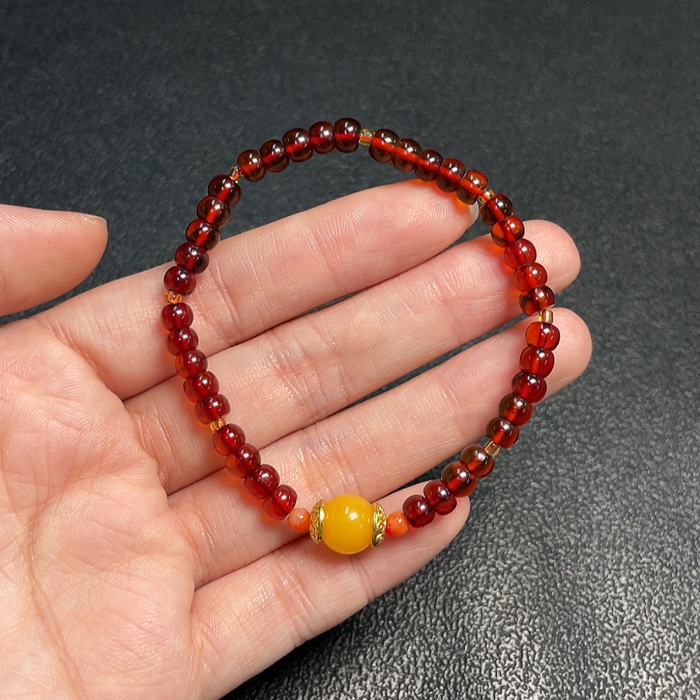 Amber and Beeswax Bracelet with Non-Natural Accent Stones, Non-Gold, Total Weight Approximately 3.56g, Size 5.1-8.6mm