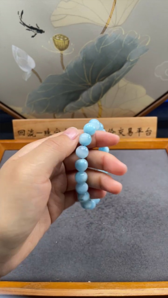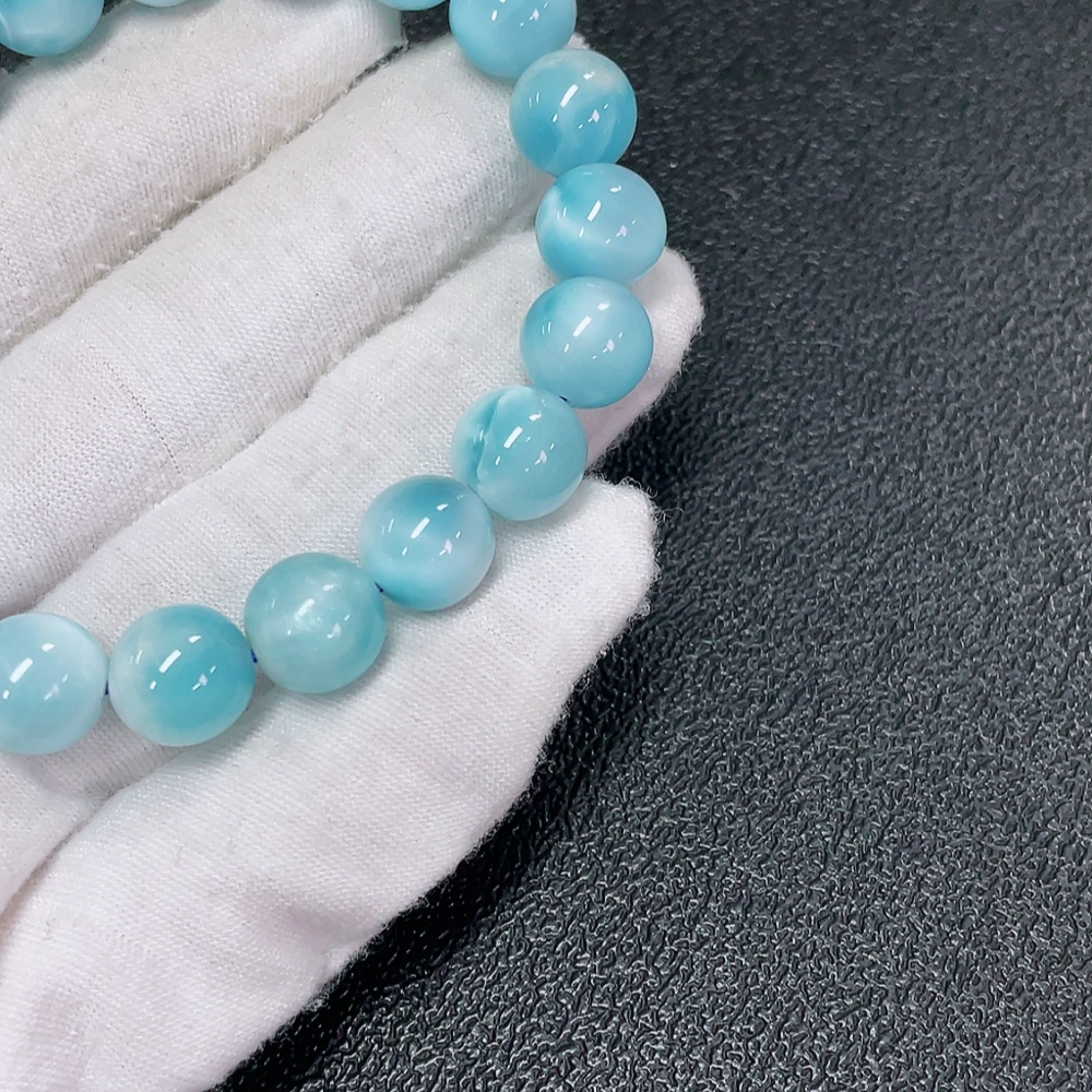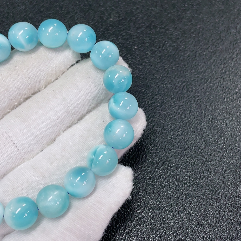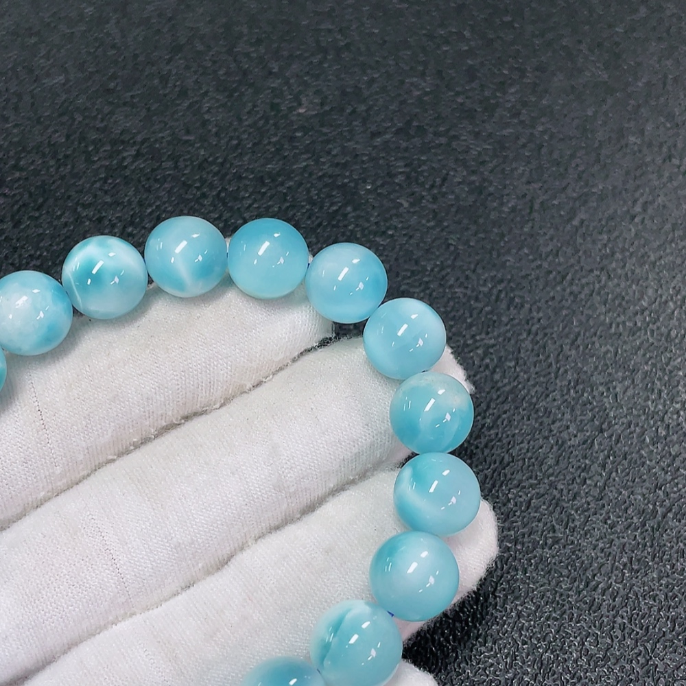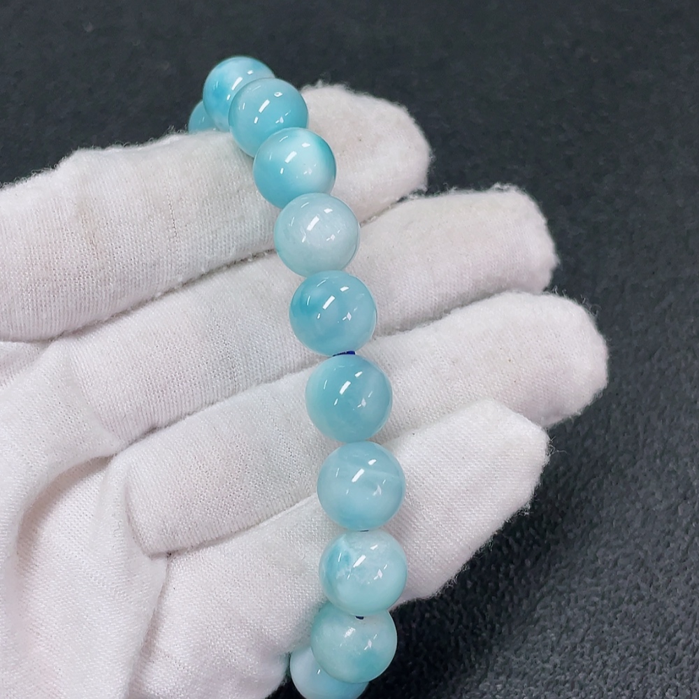 Larimar bead bracelet with other mineral components, visible organic matter, total weight approx. 32.77g, size about 10.5mm