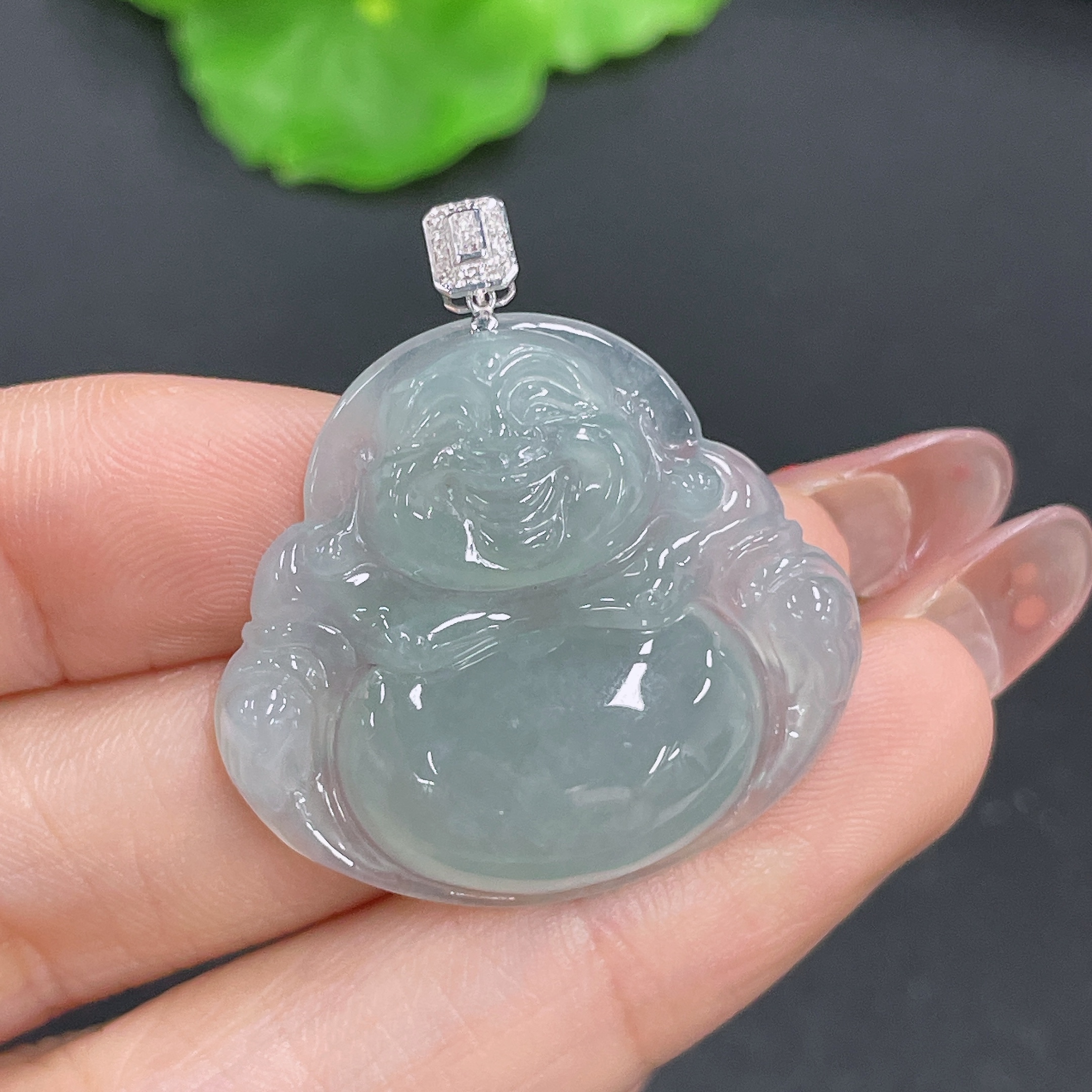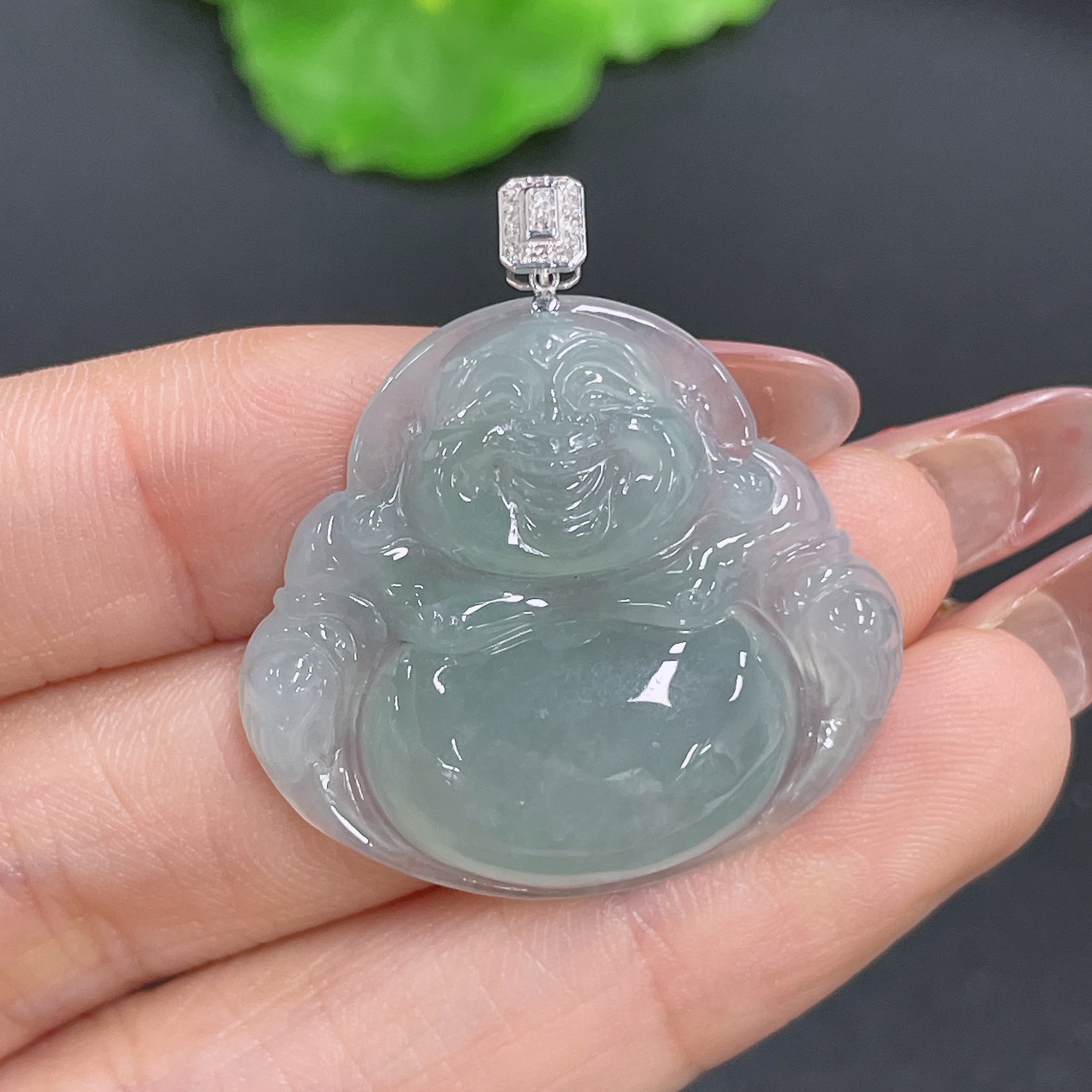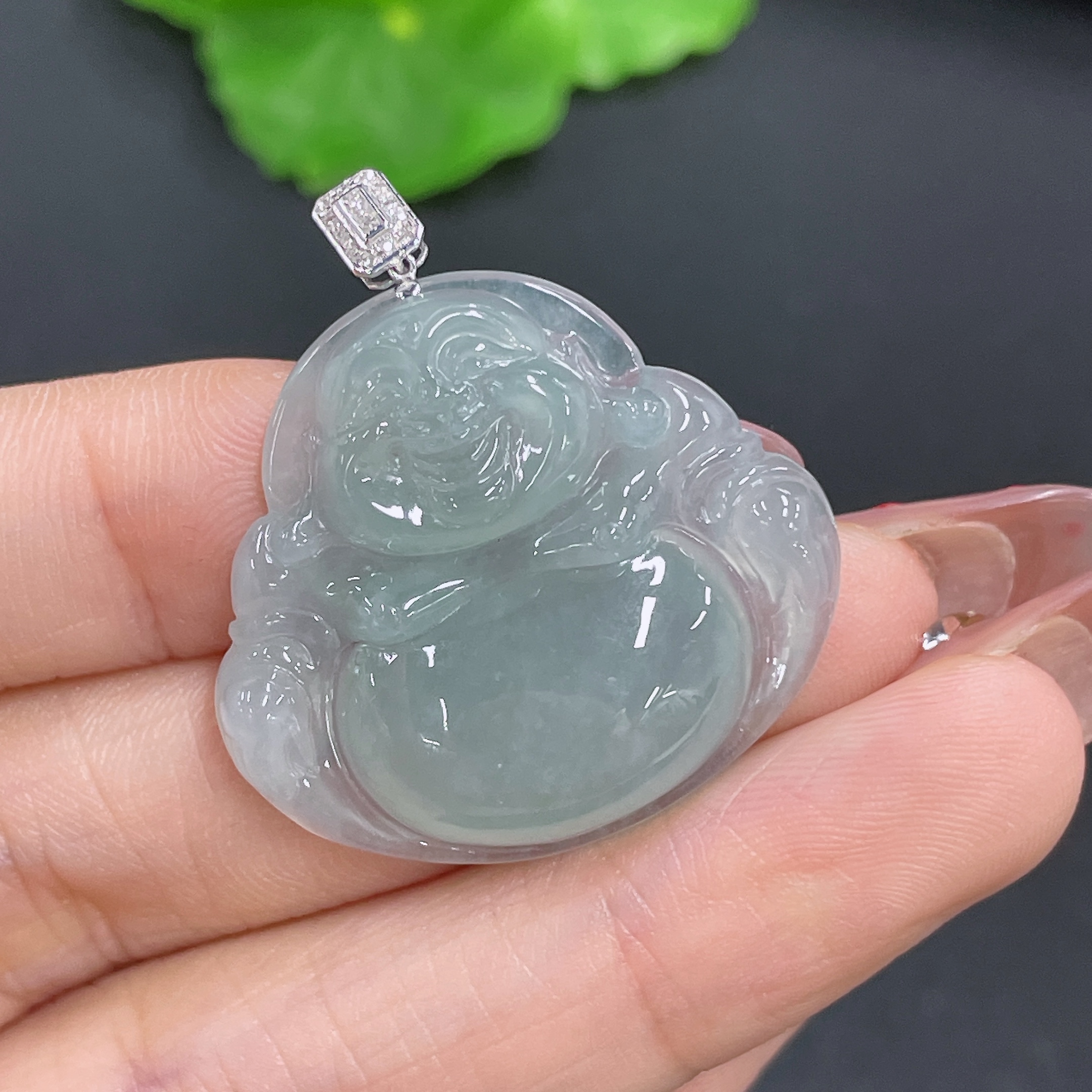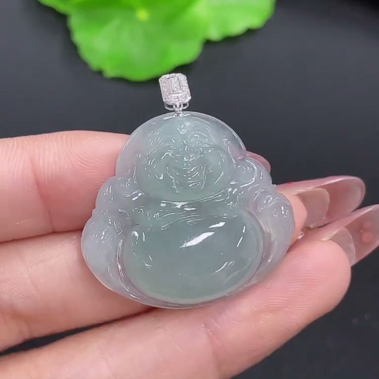 Jadeite Buddha Pendant 18K Gold Total Weight Approx. 7.2g (With Diamond Inlay)