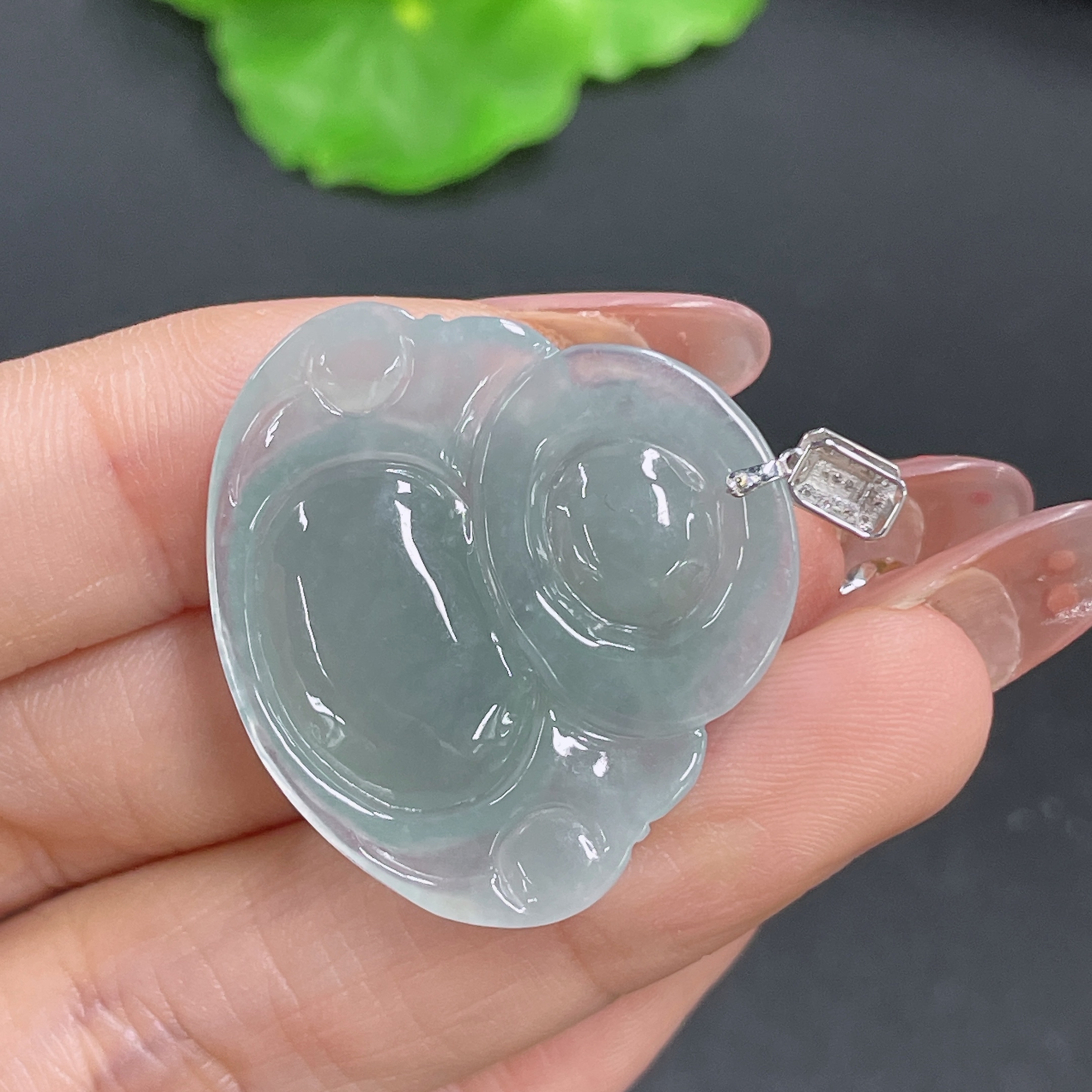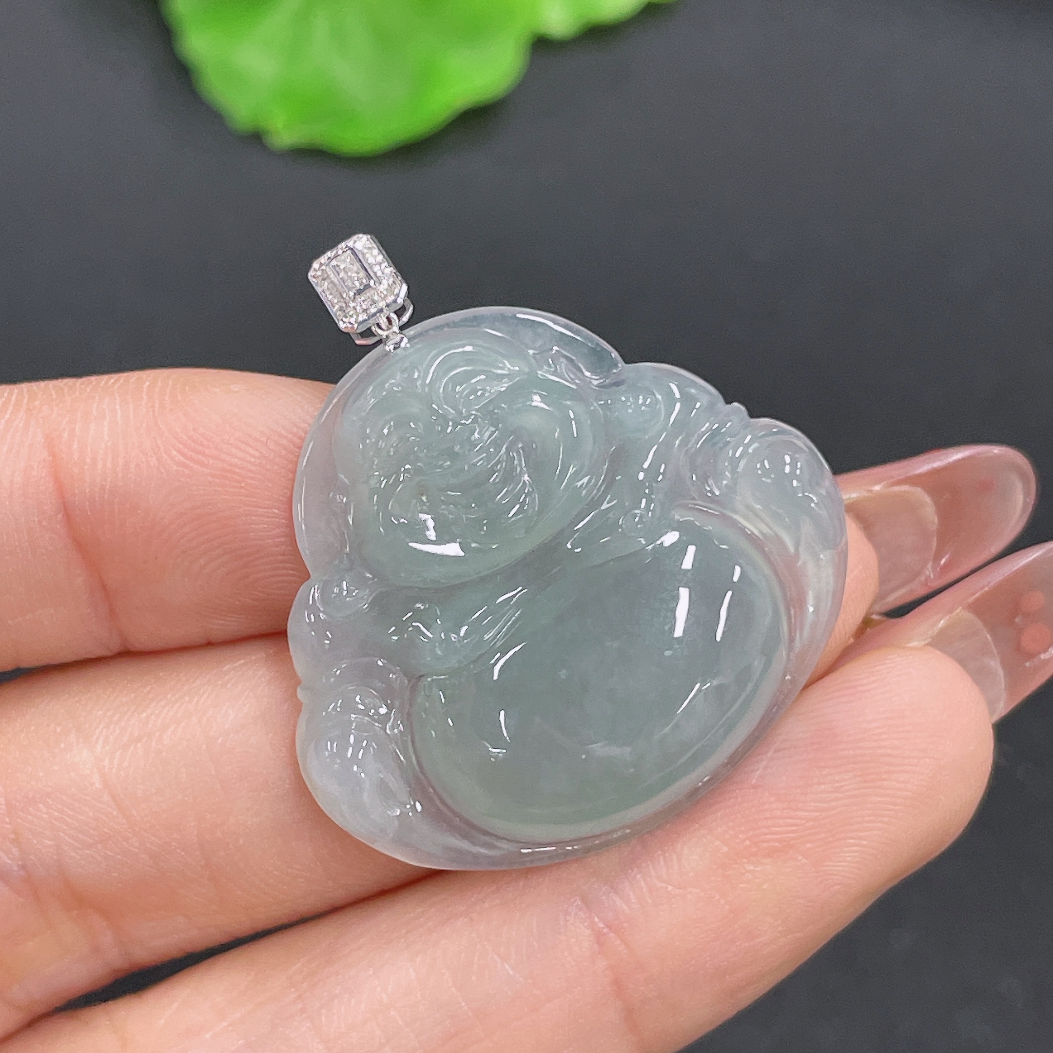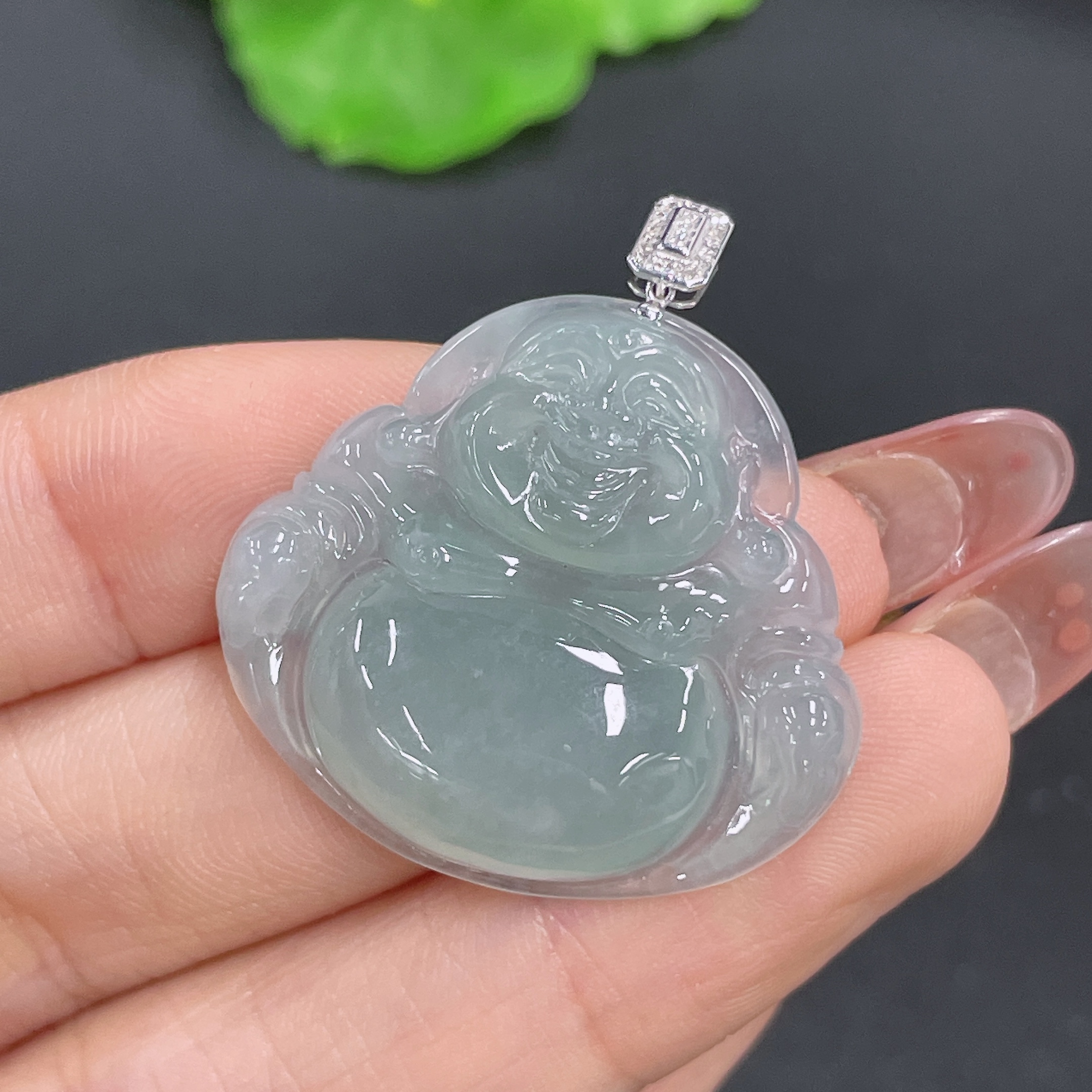 Jadeite Buddha Pendant 18K Gold Total Weight Approx. 7.2g (With Diamond Inlay)