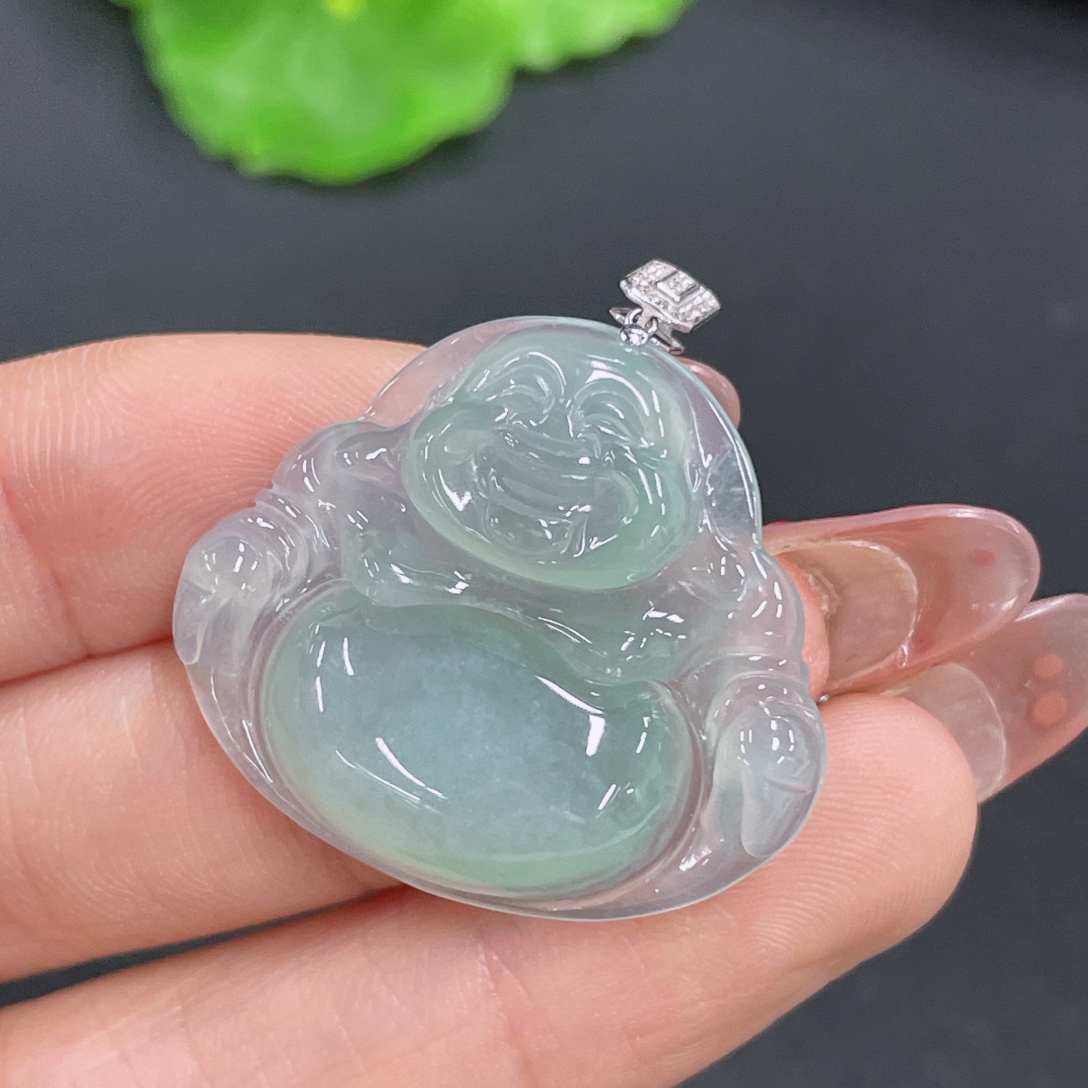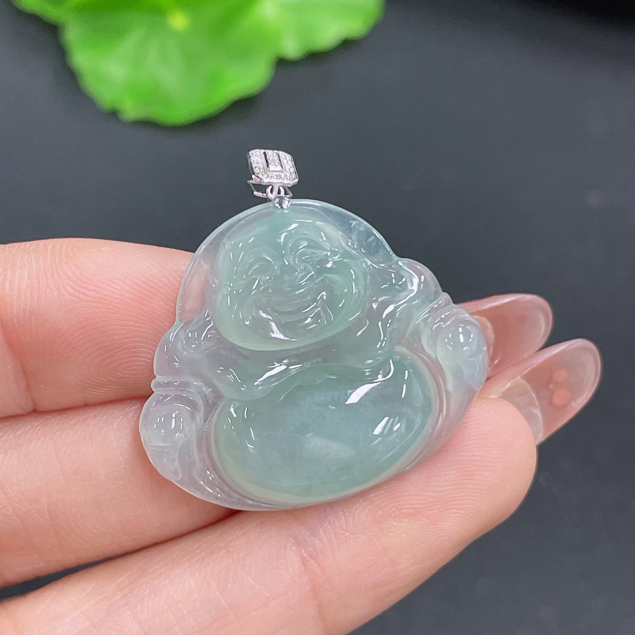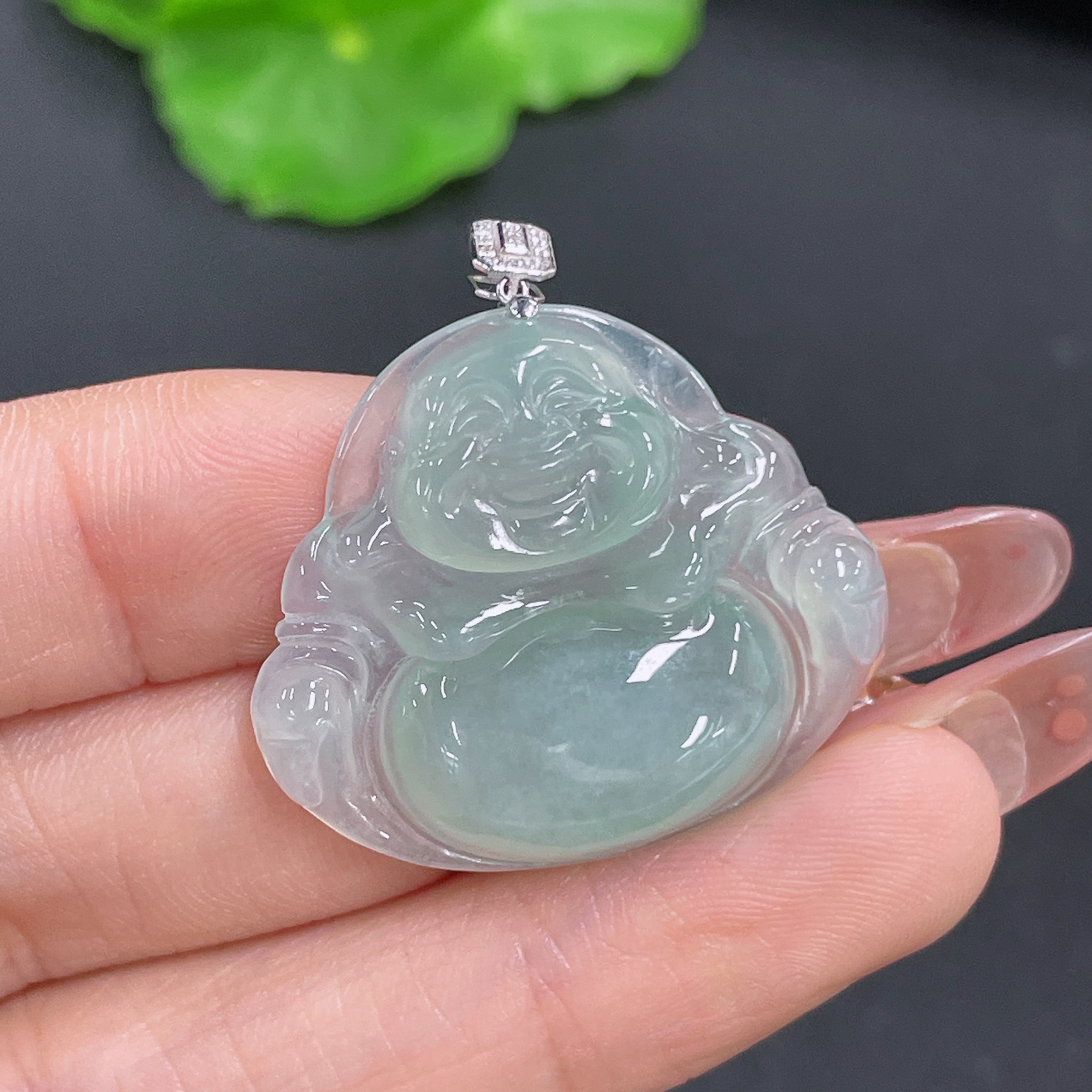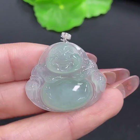 Jadeite Buddha Pendant with 18K Gold, Total Weight Approx. 6.4g (Diamond Accented)