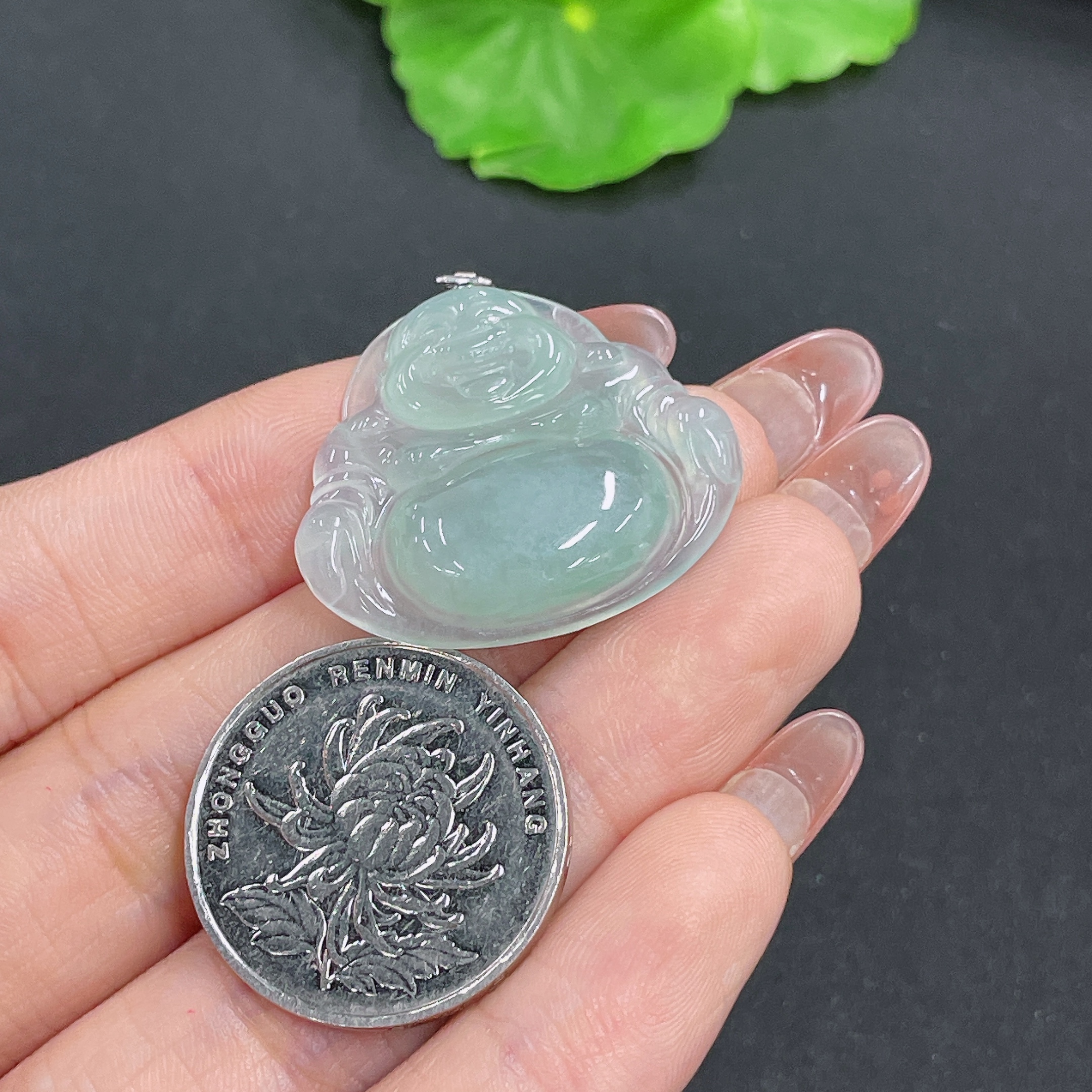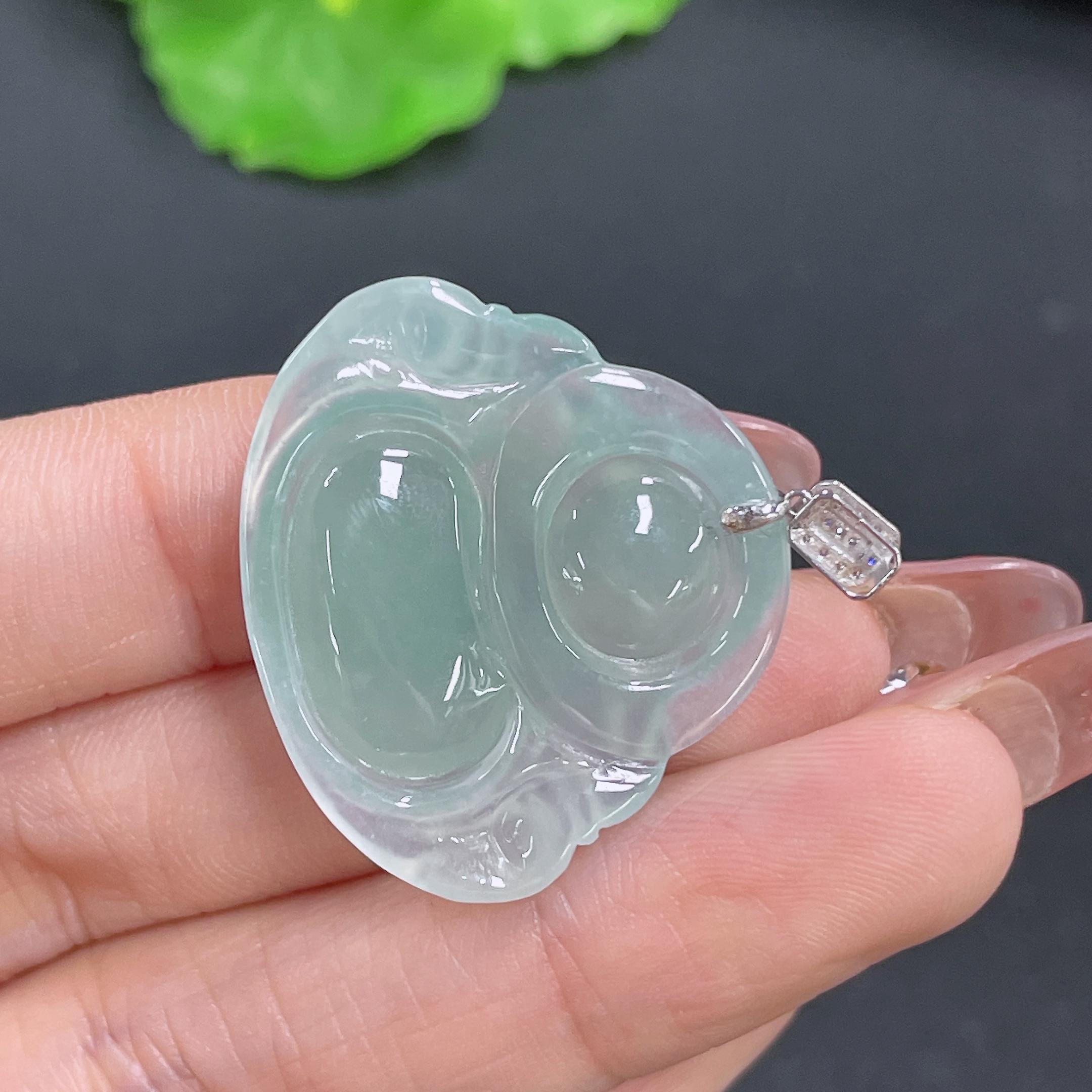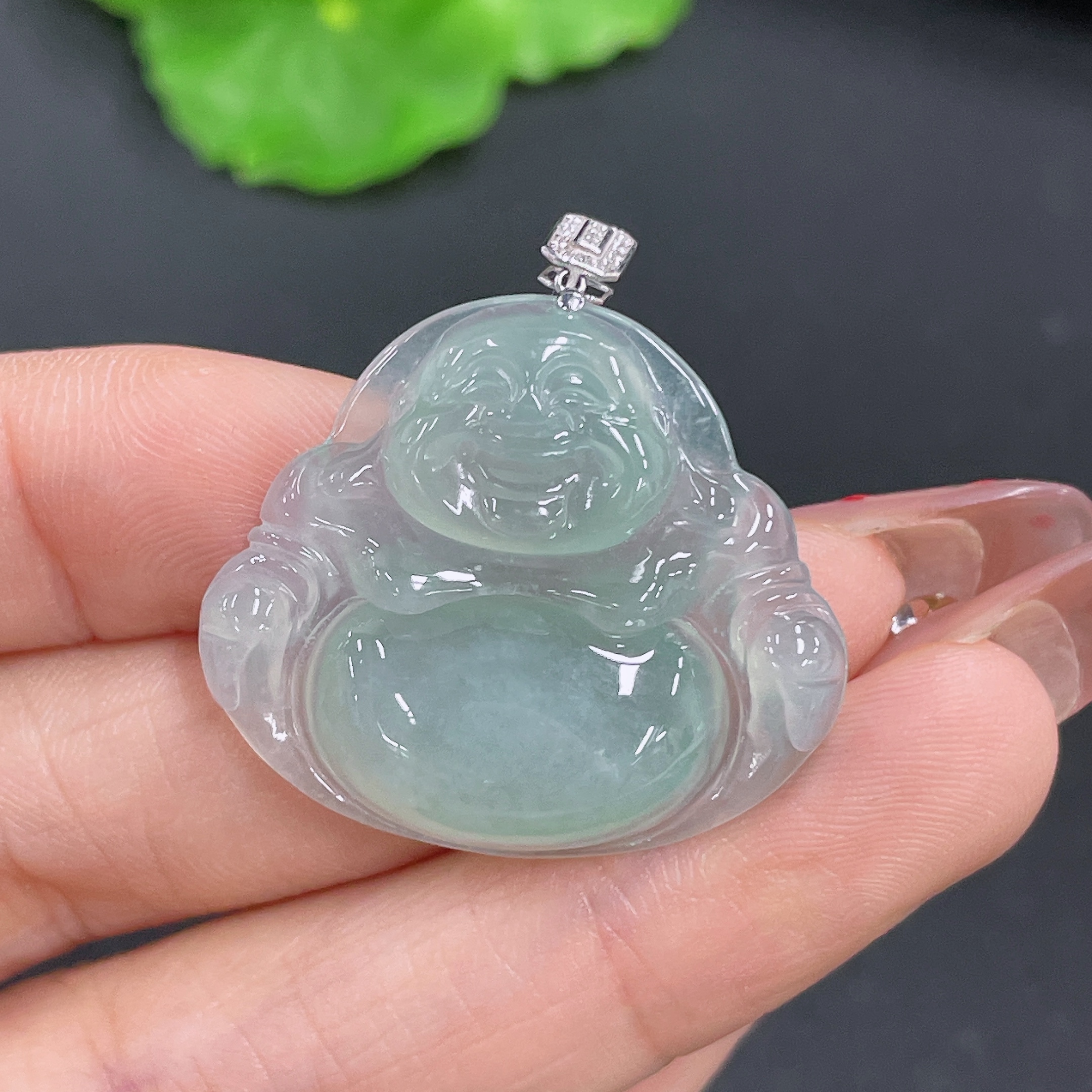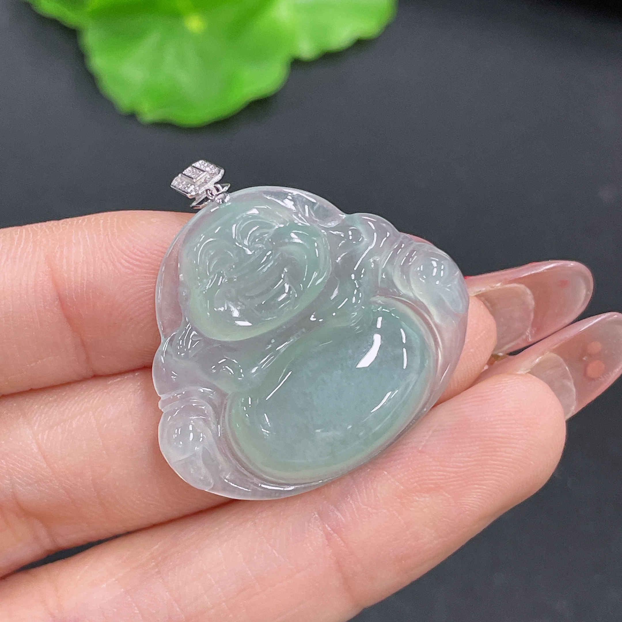 Jadeite Buddha Pendant with 18K Gold, Total Weight Approx. 6.4g (Diamond Accented)
