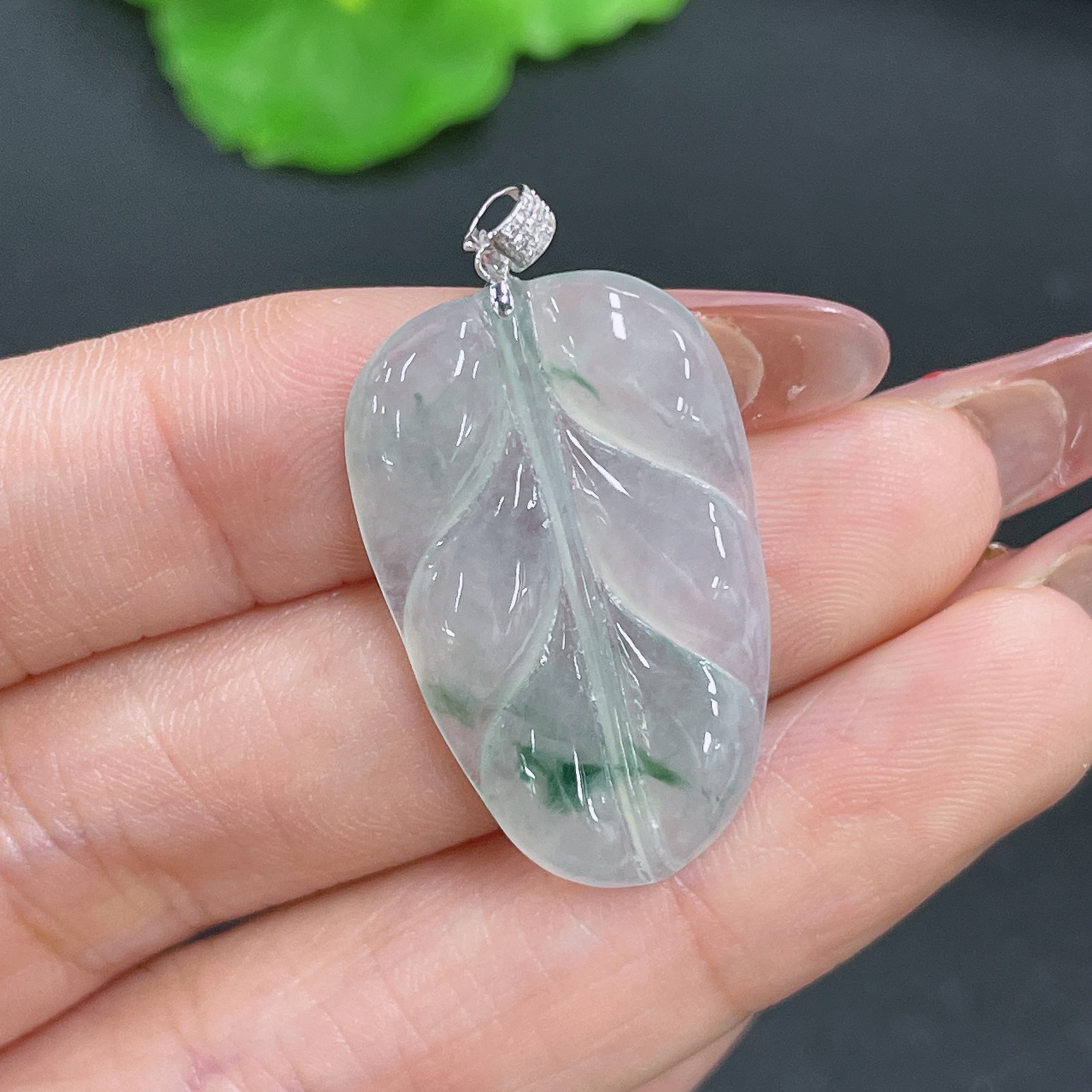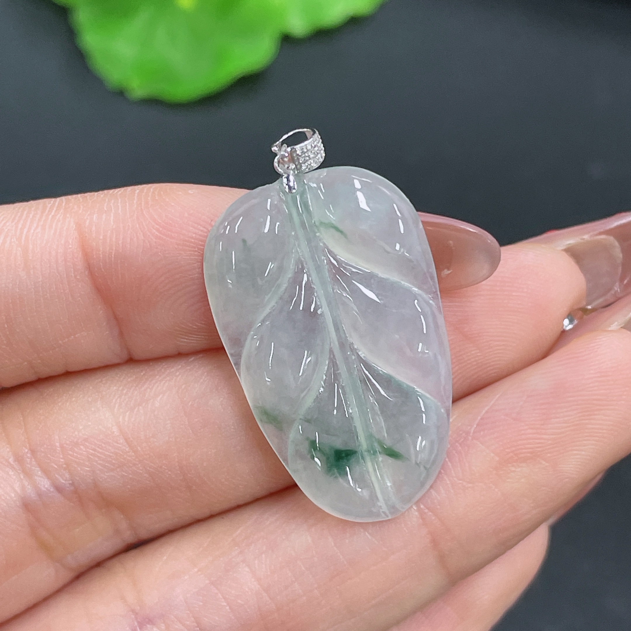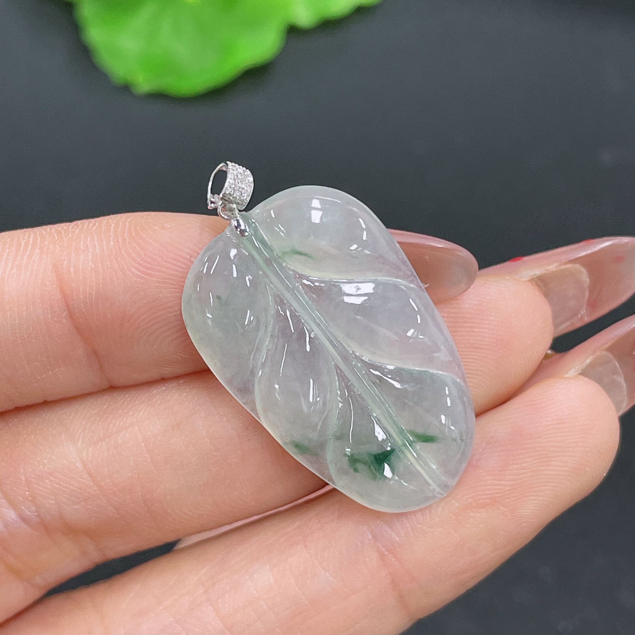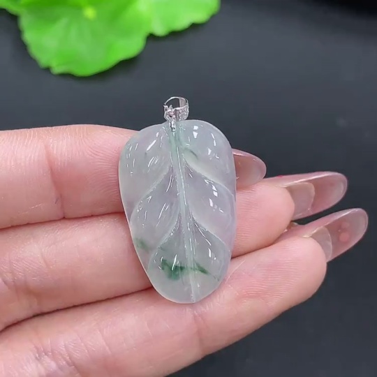 Jadeite Leaf Pendant 18K Gold Total Weight Approx. 3.9g (with Diamond Accents)
