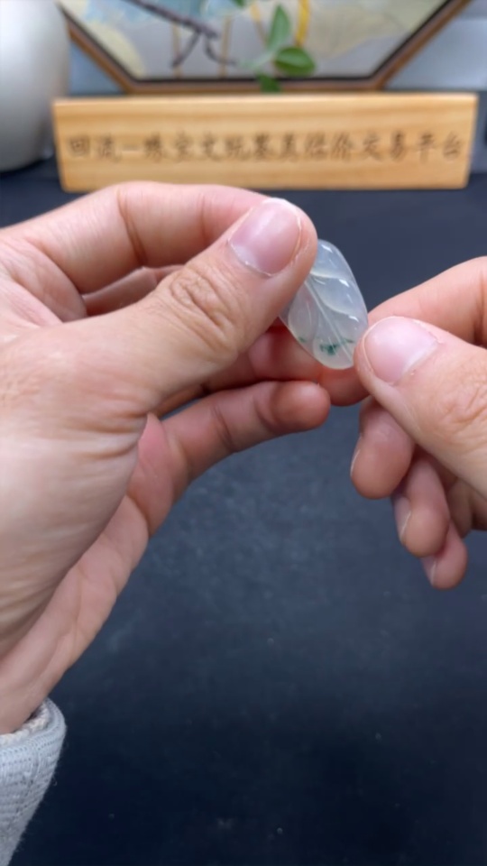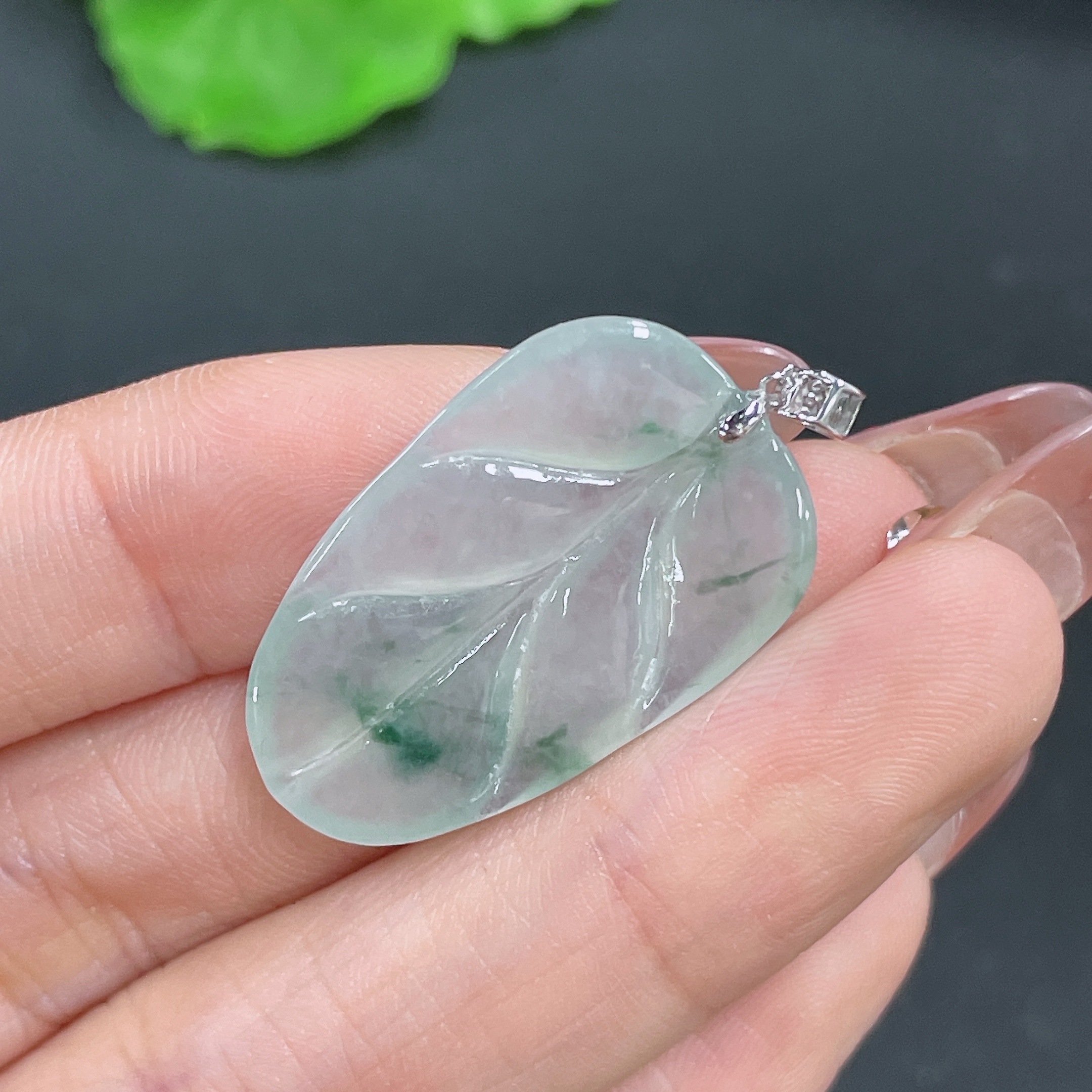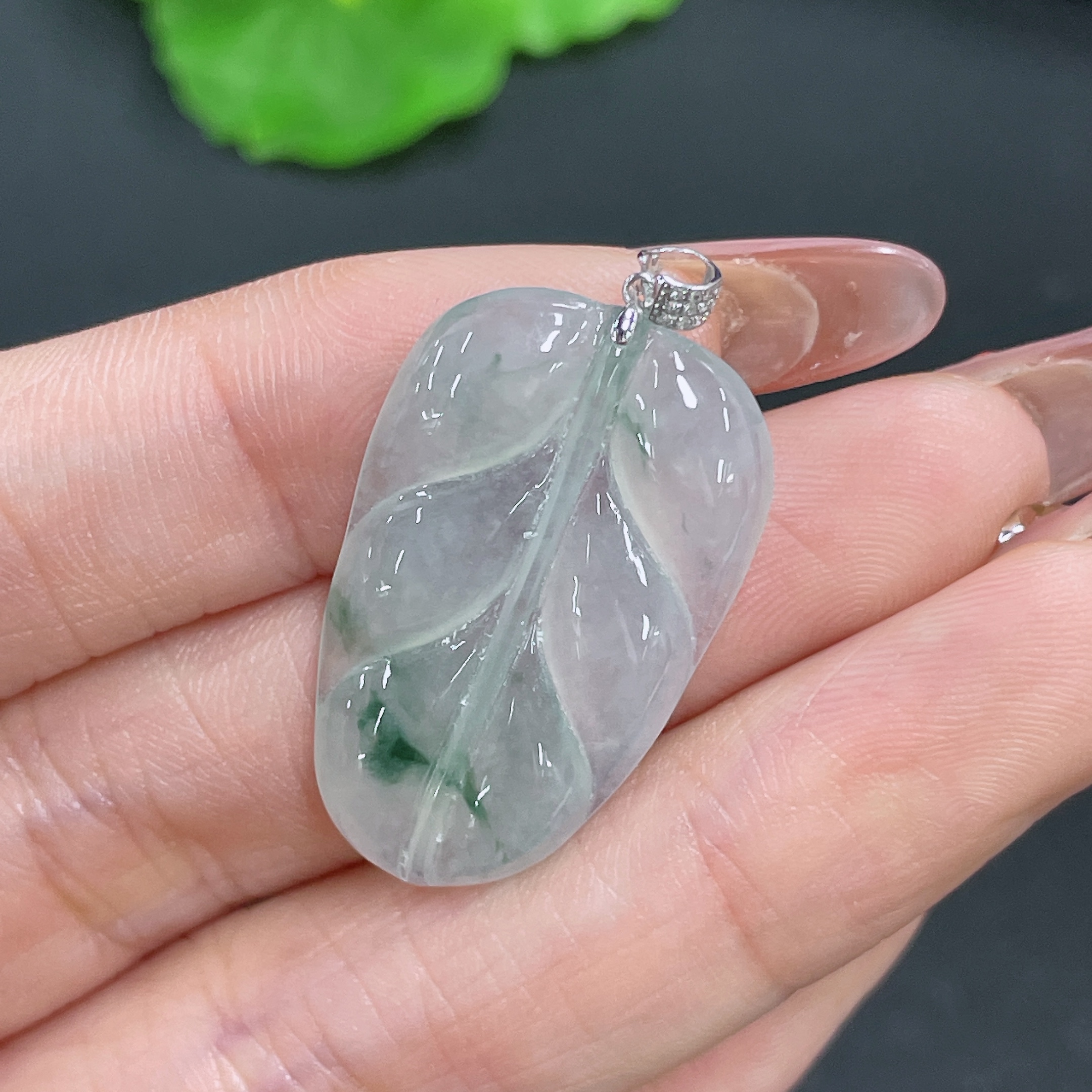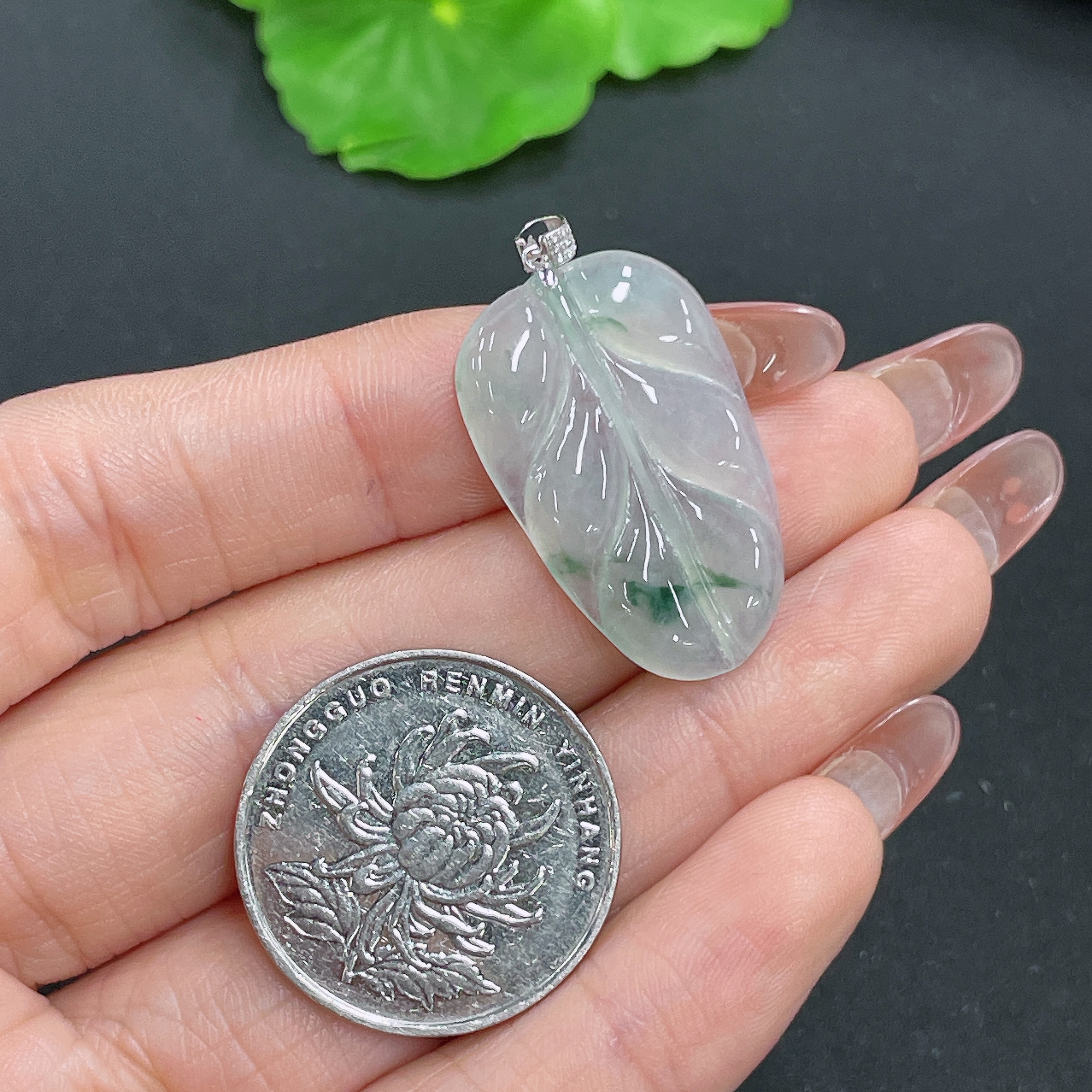 Jadeite Leaf Pendant 18K Gold Total Weight Approx. 3.9g (with Diamond Accents)
