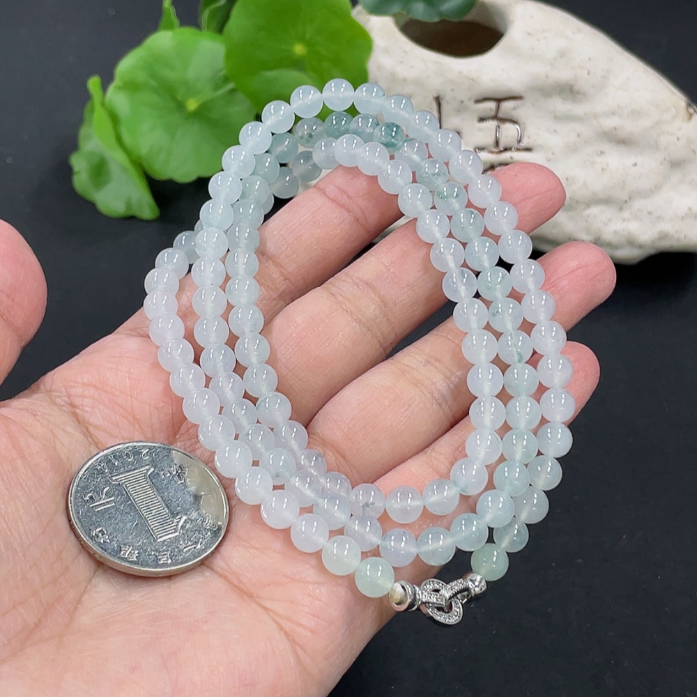 Jadeite Bead Necklace Approximately 5.8mm Total Weight About 40.3g Non-Gold Clasp