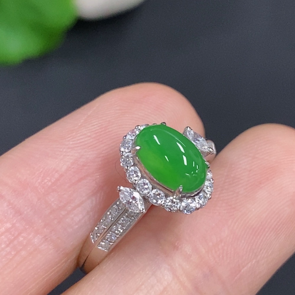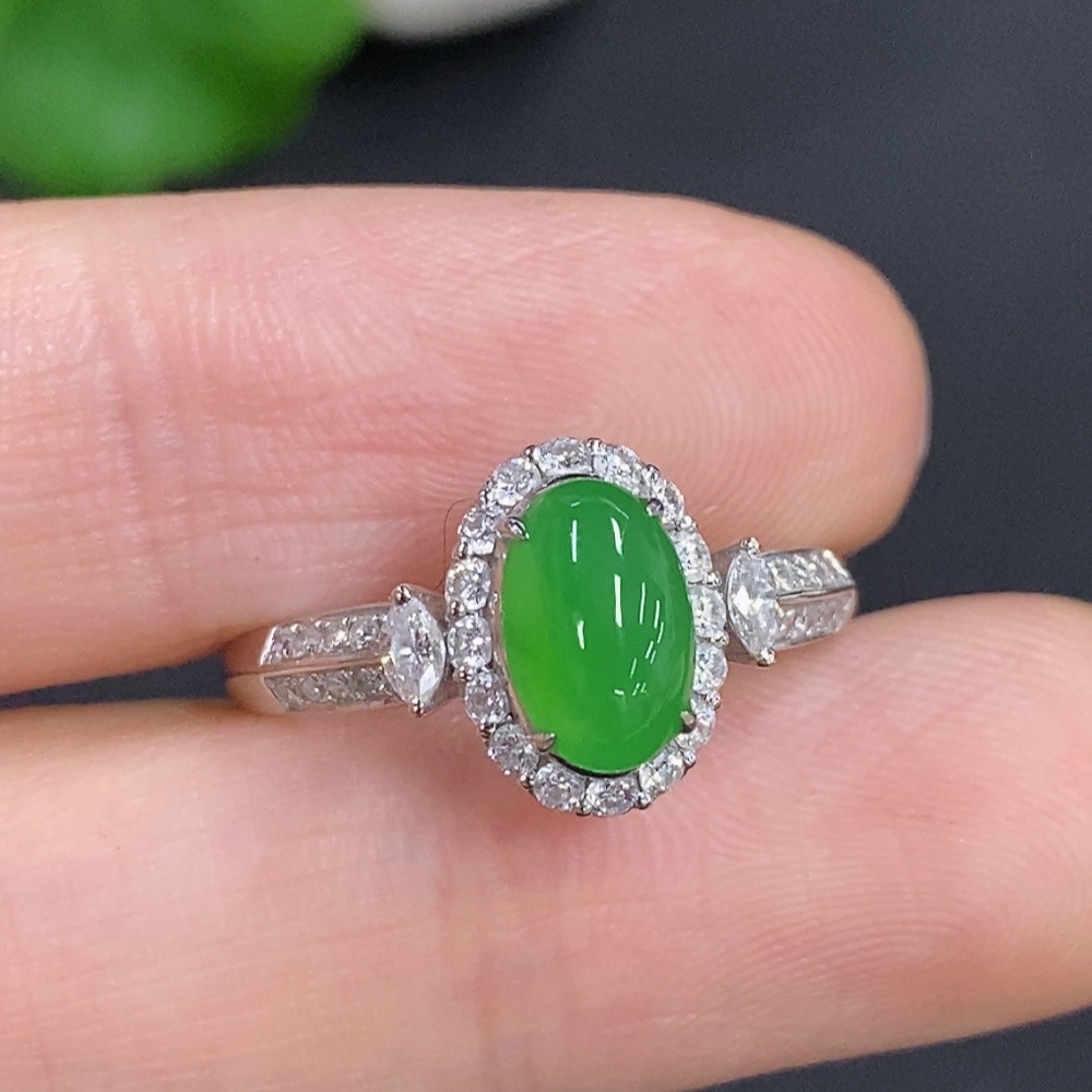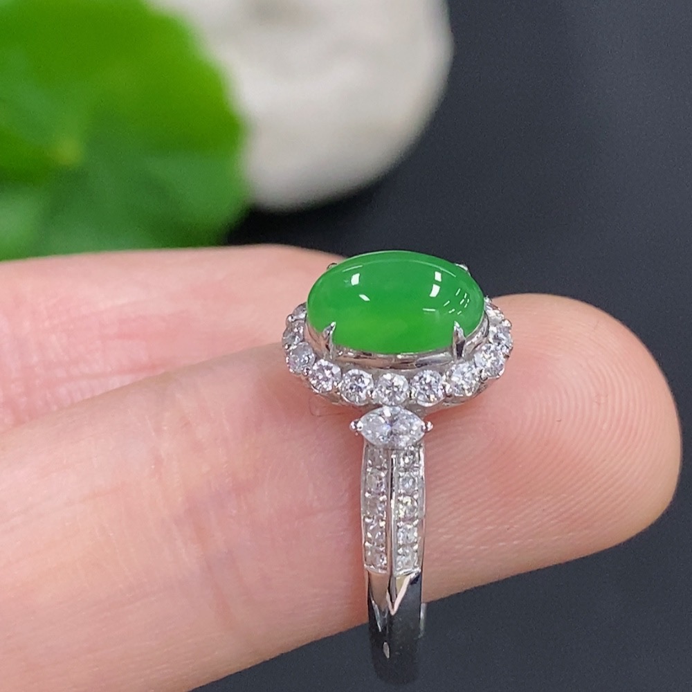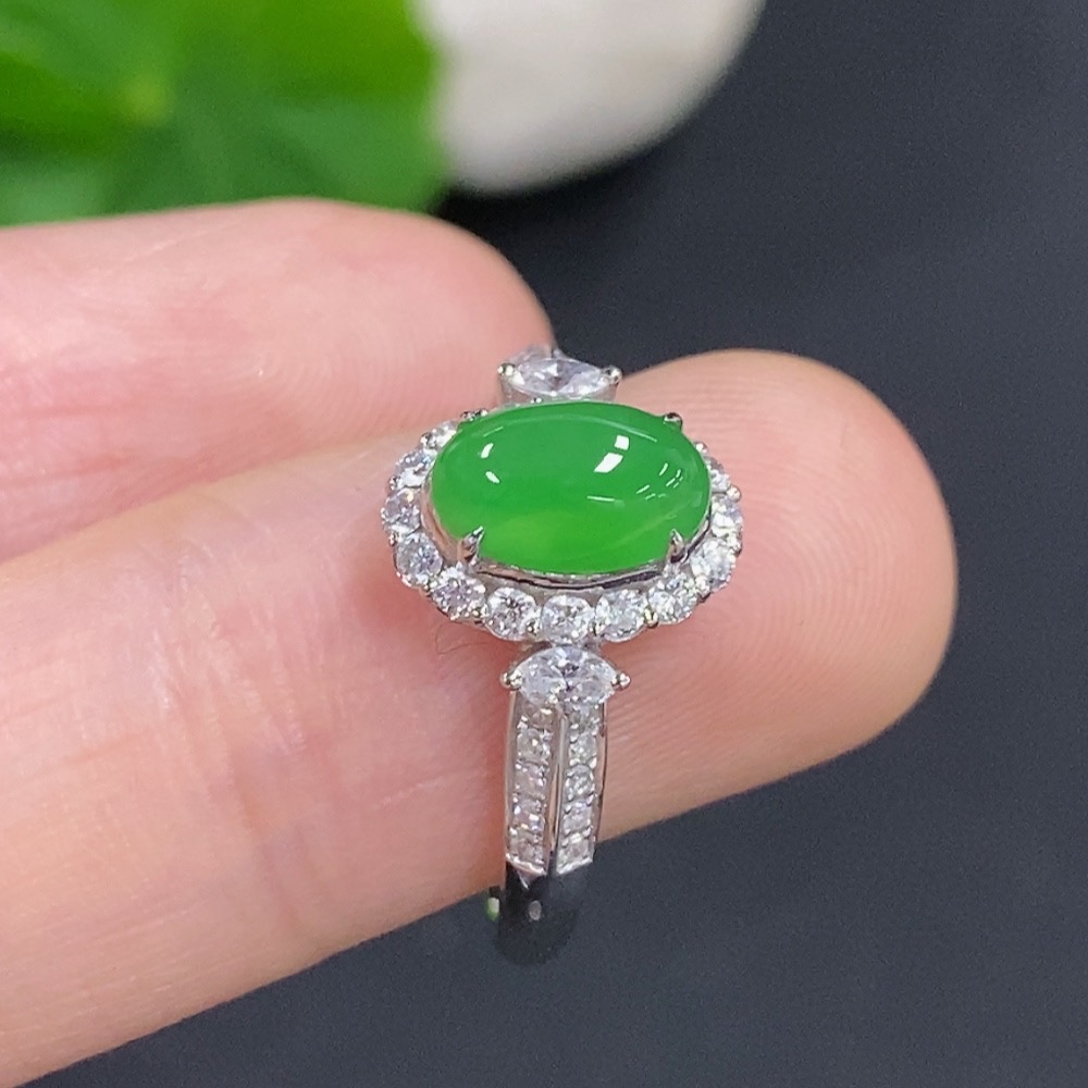 Jadeite inlaid ring 18k size 14 total weight approx. 3.15g with diamond accents