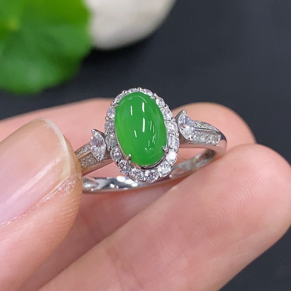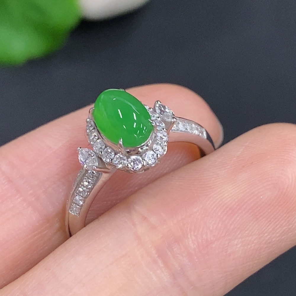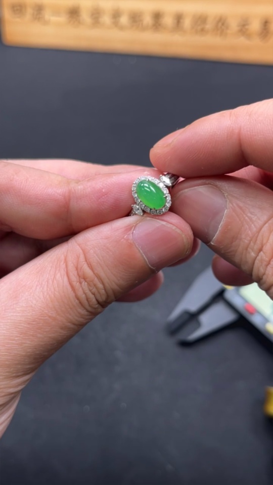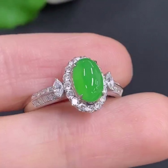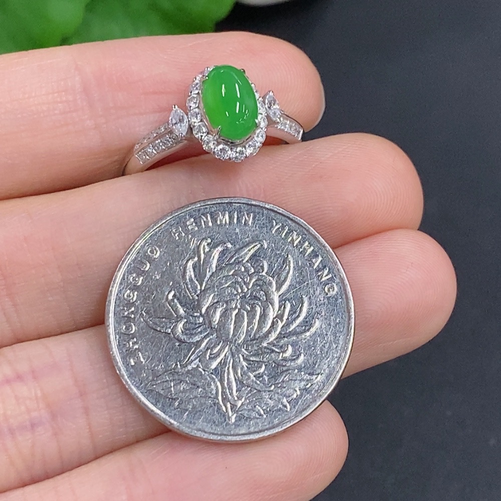 Jadeite inlaid ring 18k size 14 total weight approx. 3.15g with diamond accents