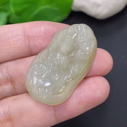 Jadeite Guanyin Pendant Total Weight Approx. 7.7g