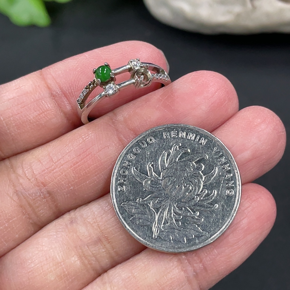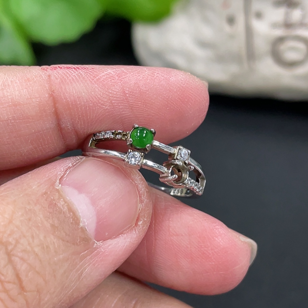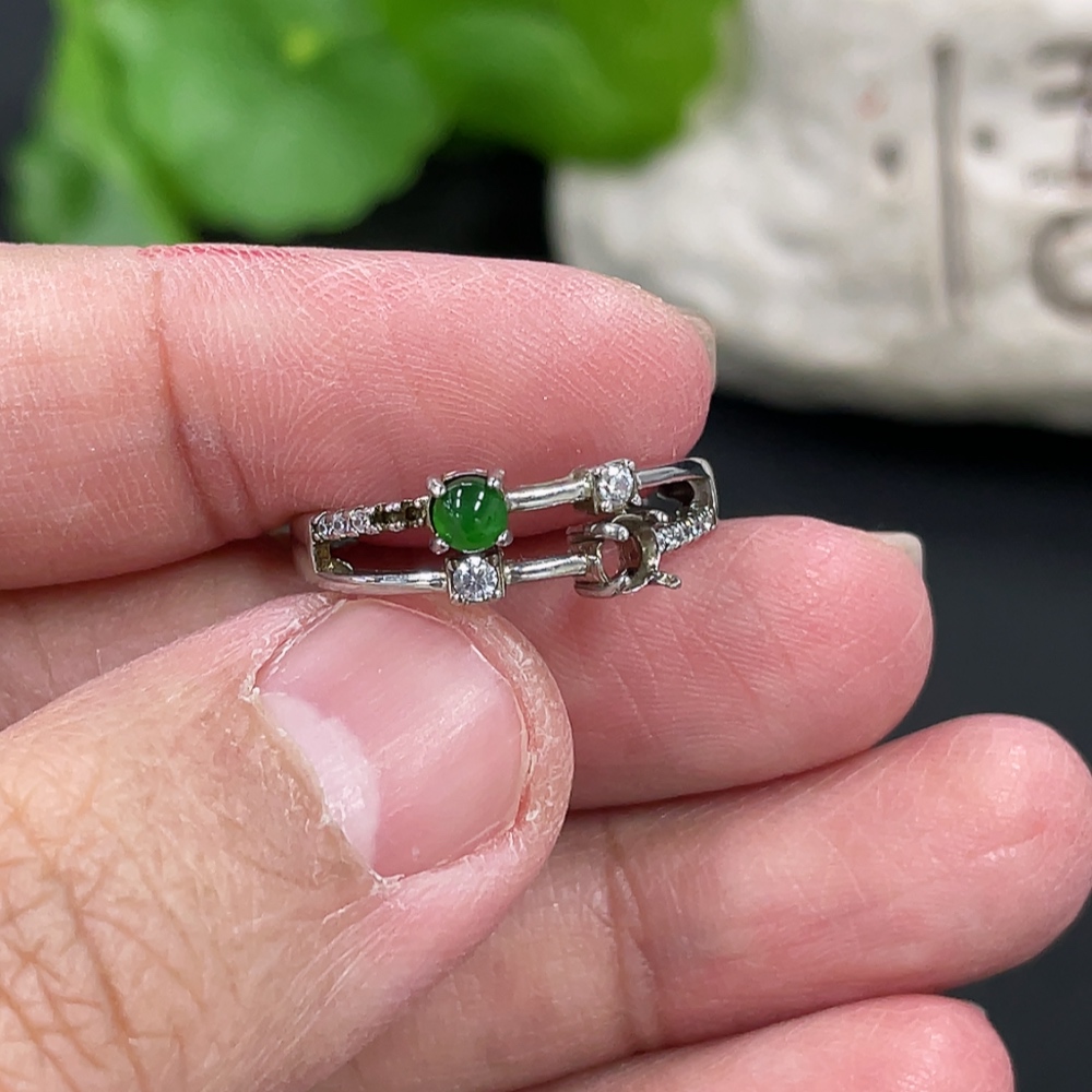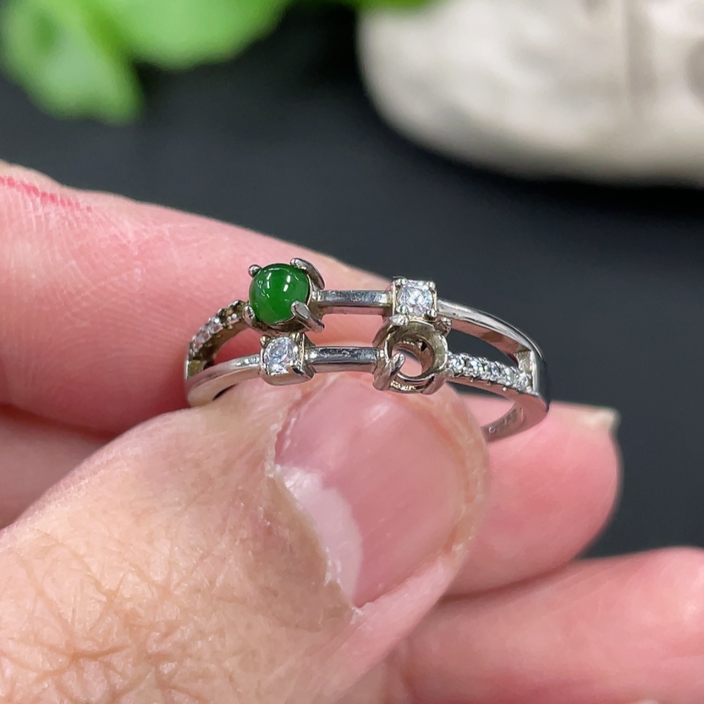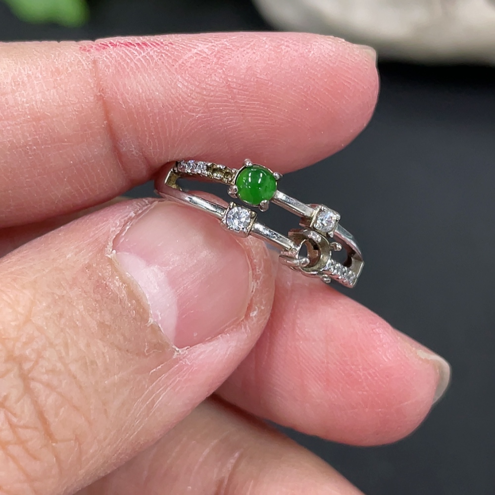 Jadeite Cabochon Inlaid Ring Non-Gold Setting Adjustable Size Total Weight Approx.1.78g Missing Stone