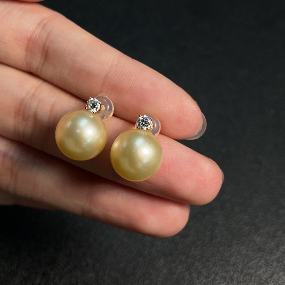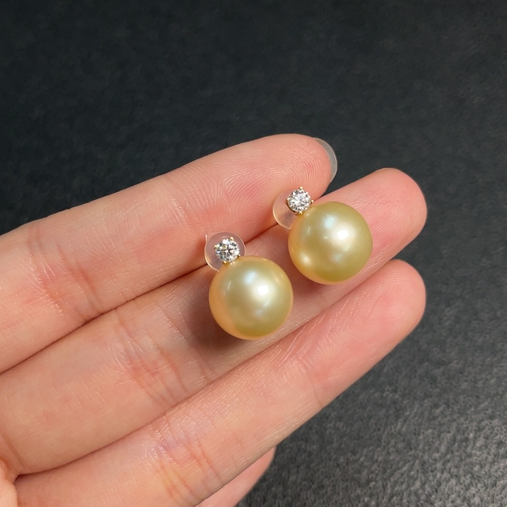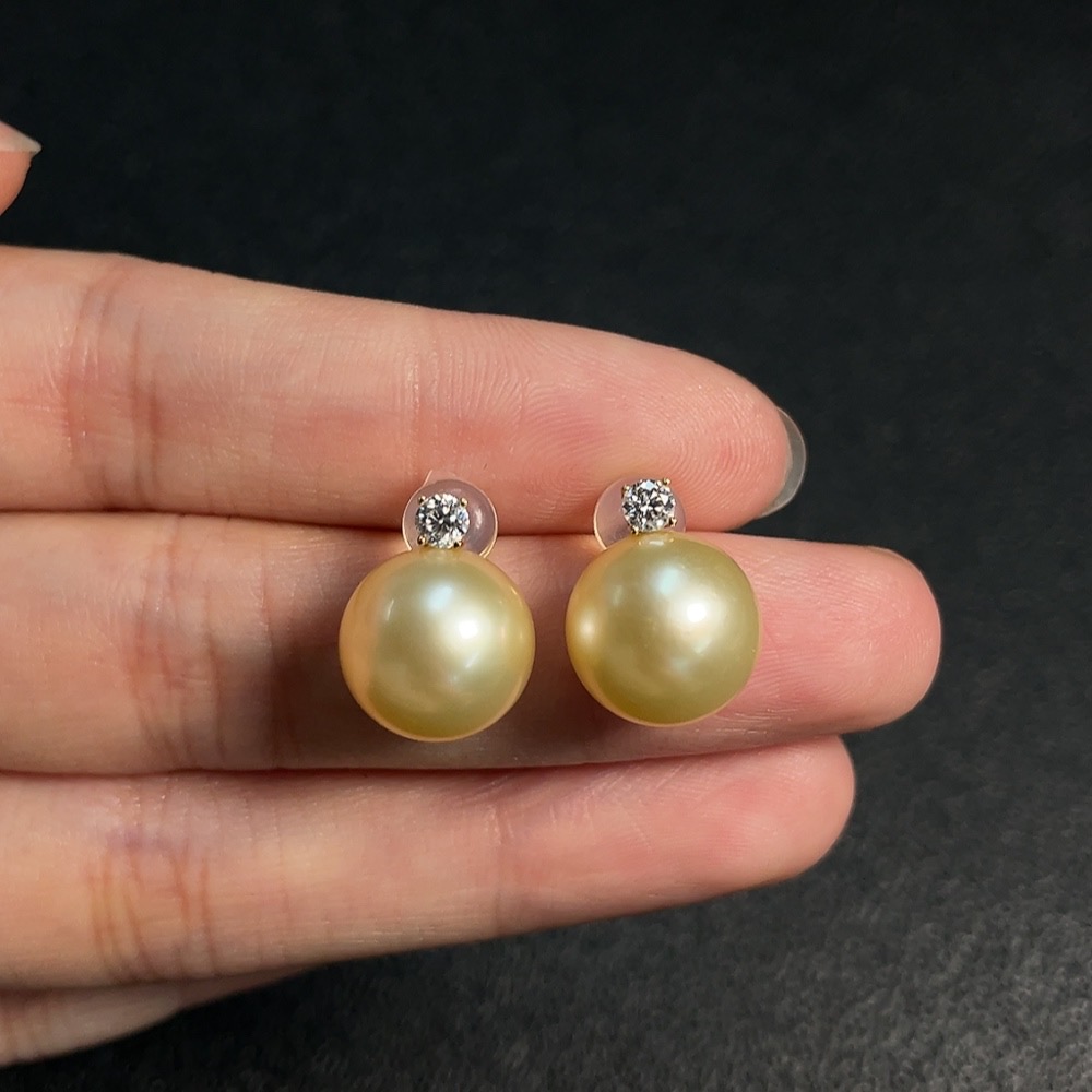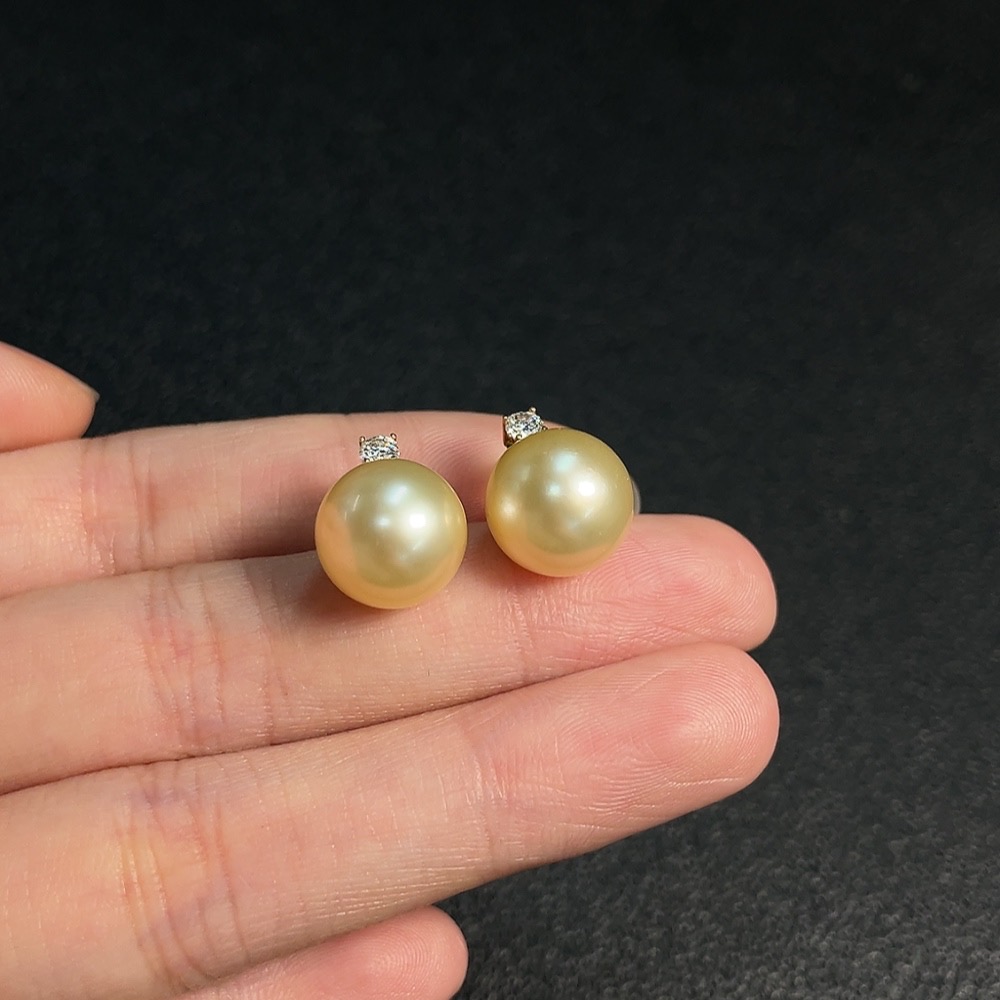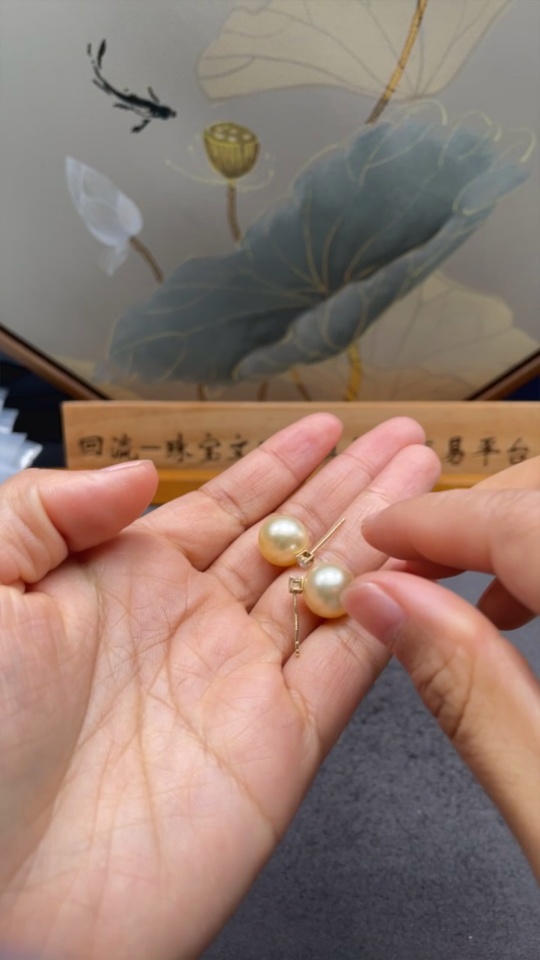 Seawater Pearl Earrings with 74% Gold Content, Color Origin Undetermined, Total Weight Approximately 4.7g, Size About 11.4mm