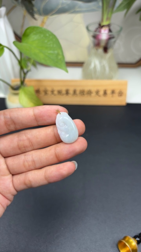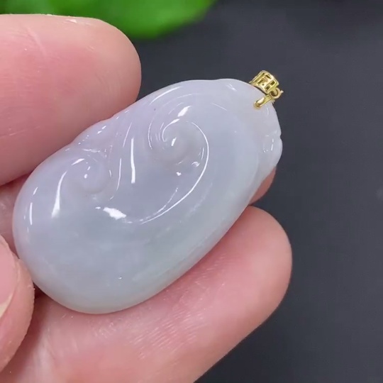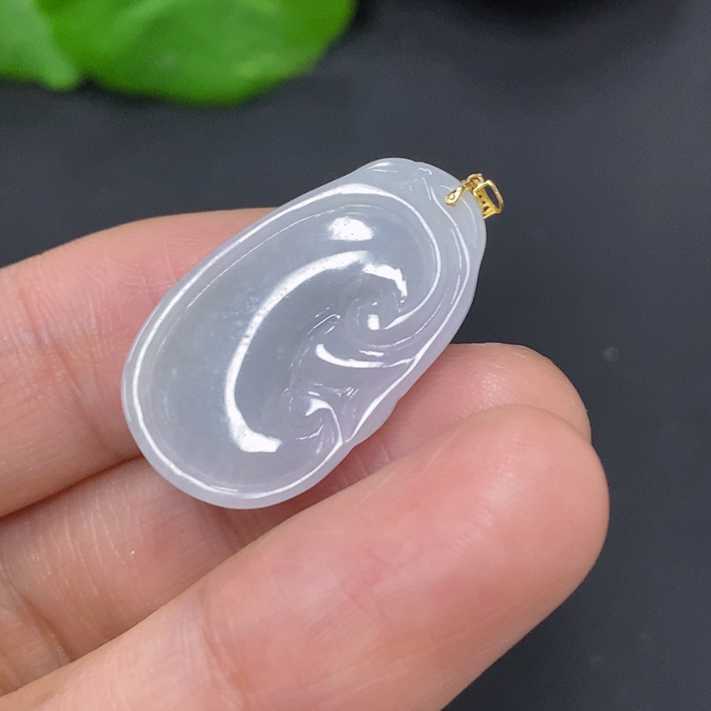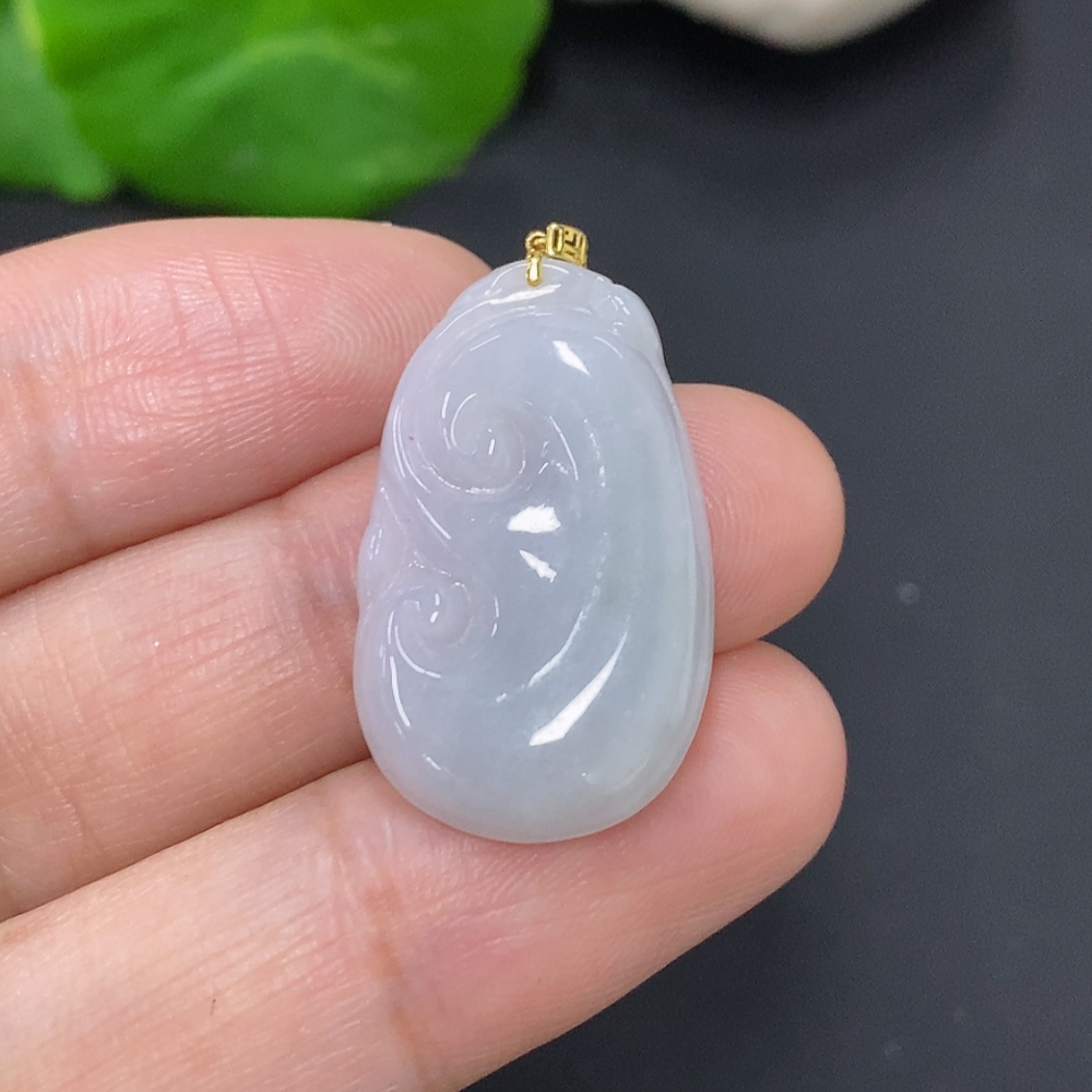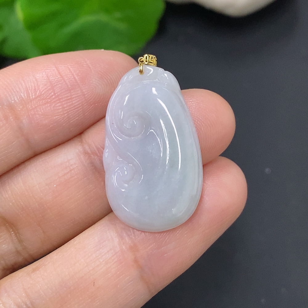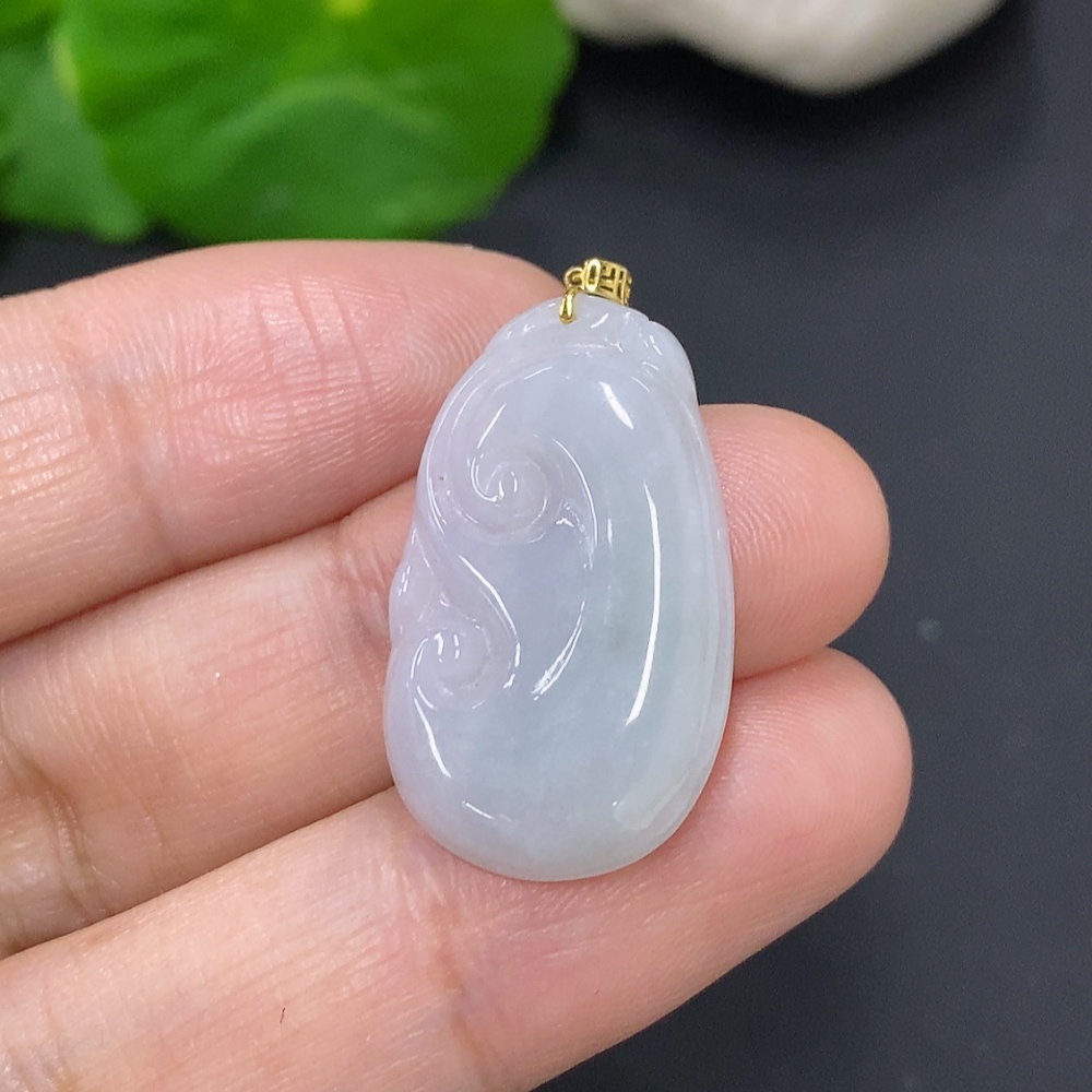 Jadeite Ruyi Pendant with 18K Gold Clasp, Total Weight Approximately 2.9g