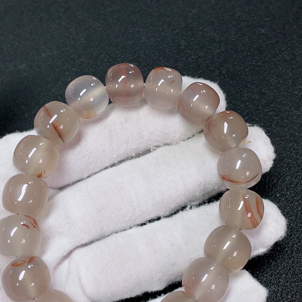 South Red Agate Bracelet with Visible Organic Matter, Total Weight Approx. 57.16g, Size About 12.8mm