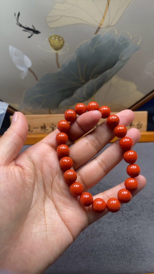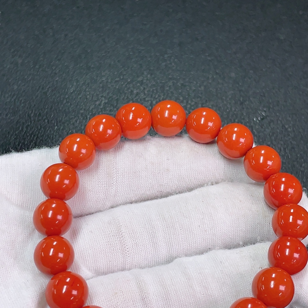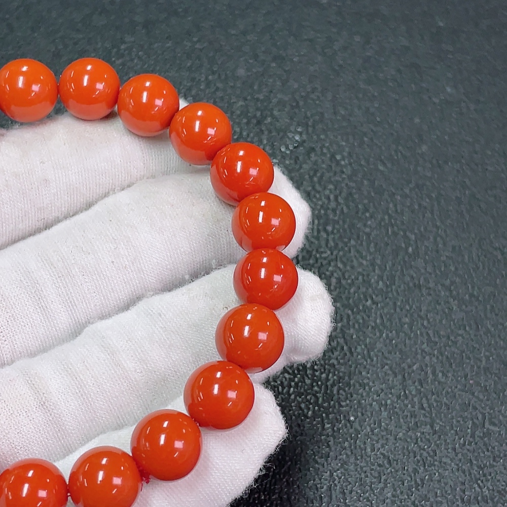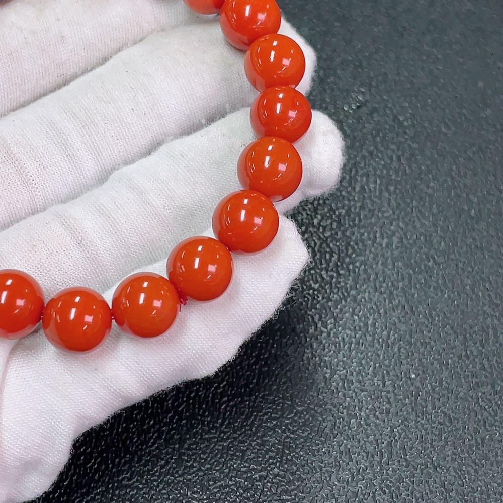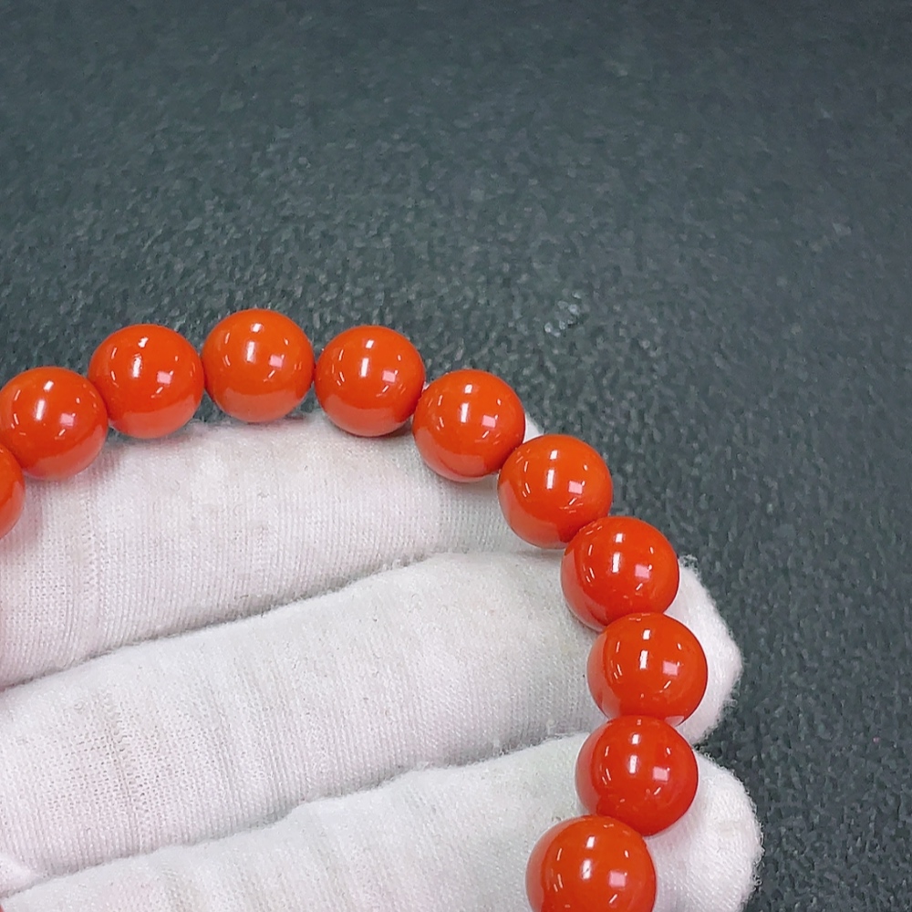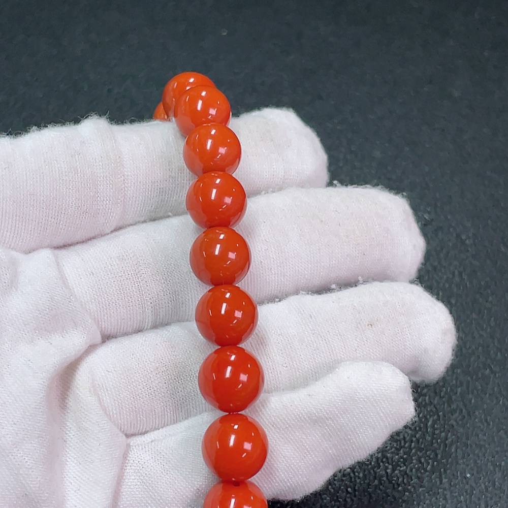 Red Agate Bracelet with Visible Organic Matter, Total Weight Approx. 29.23g, Size ~10.1mm