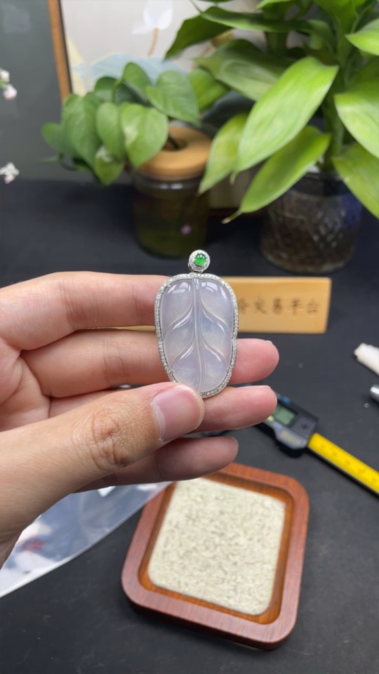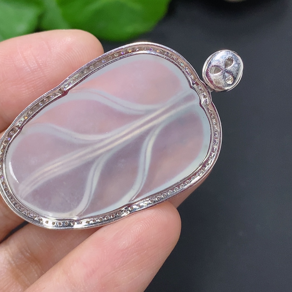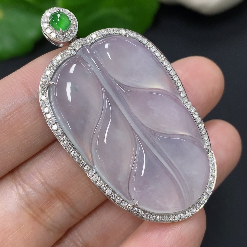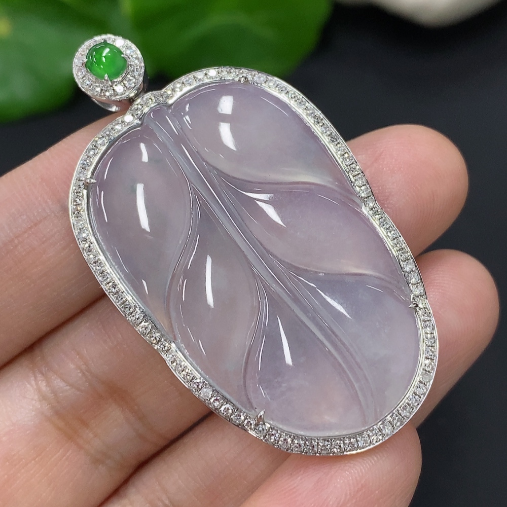 Jadeite Leaf Inlaid Pendant 18K Gold Total Weight Approx. 10.5g (With Diamond Accents)