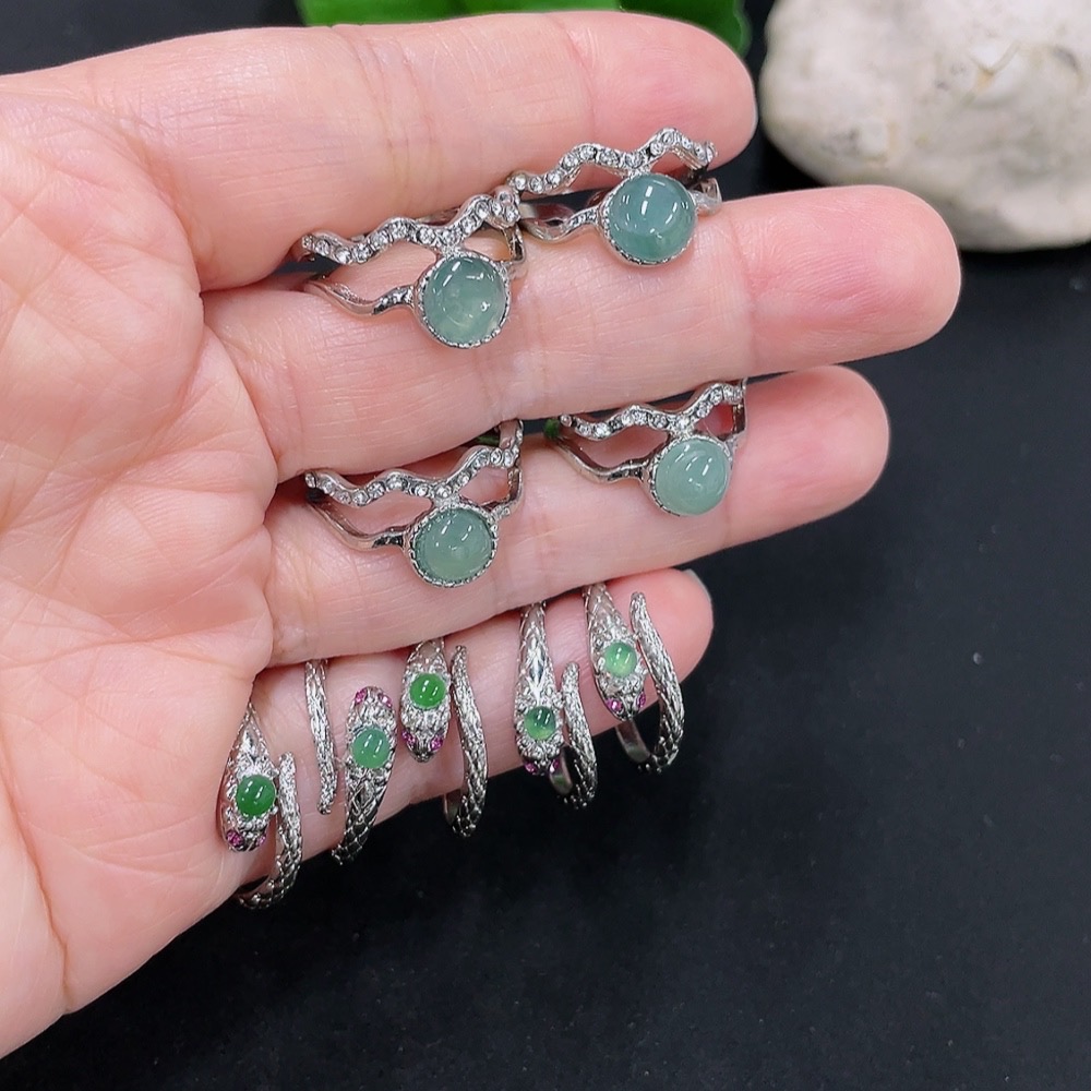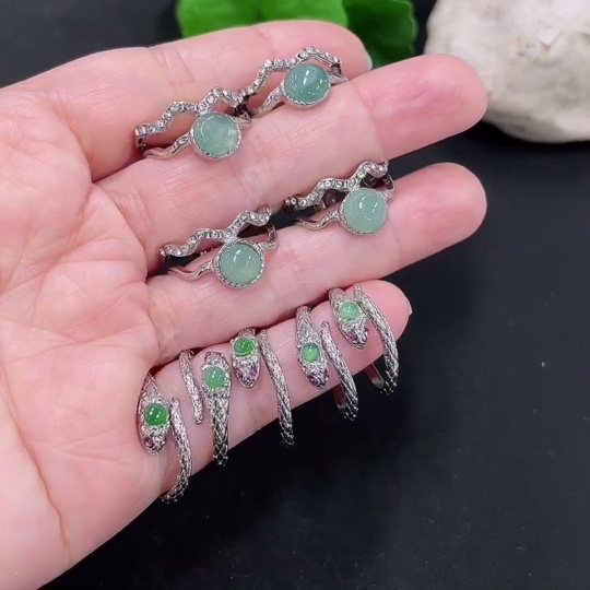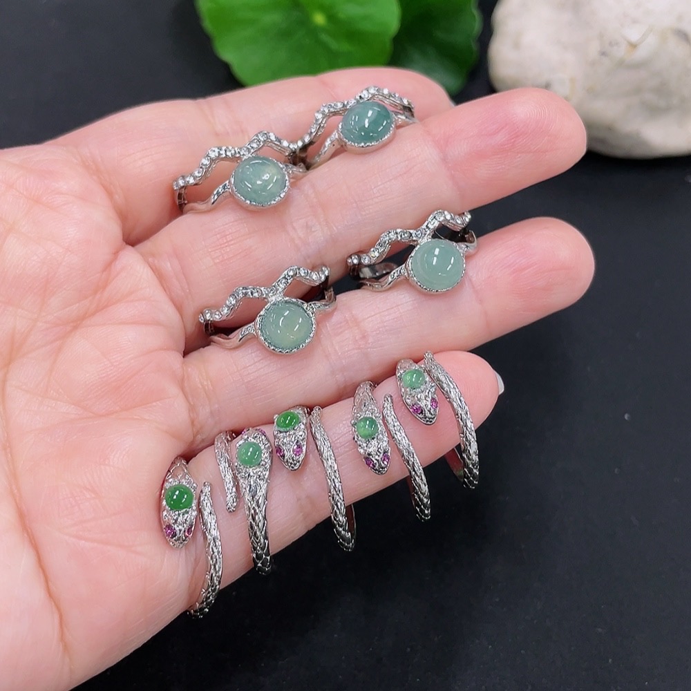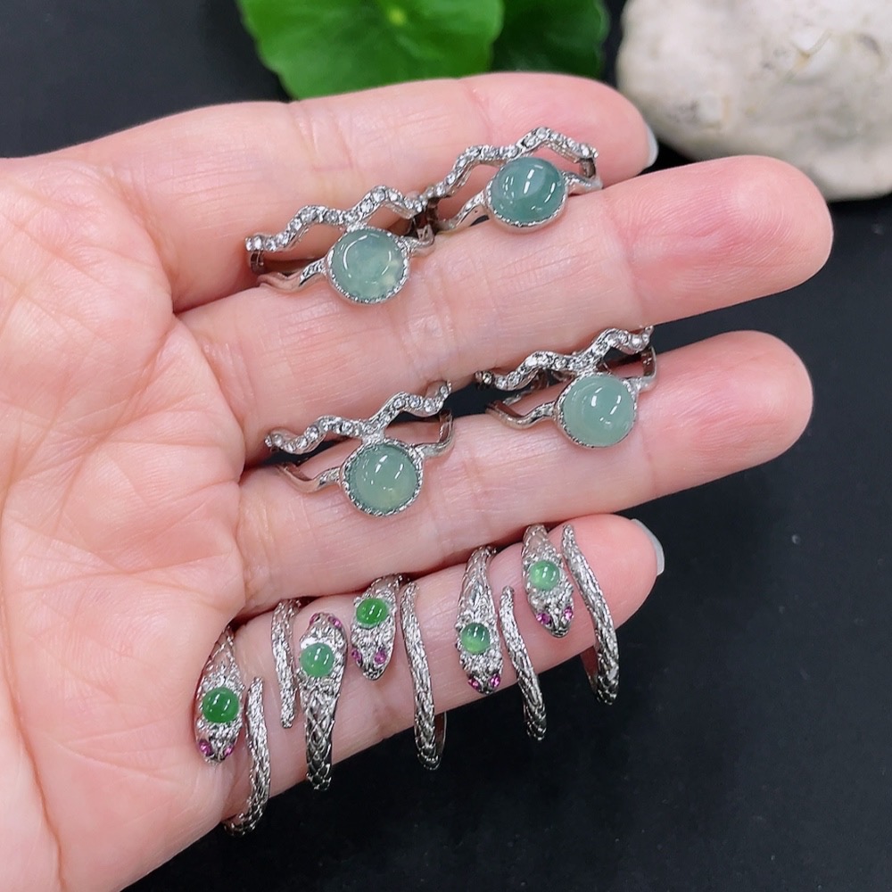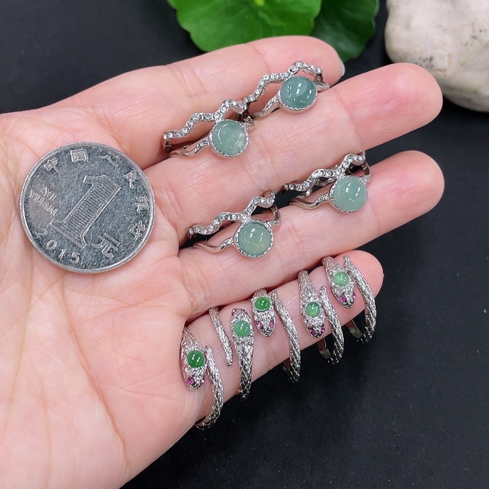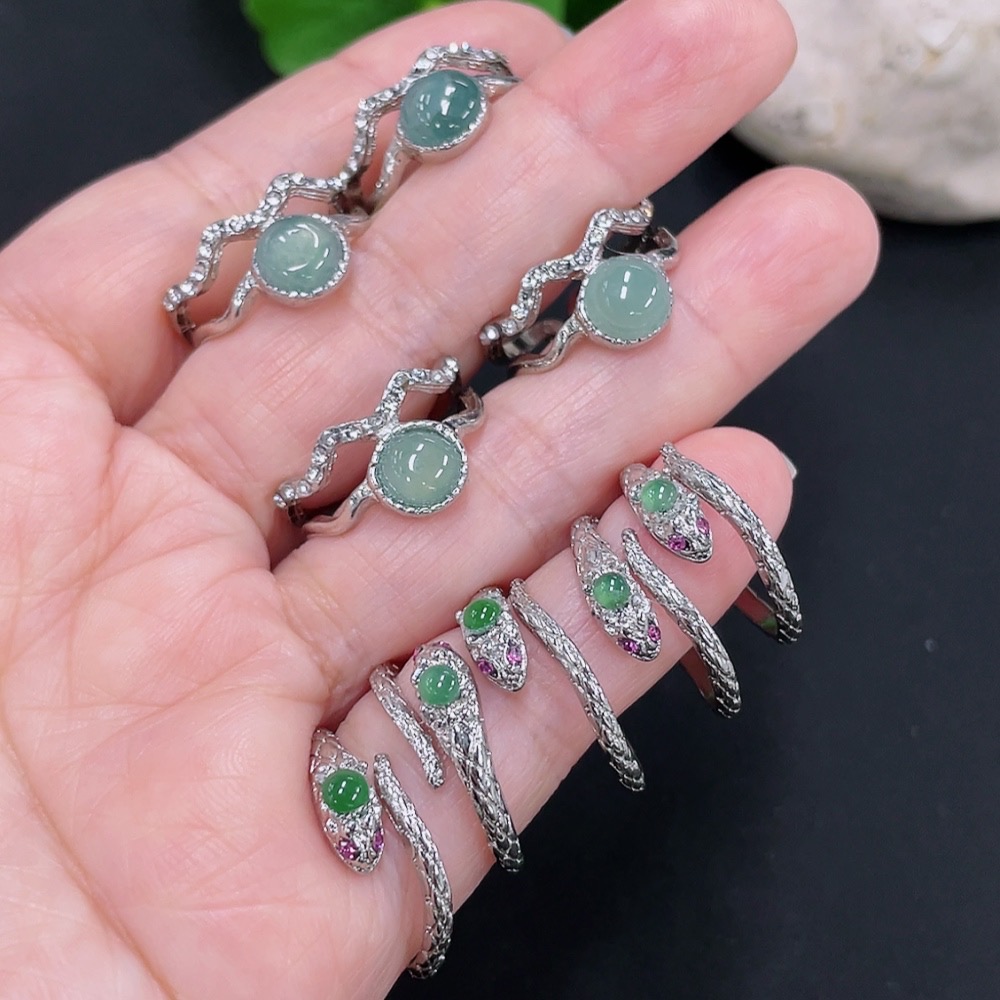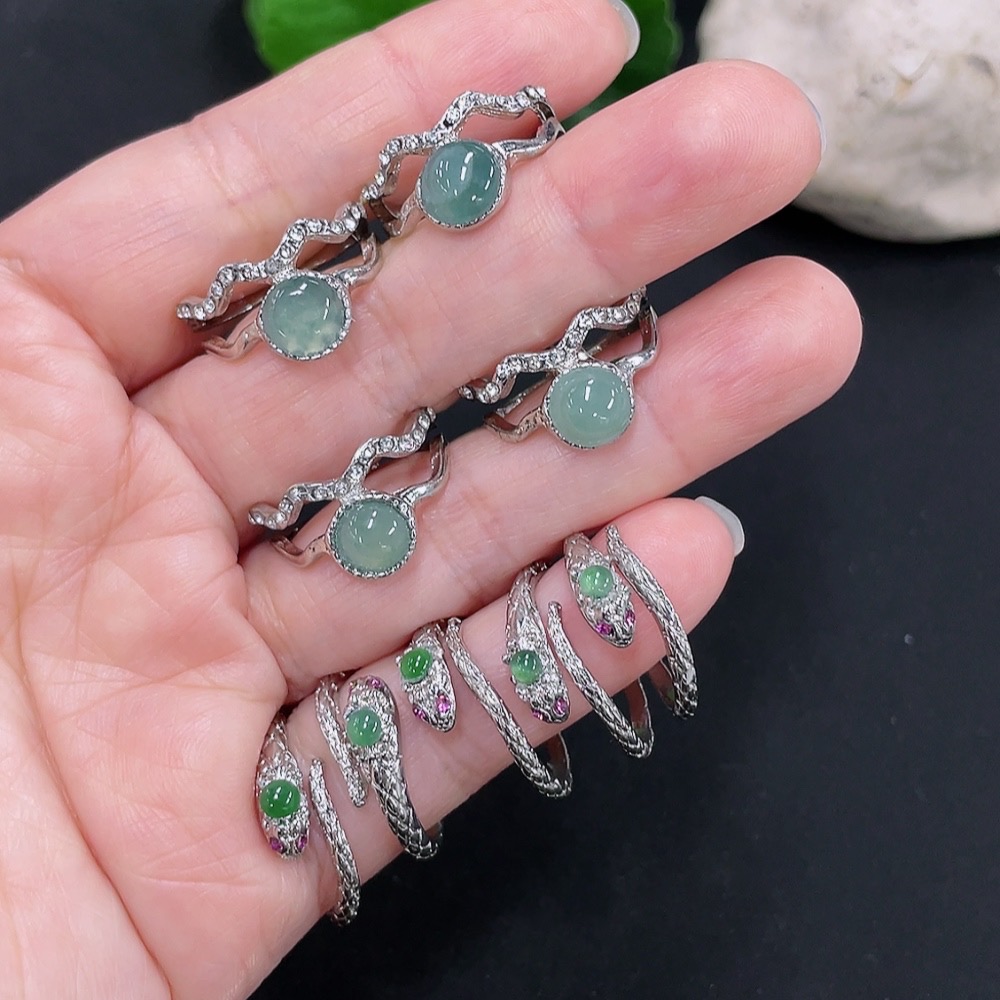 Jadeite Inlaid Ring Sell as a Lot (Non-Gold Inlaid) (Adjustable)