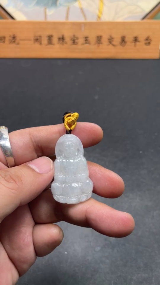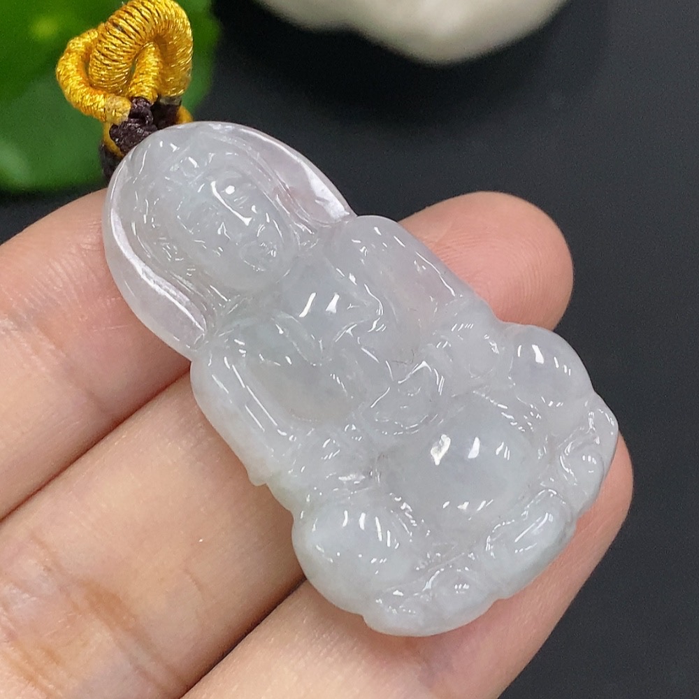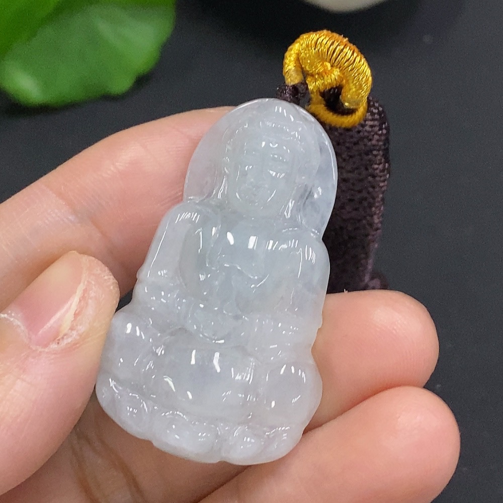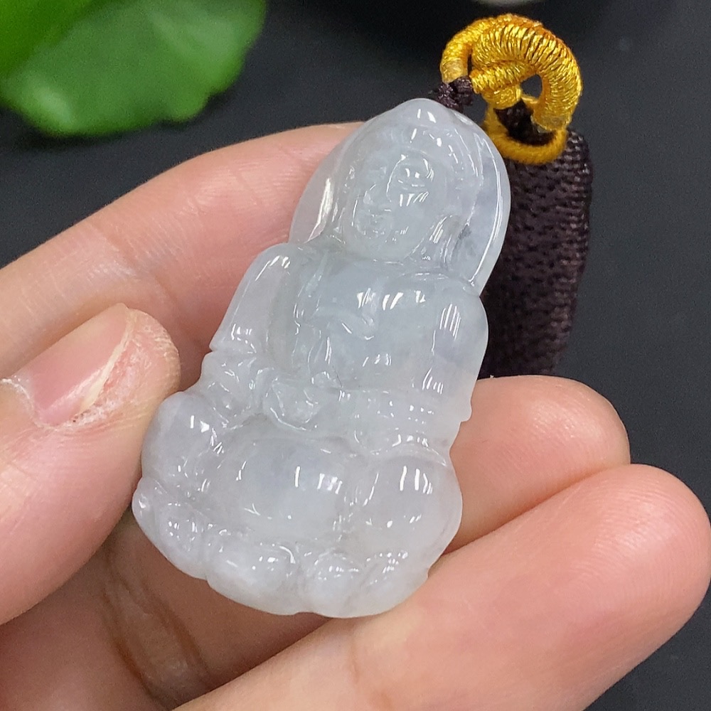 Jadeite Guanyin Pendant with total weight including rope approximately 11.2 grams