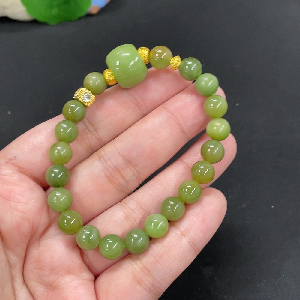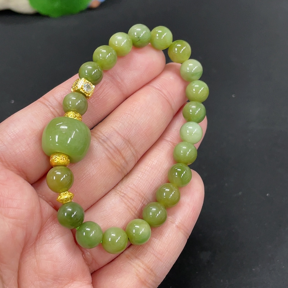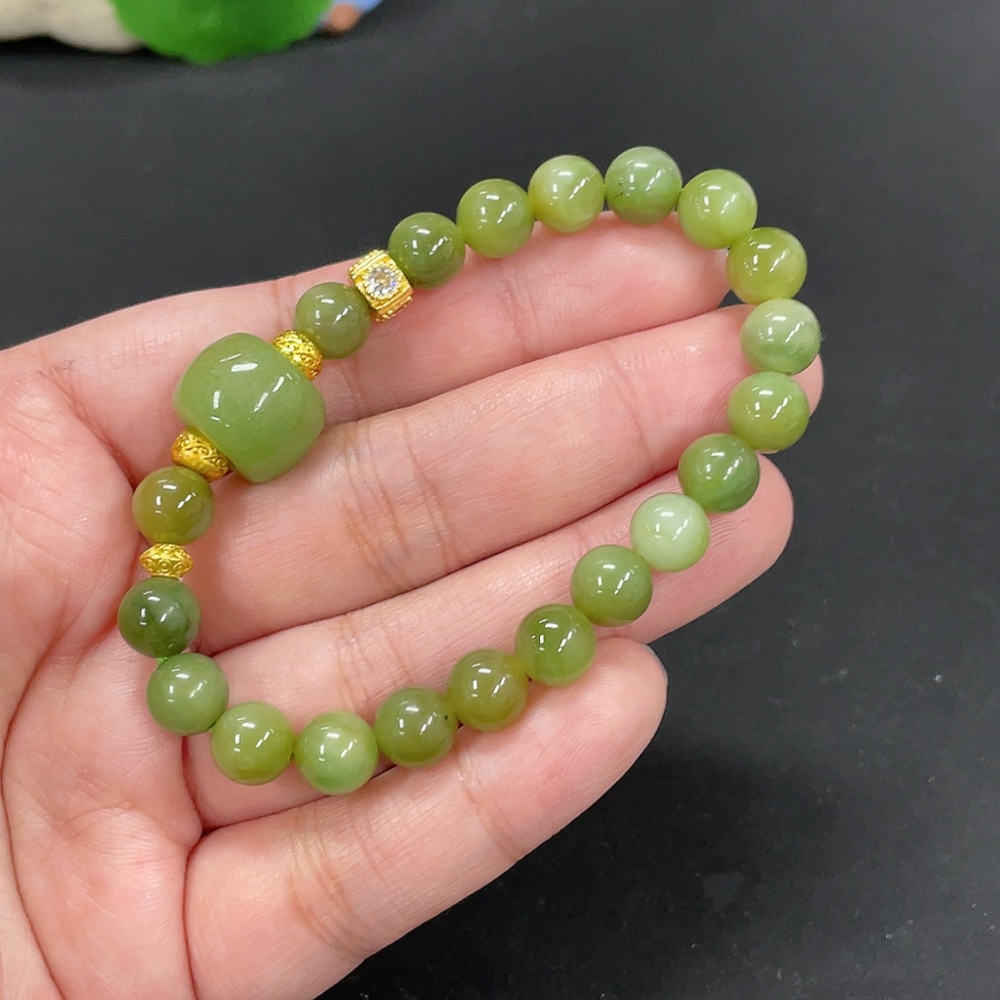 Hetian Jade Bracelet Approx. 7.7mm Total Weight Approx. 21.5g Non-Gold