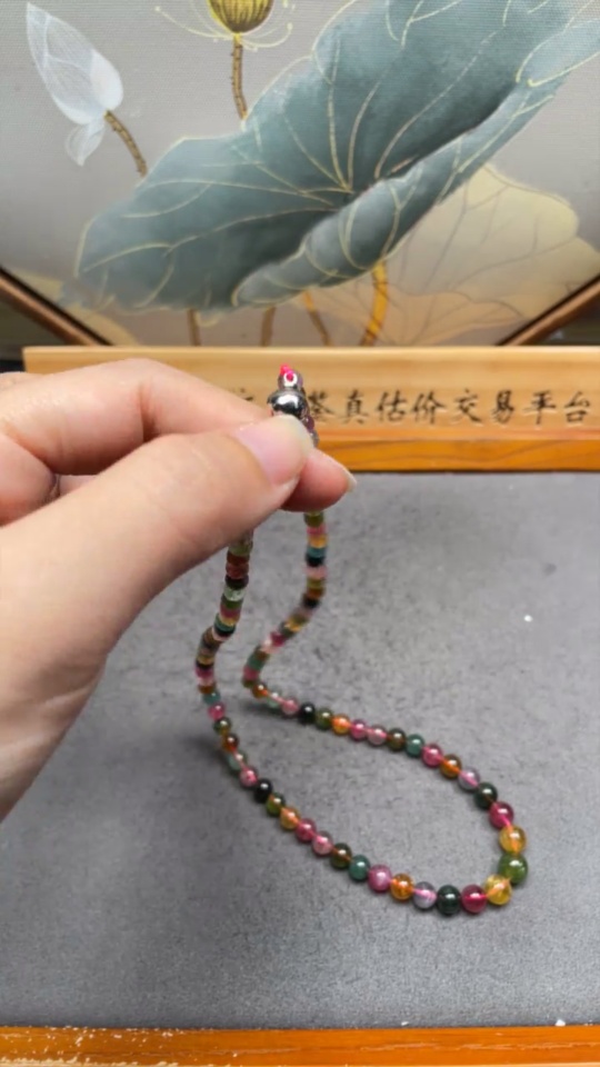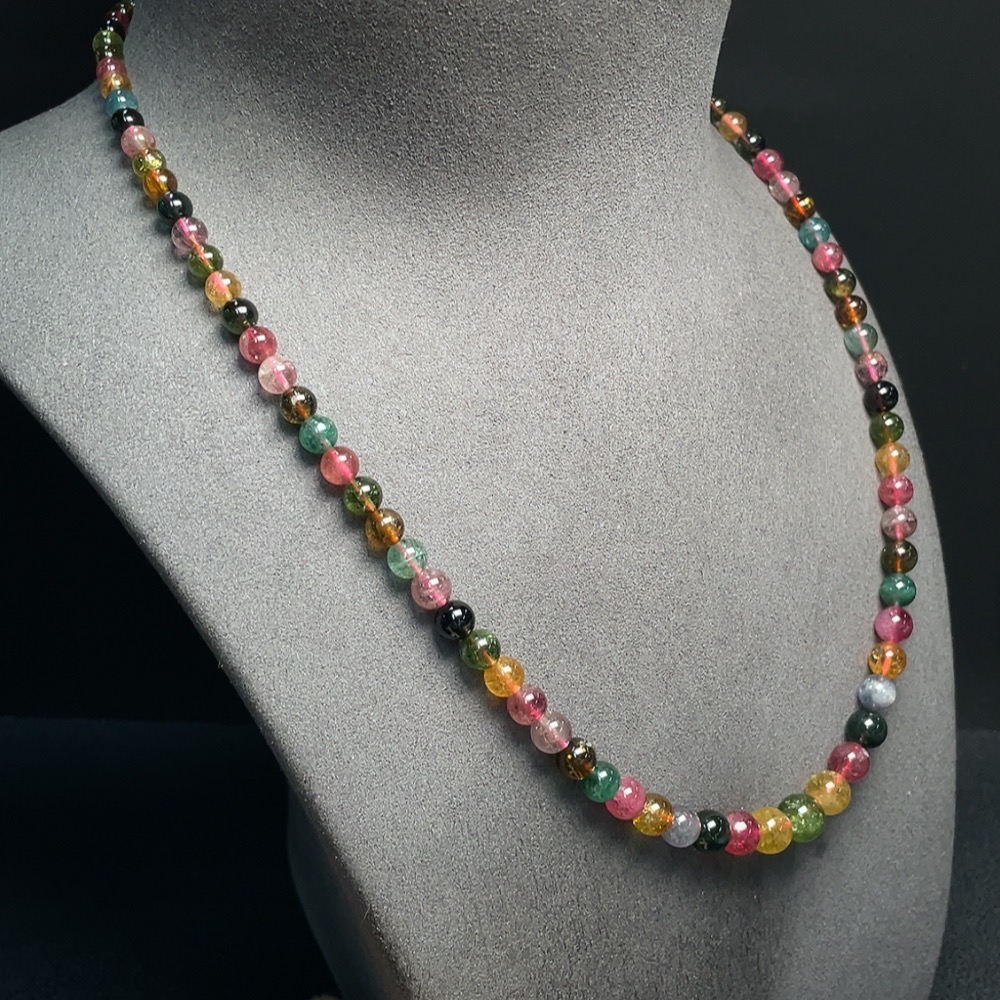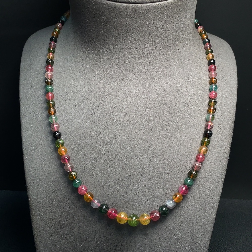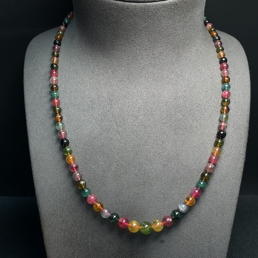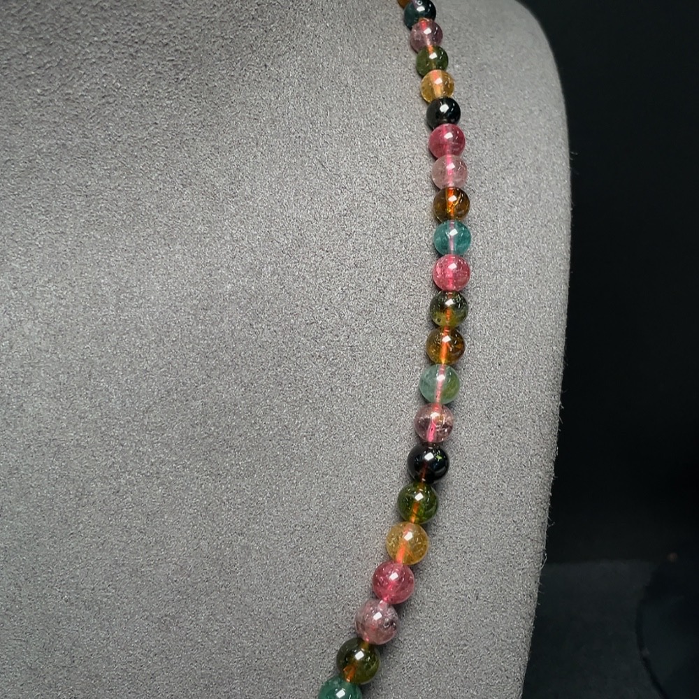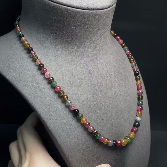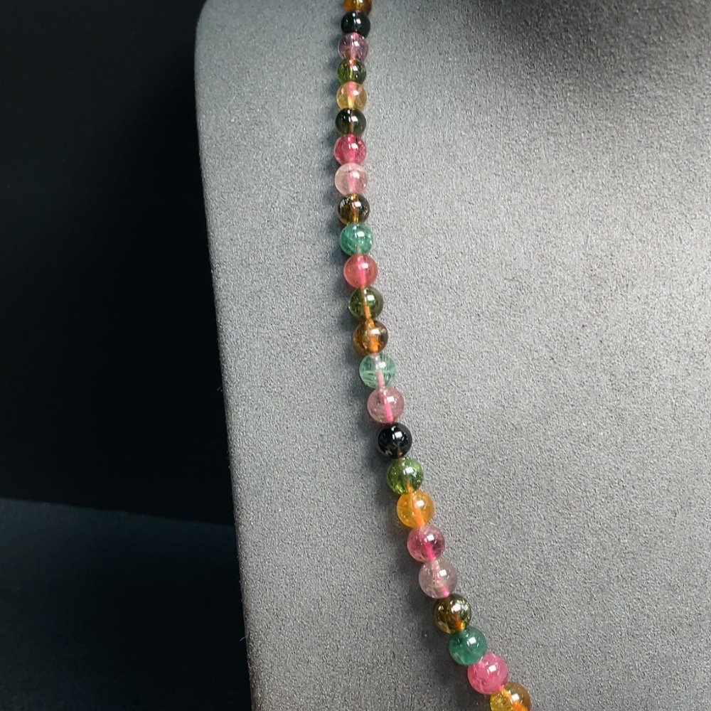 Tourmaline bead necklace containing other mineral components, visible organic matter, total weight approx. 31.09g, size approx. 4.6-8.4mm, non-gold