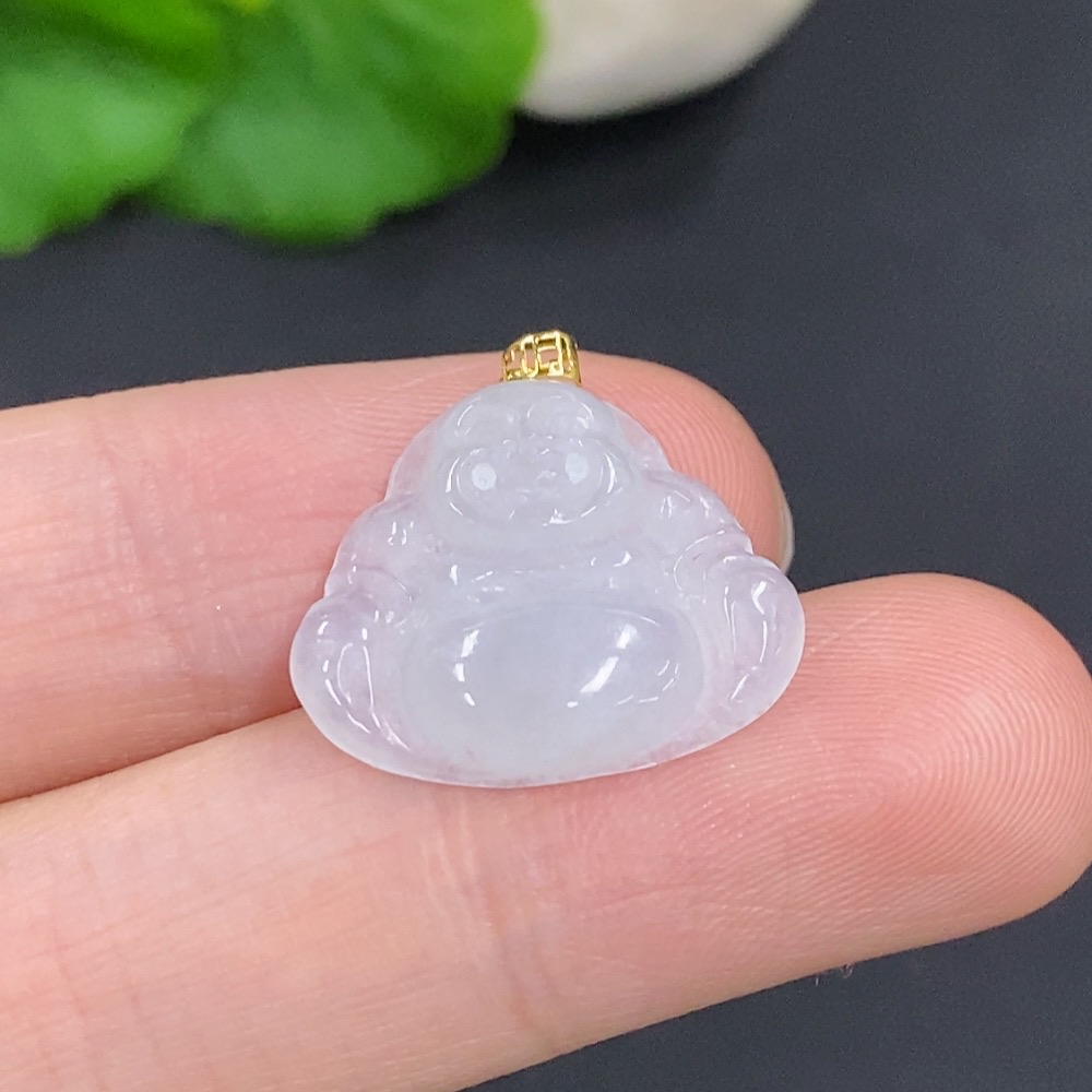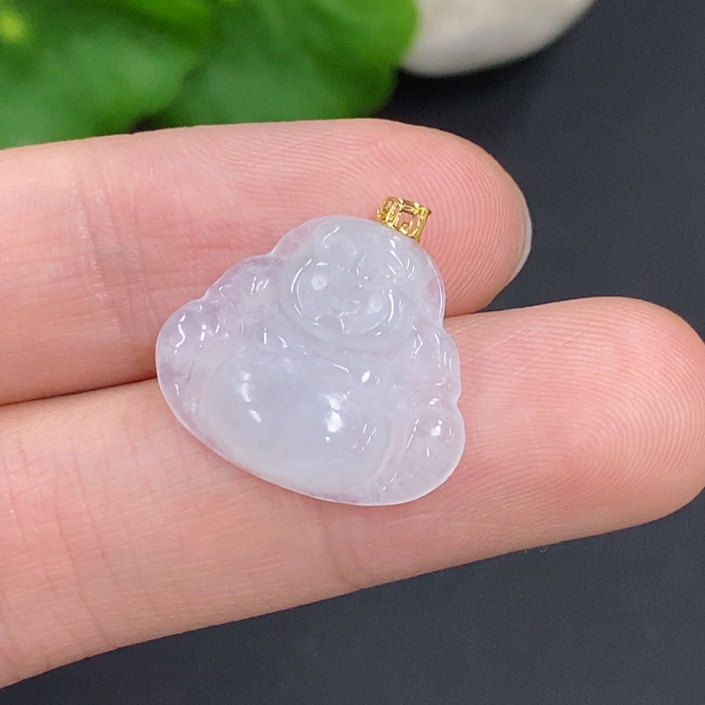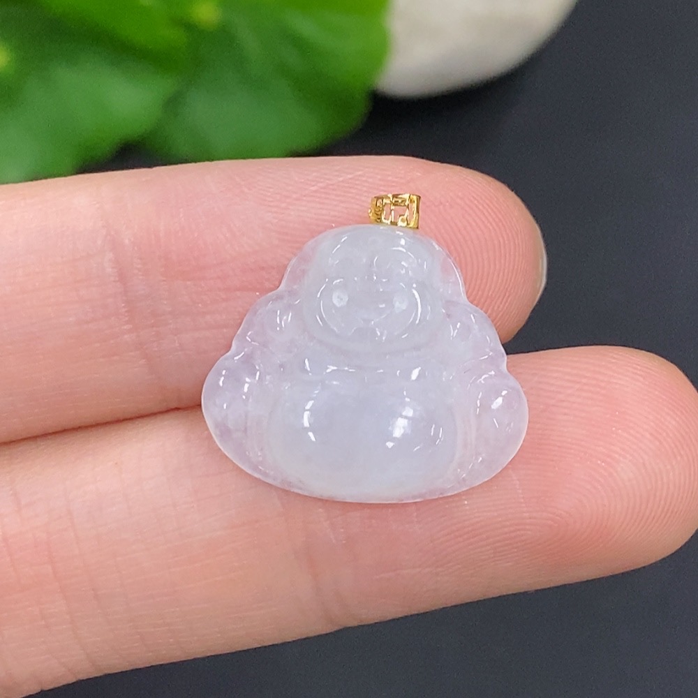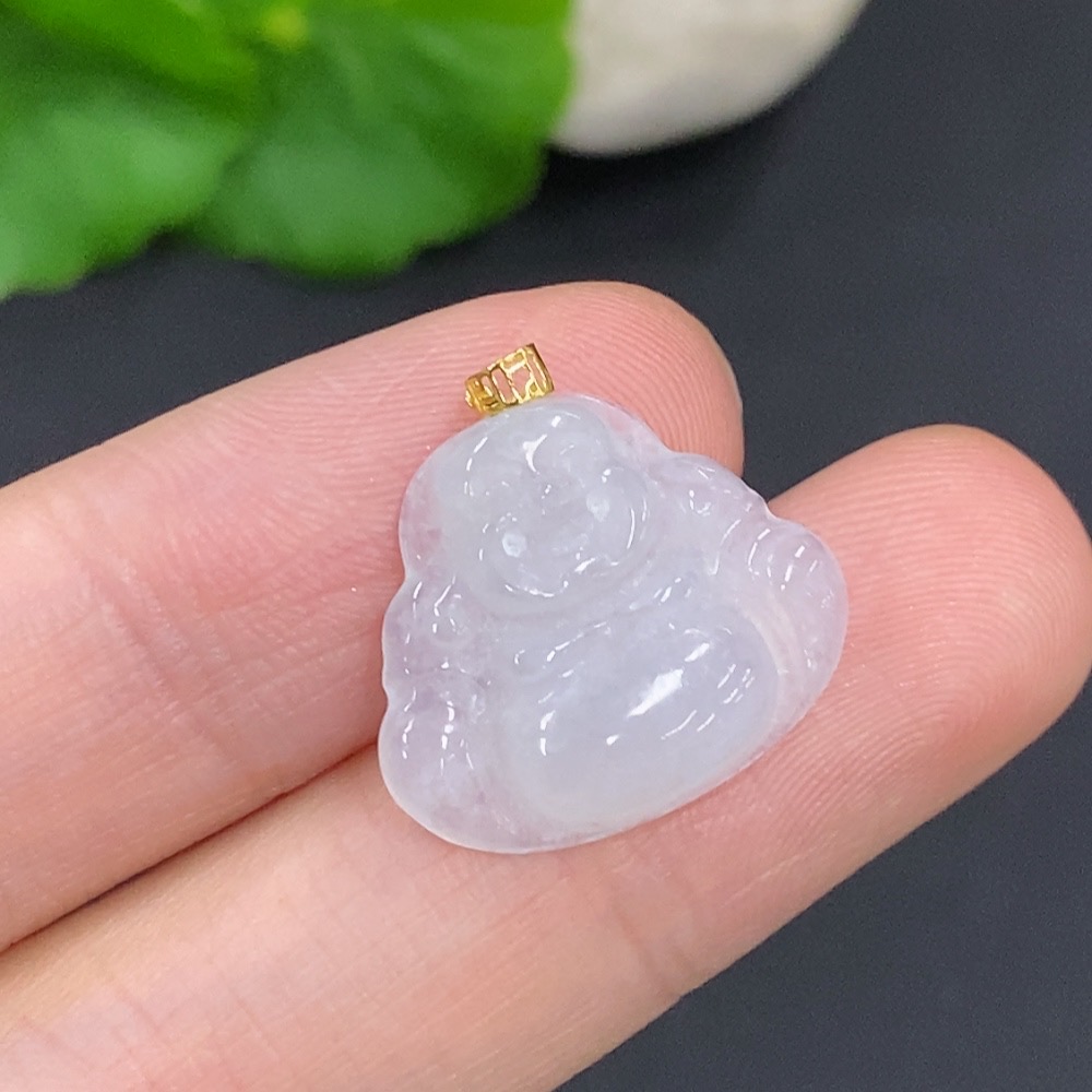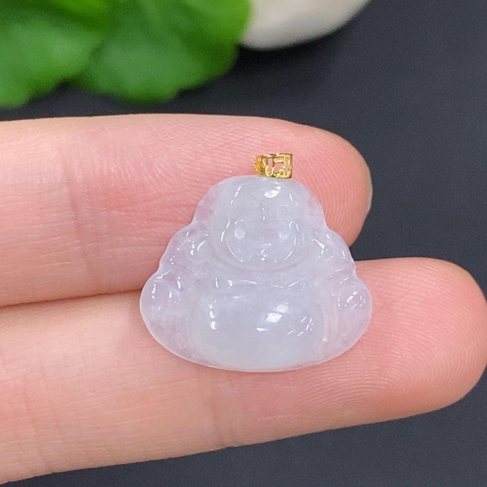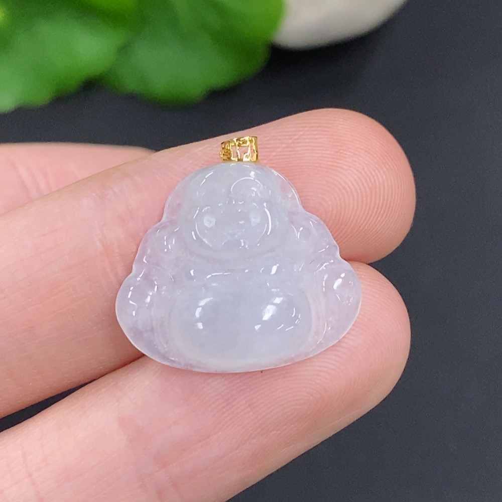 Jadeite Buddha Pendant with 18k Gold Clasp, Total Weight Approximately 1.8g