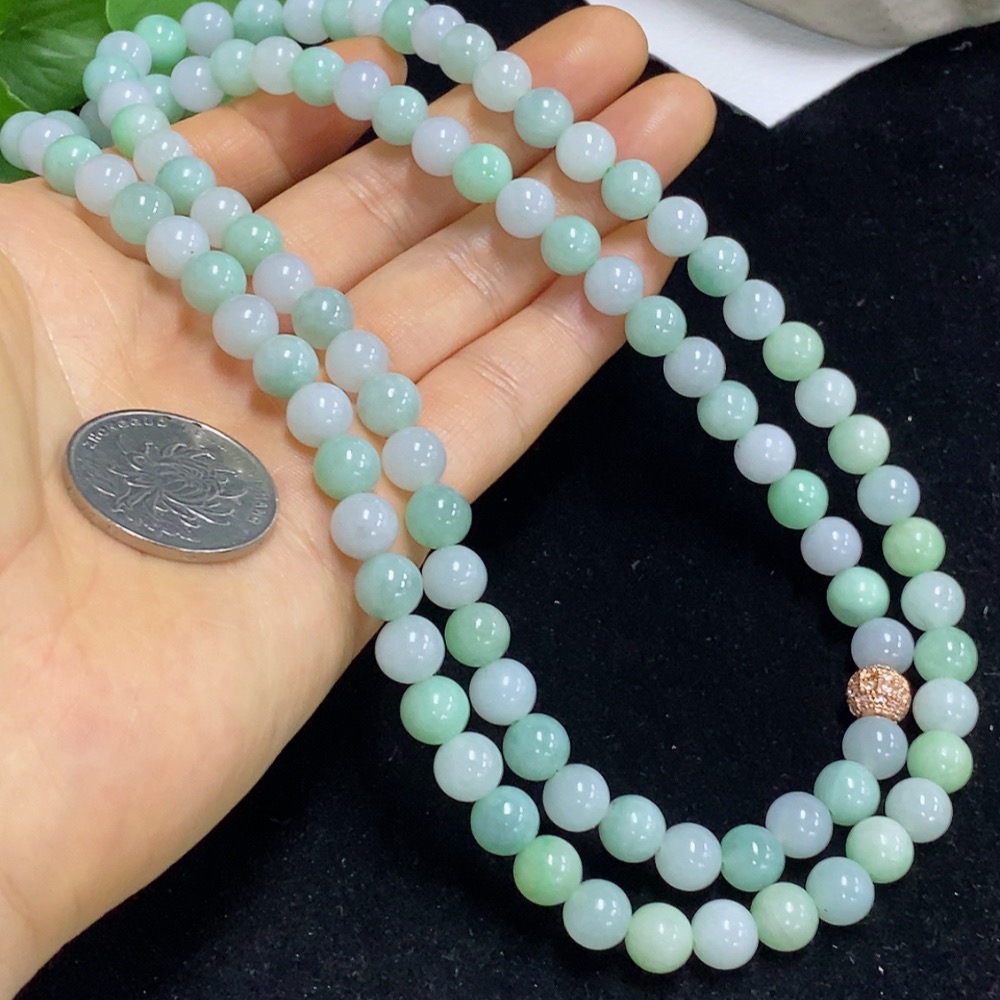 Jadeite Bead Necklace Approx. 7.9mm Non-Gold Total Weight Approx. 85.18g