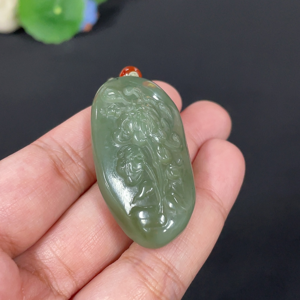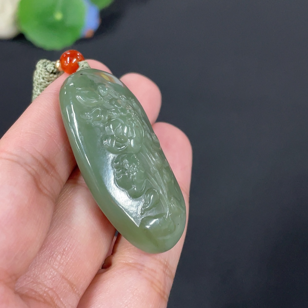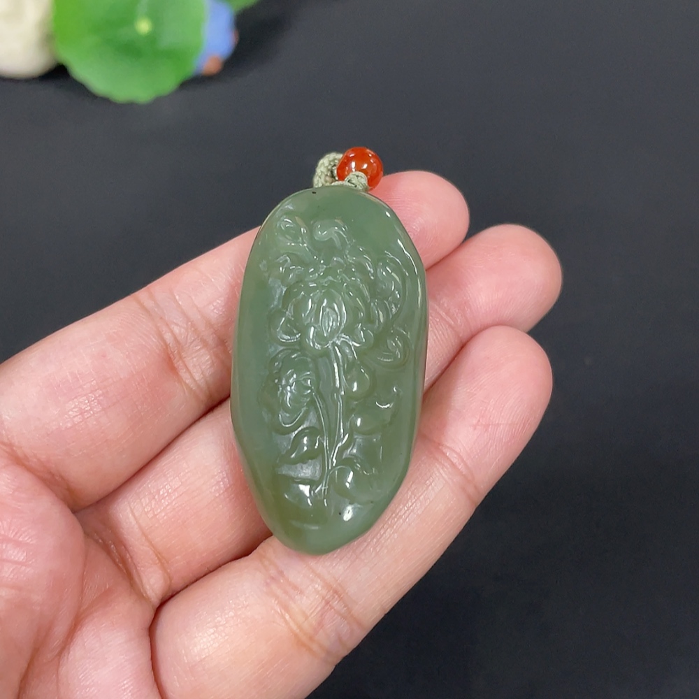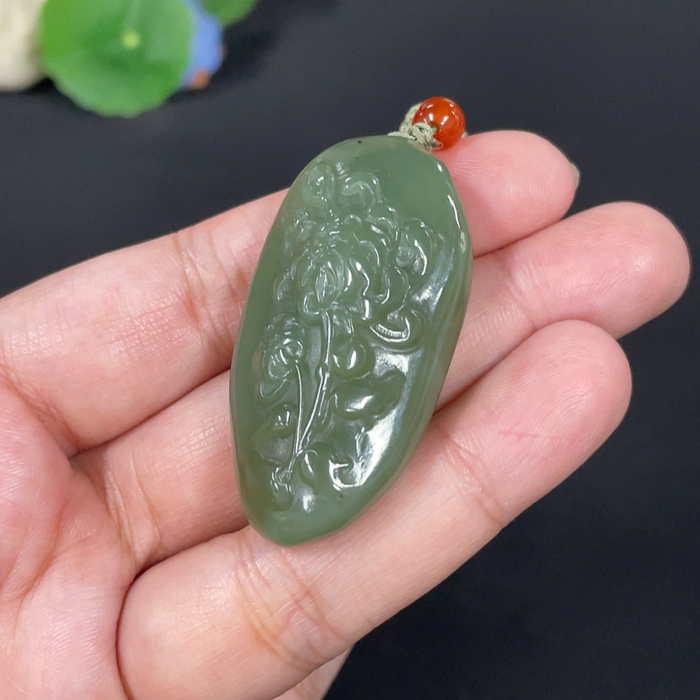 Hetian Jade Pendant "Flowers Blooming in Wealth