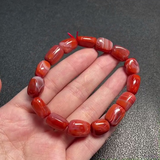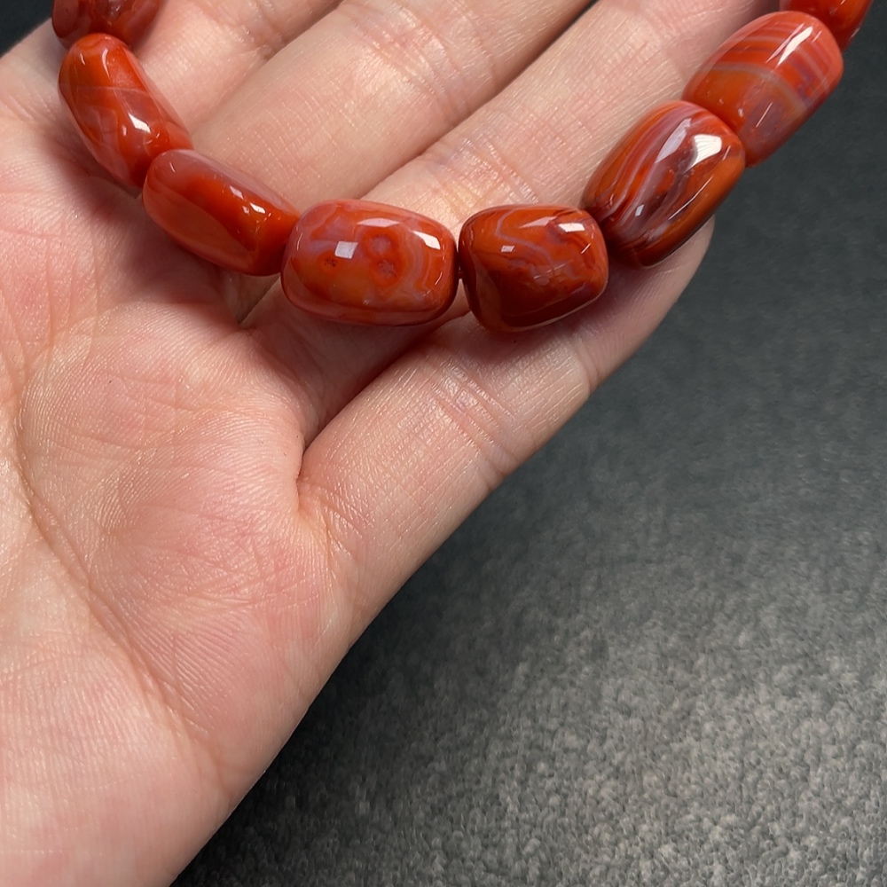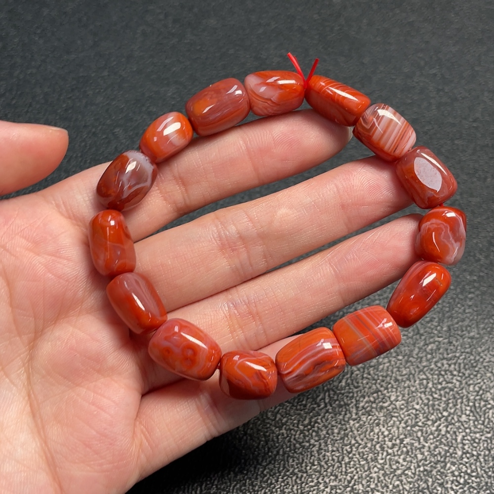 Red Agate Bracelet with Visible Organic Matter, Total Weight Approx. 30.30g, Size About 10.7mm