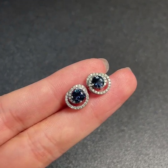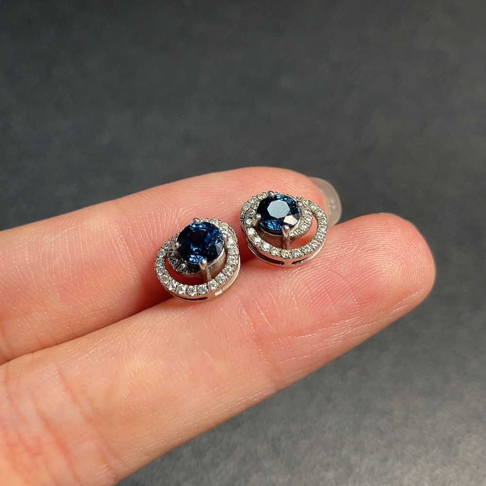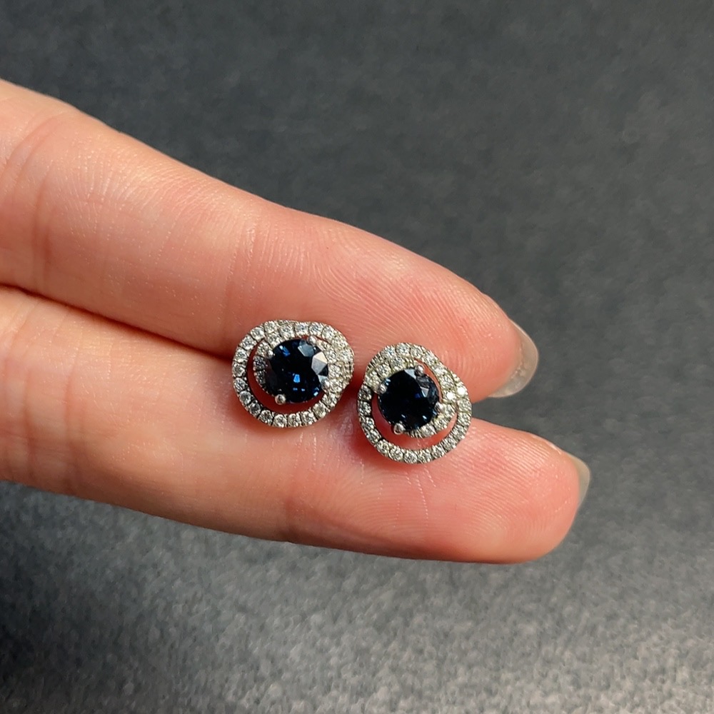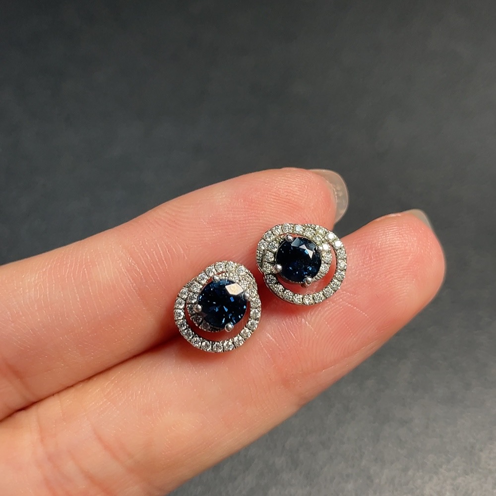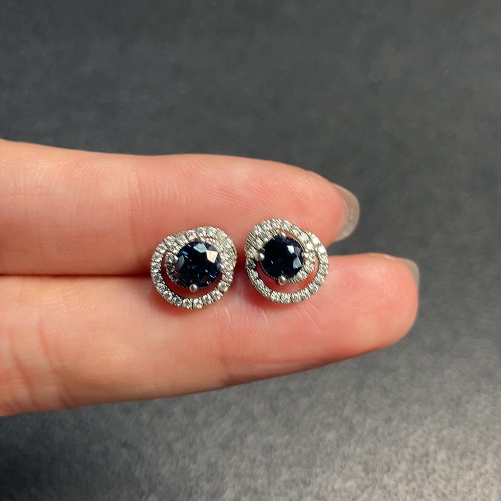 Sapphire Earrings, 37% Gold Content, Total Non-Diamond Weight Approx. 2.07g, Stone Size Around 4.3mm