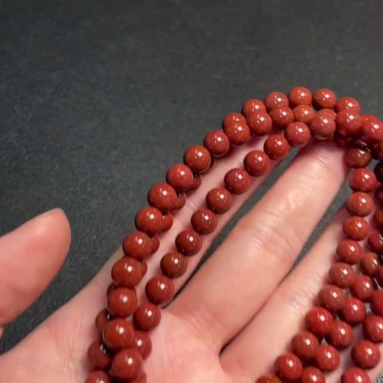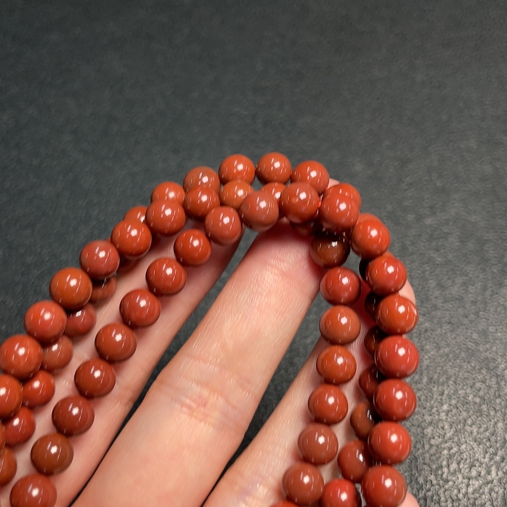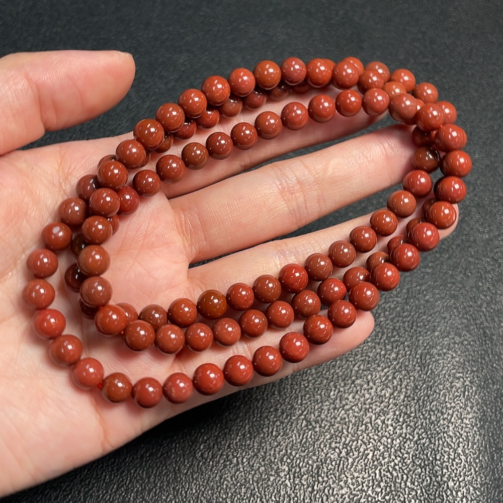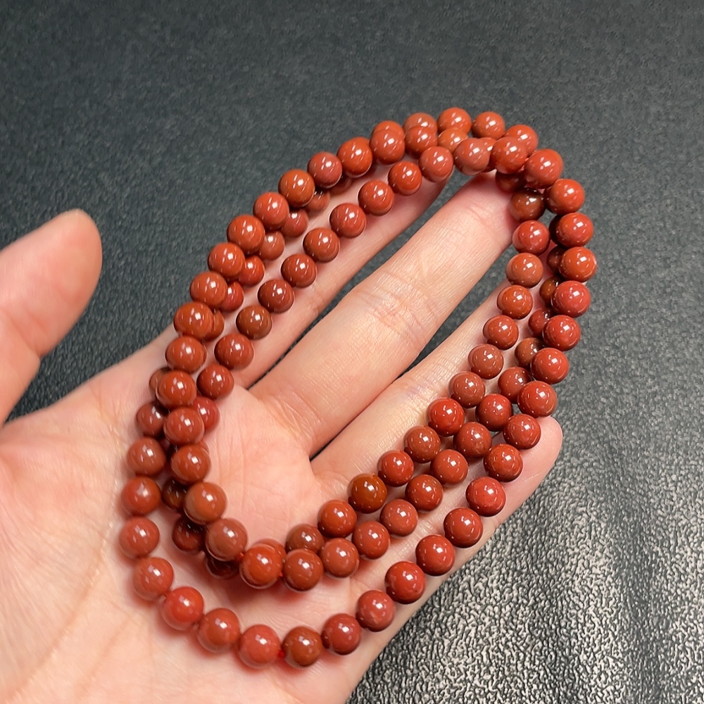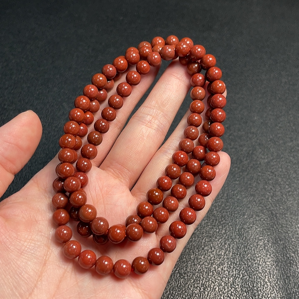 South Red Agate Bead Necklace with Visible Organic Matter, Total Weight Approx. 42.37g, Size About 6.7mm