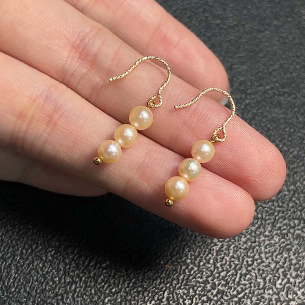 Pearl Earrings Hook No Stamp Gold Content Tested Au45% String Non-Gold Total Weight Approx.1.15g Size About 4.3mm
