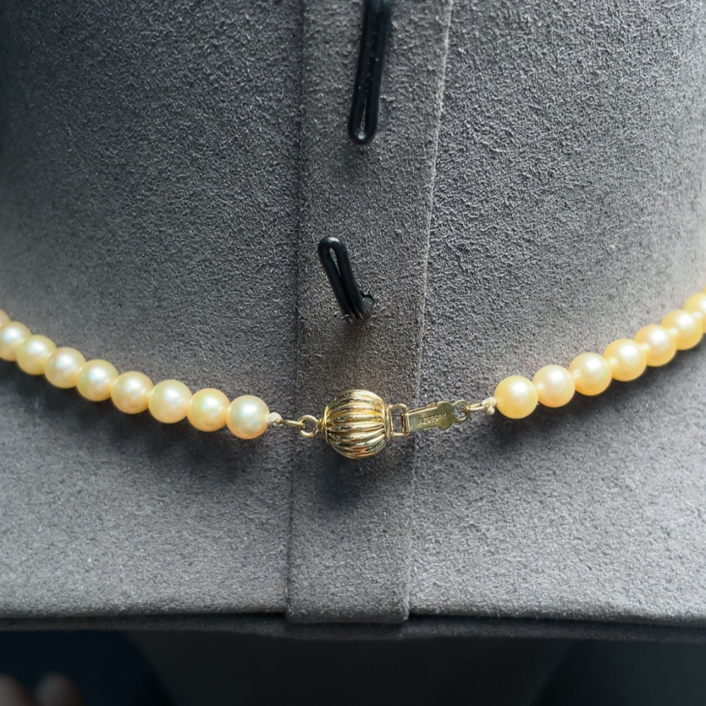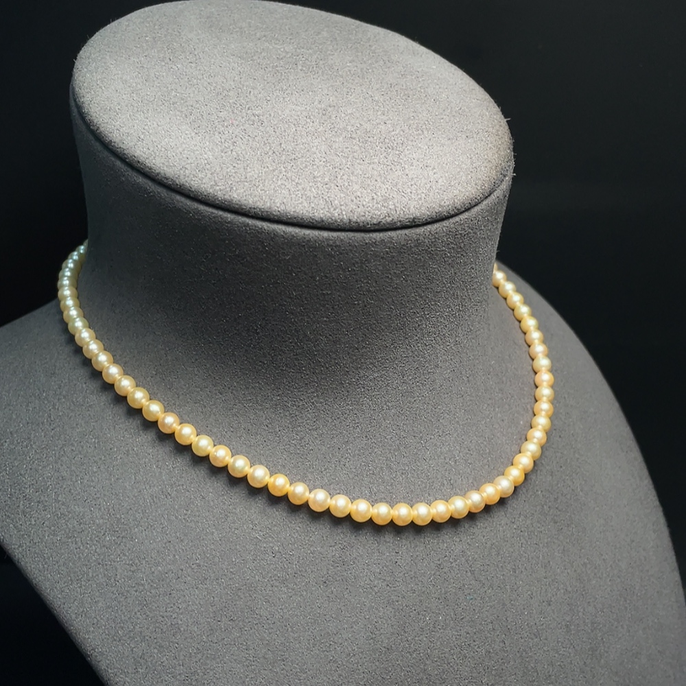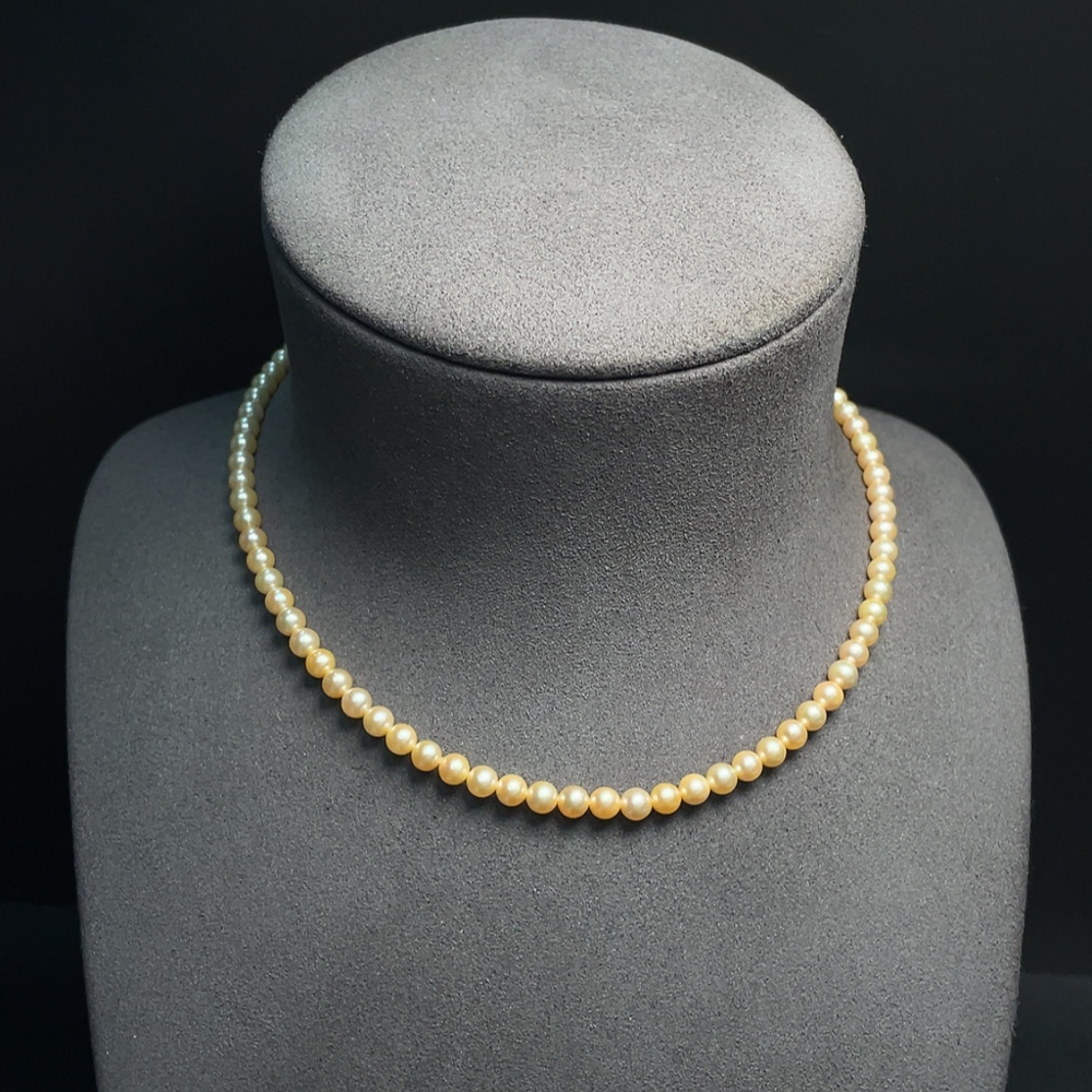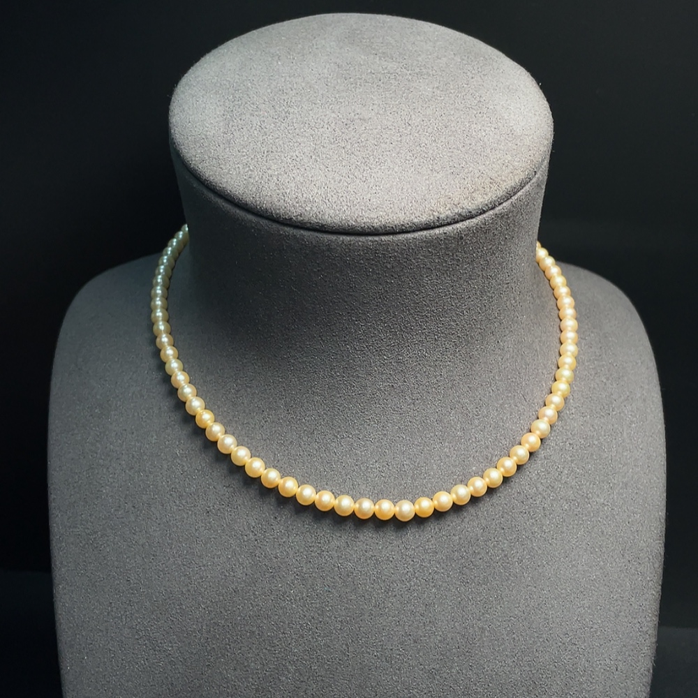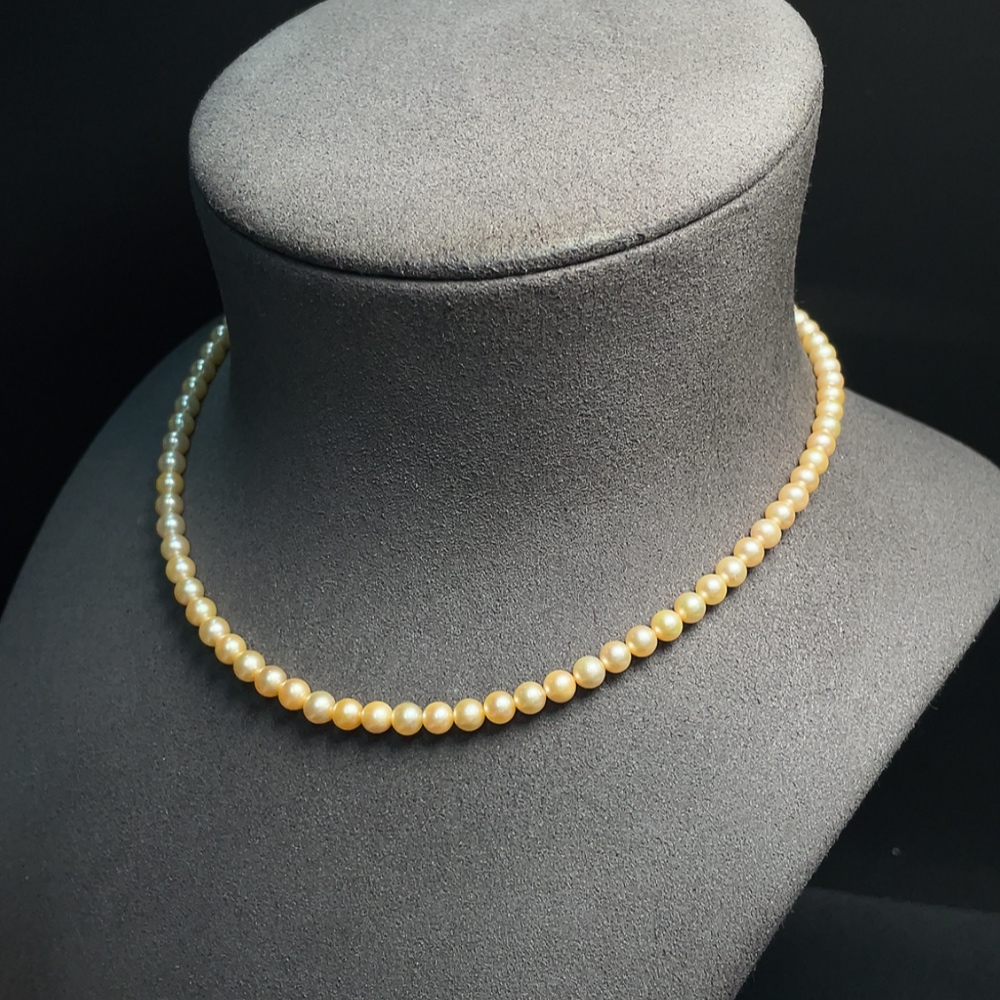Seawater pearl necklace, color origin undetermined, gold content Au58%, total weight approximately 11.57g, size about 4.8mm