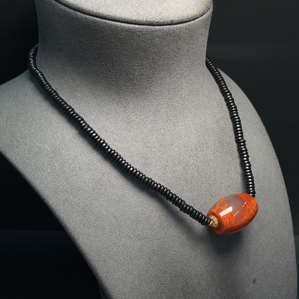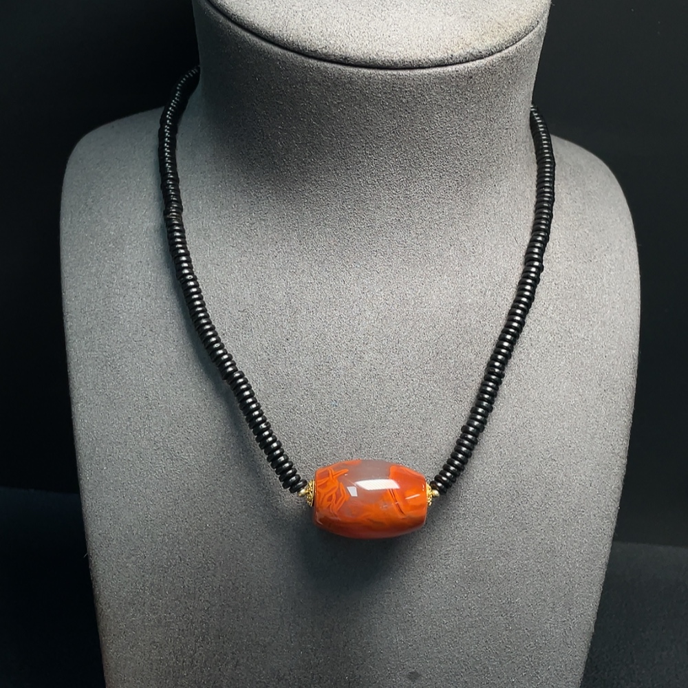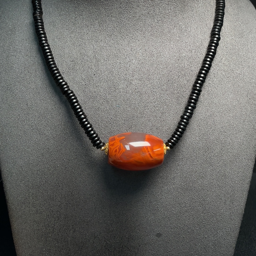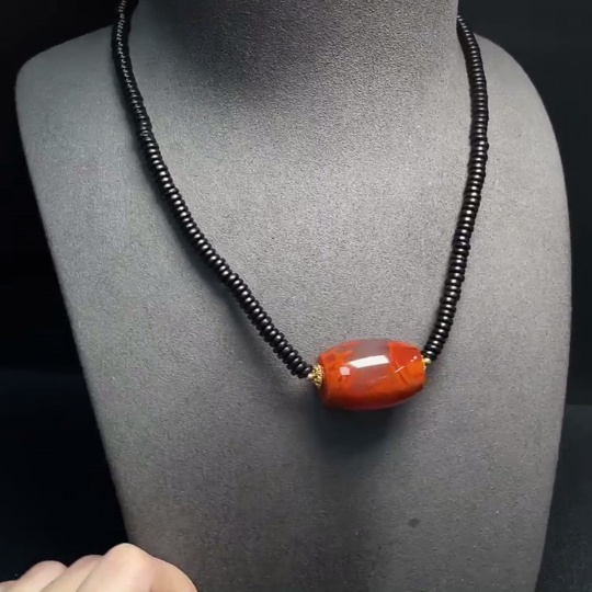 Trezaar - South Red Agate Bead Strand with Visible Organic Matter, Non-Natural Matching Chain (Non-Gold), Total Weight Approx. 28.85g Including Chain