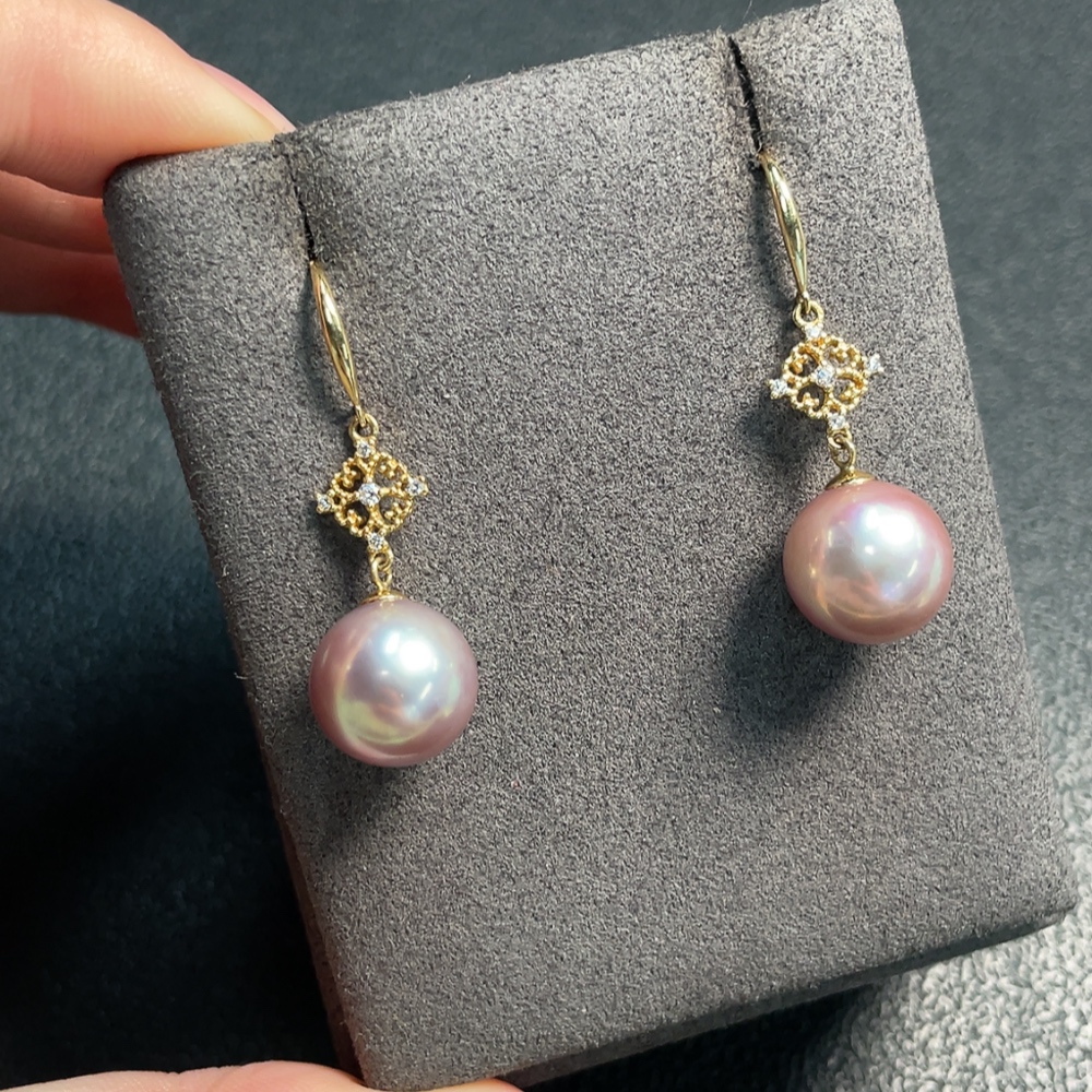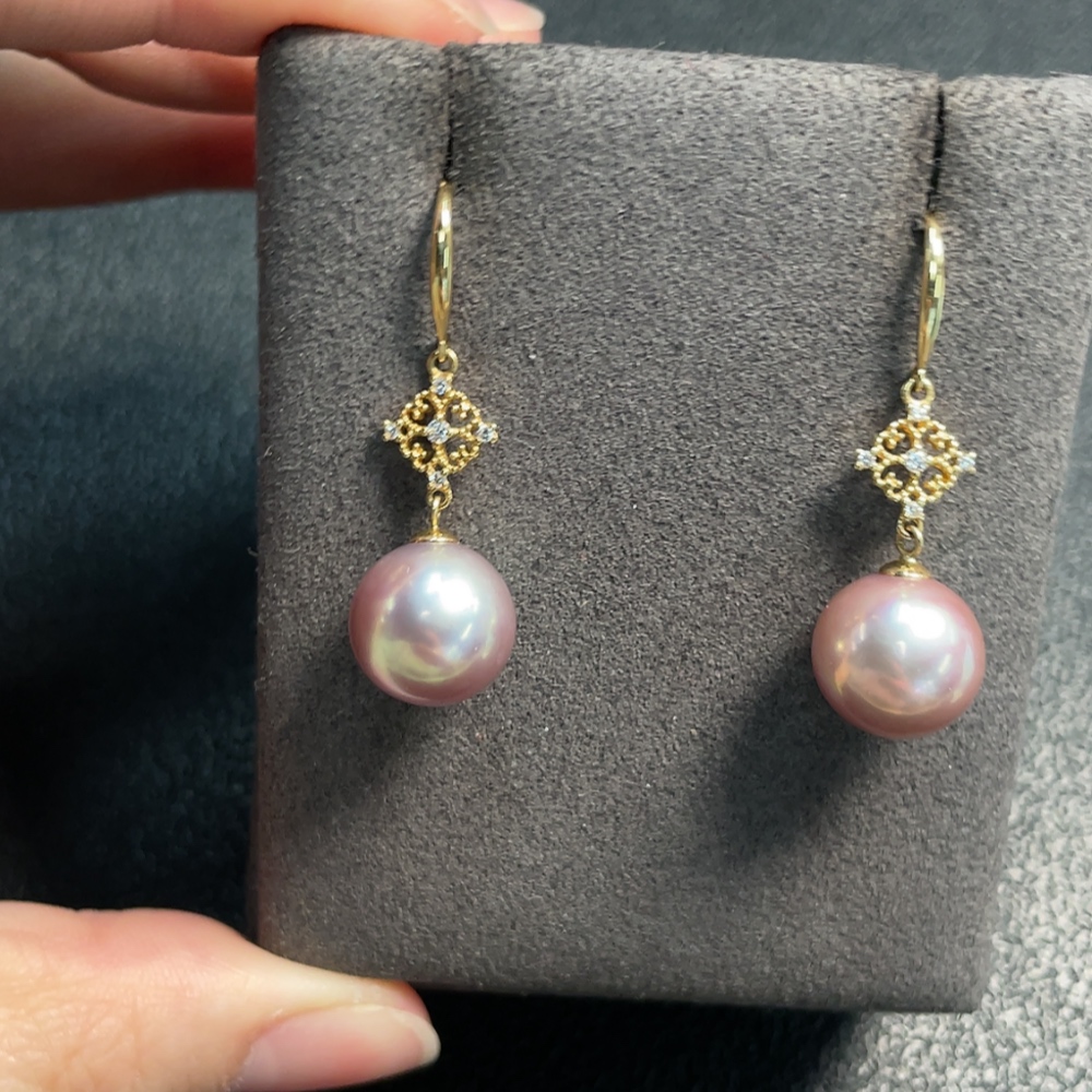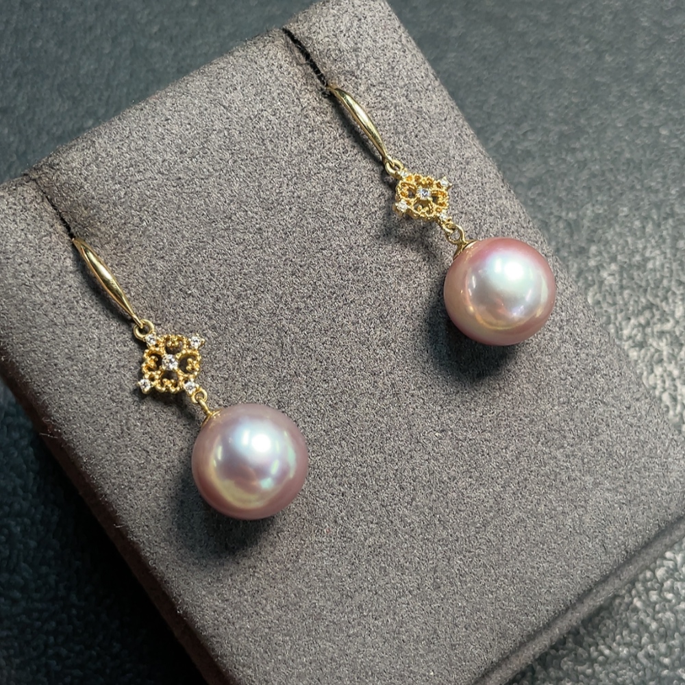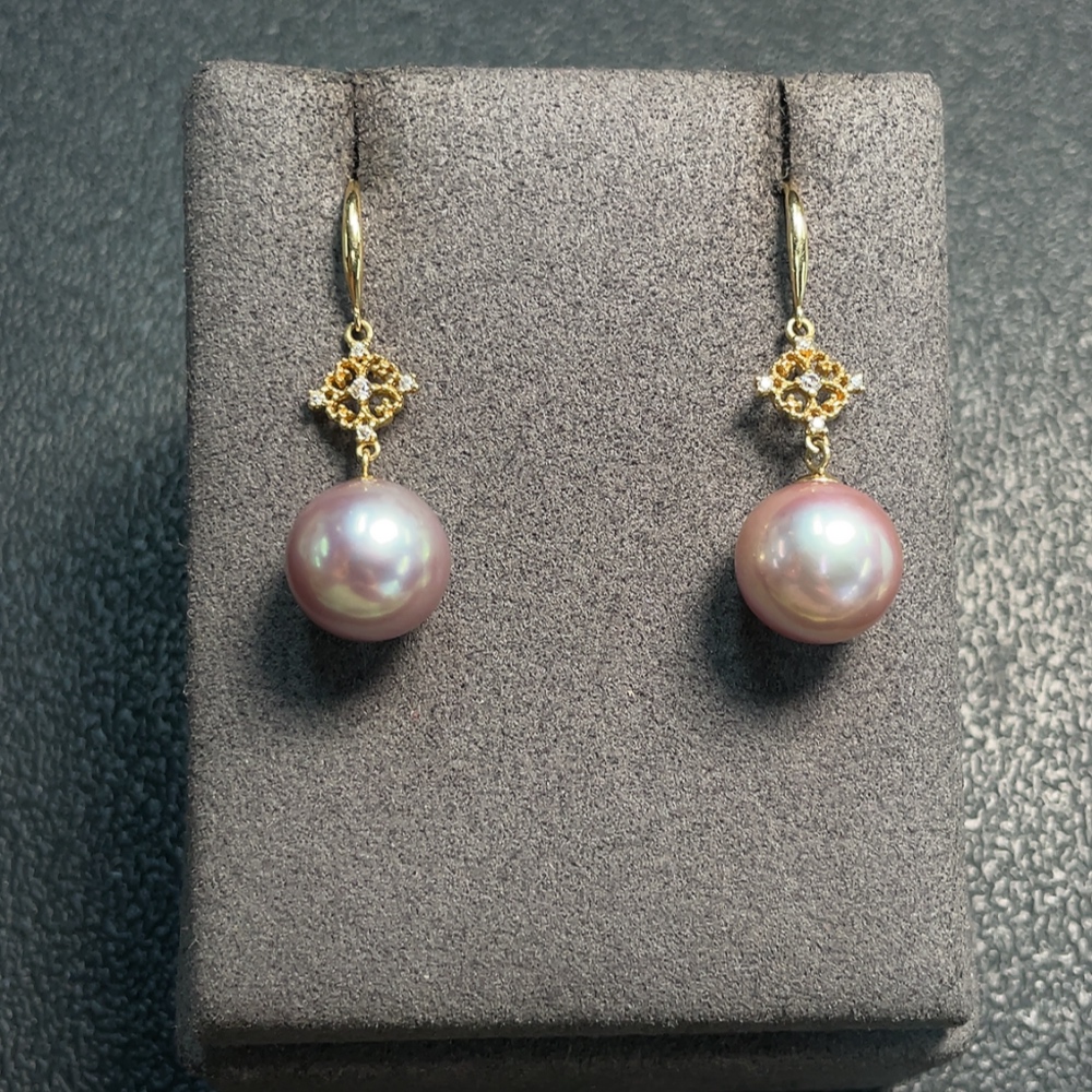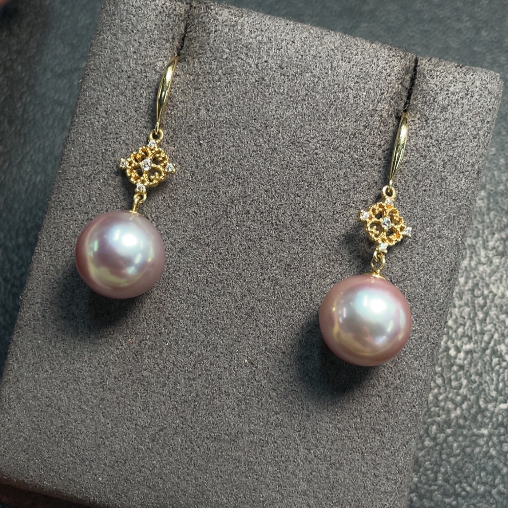 18K Pearl Earrings Non-Diamond Total Weight Approx. 5.51g Size 11.2mm