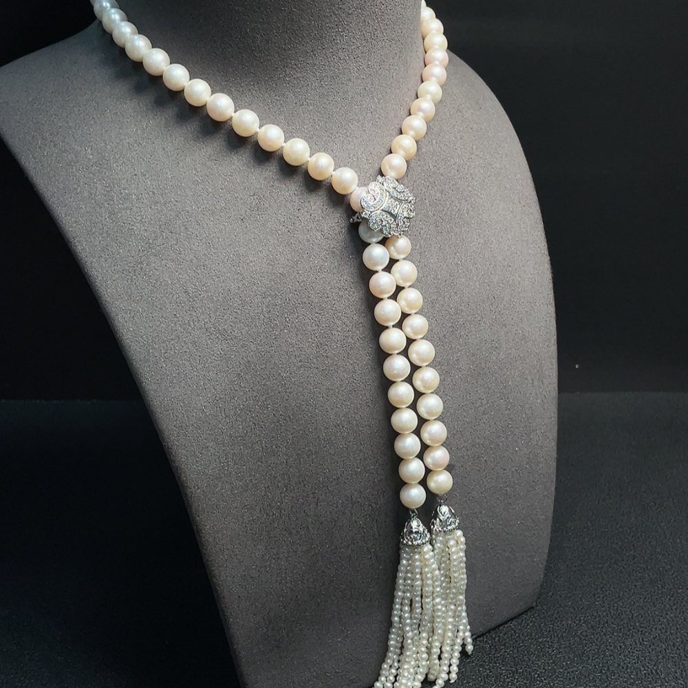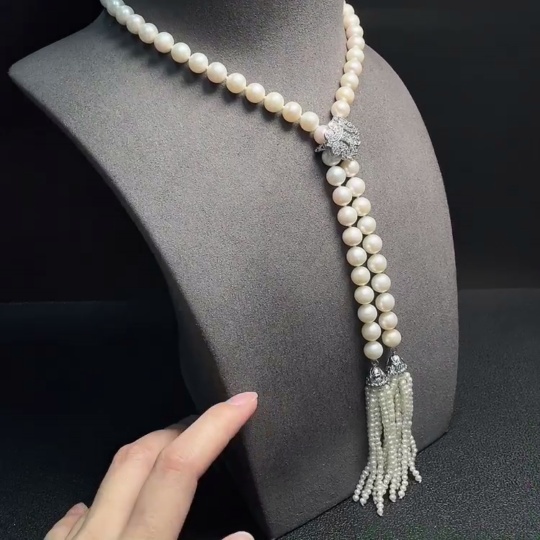 Pearl bead necklace non-gold total weight approx. 86.41g size 2.4-8.2mm