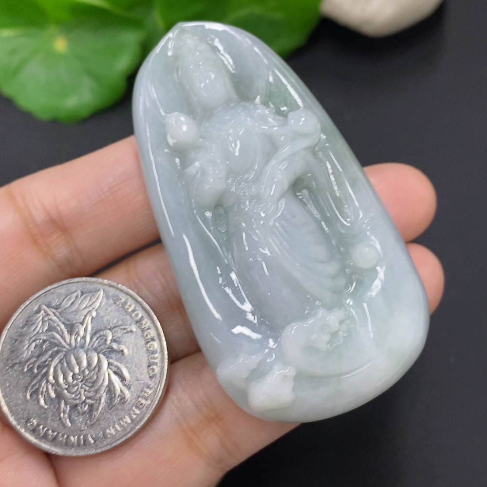 Jadeite Guanyin Pendant, Total Weight Approx. 48.1g