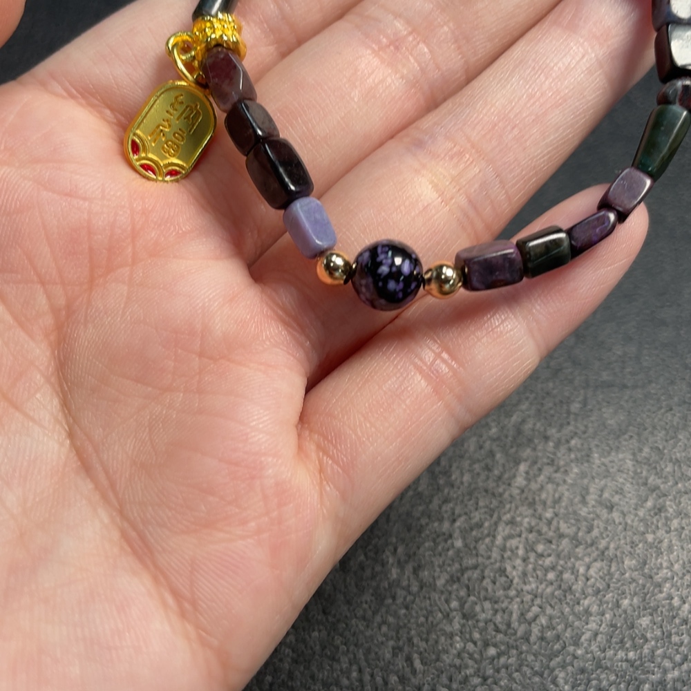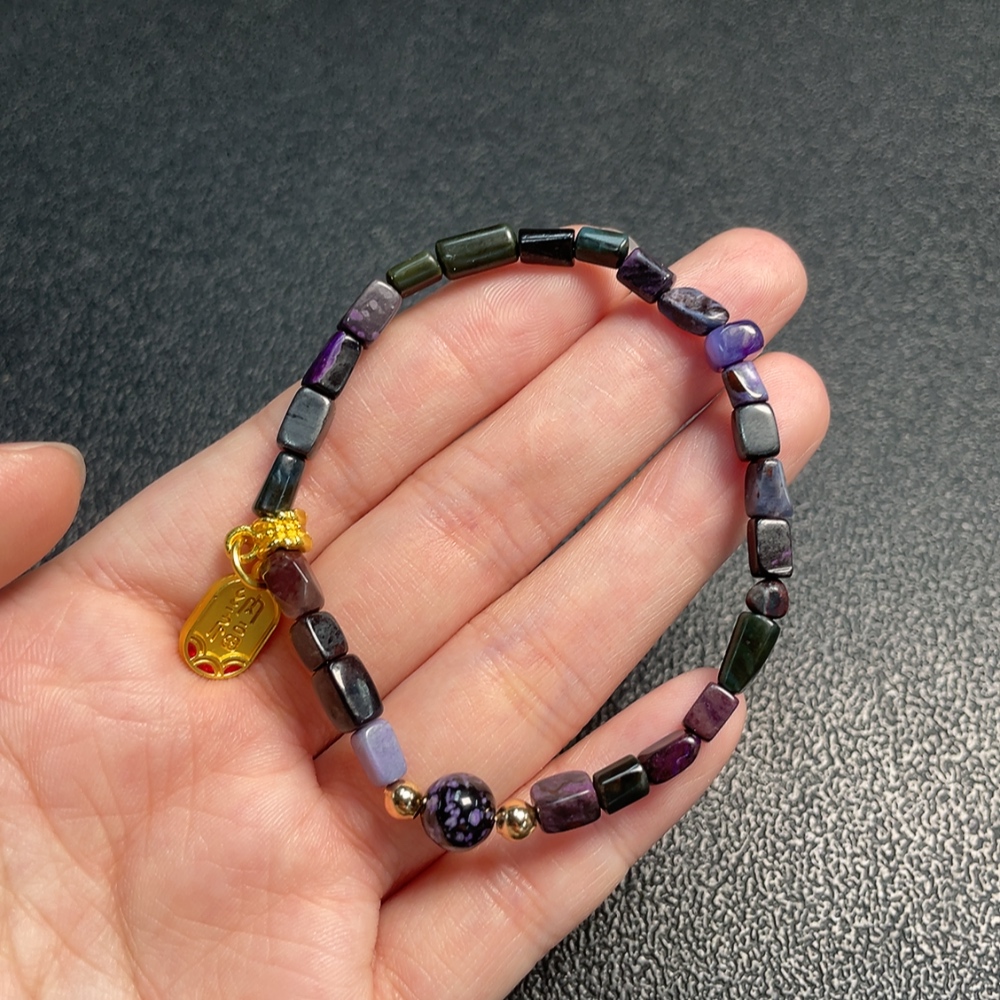 Sugilite bracelet with other mineral components, non-gold, total weight approx. 8.36g, size approx. 4.1mm (mineral-containing, purple only)