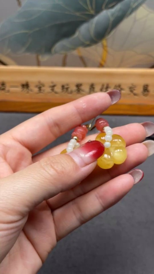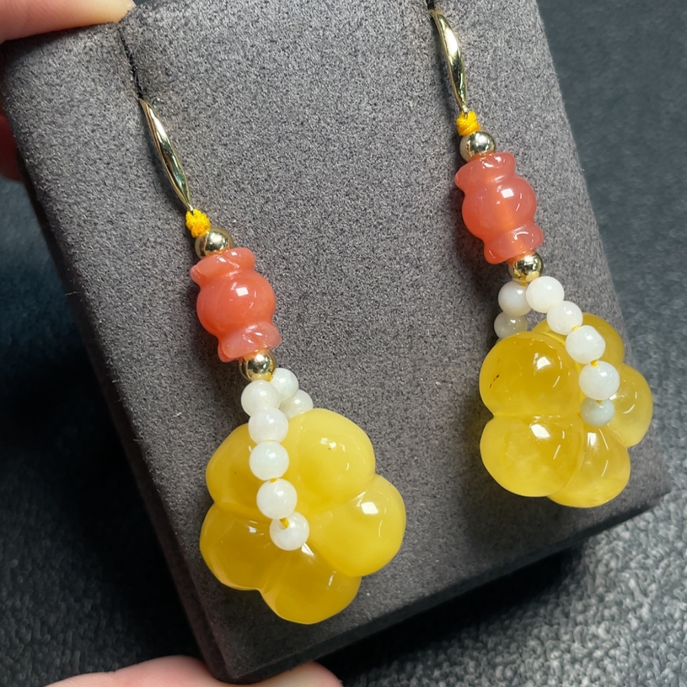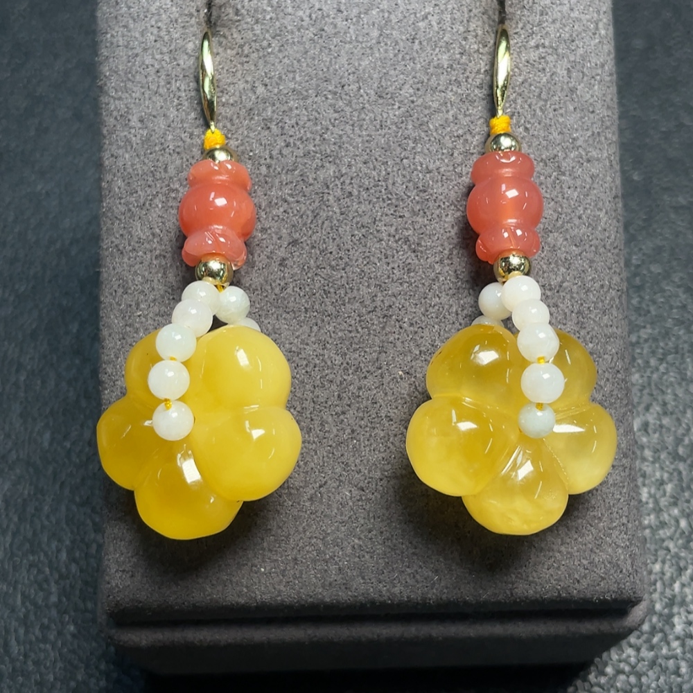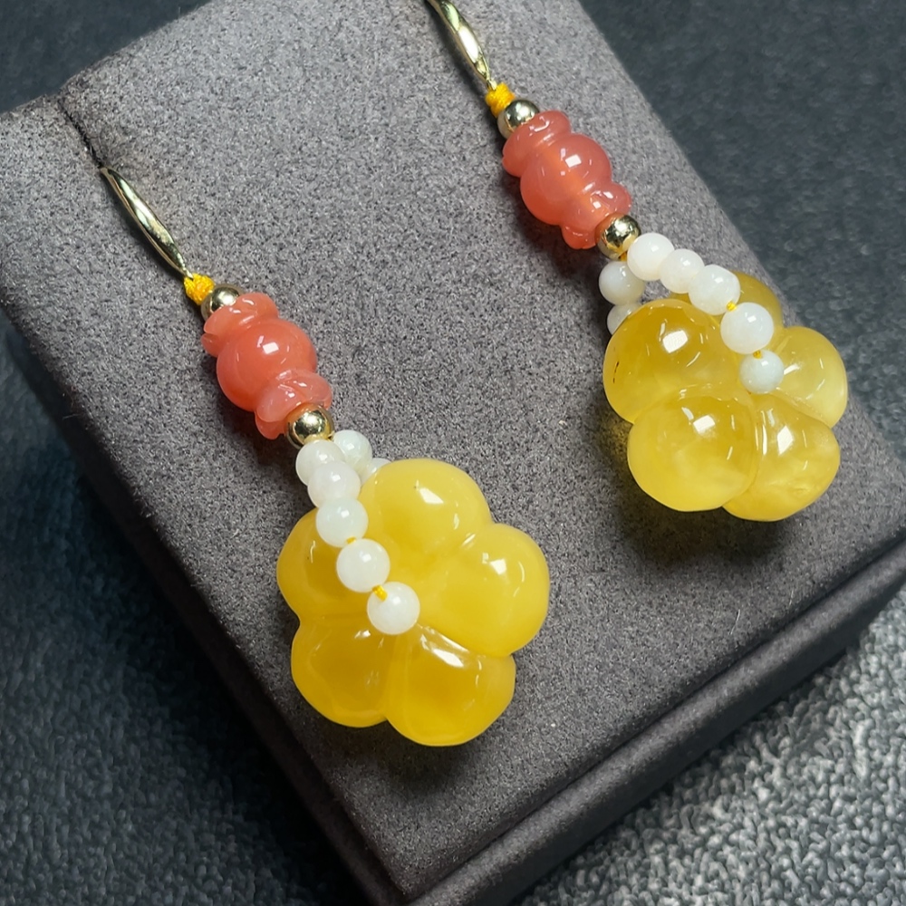 Amber Beeswax Earrings with Salt Source + Jadeite Non-Gold Colorless Film Coating Total Weight Approx. 9.79g