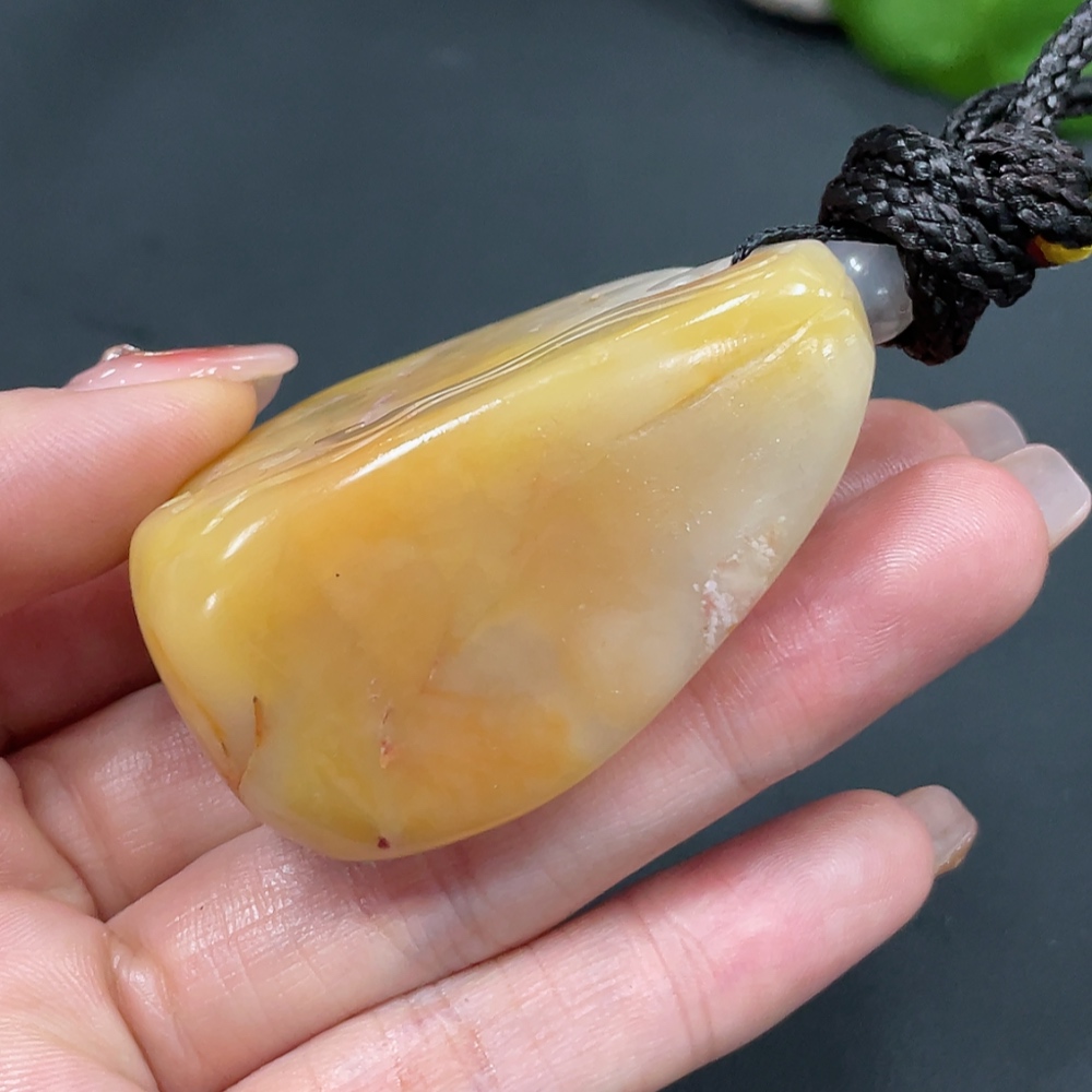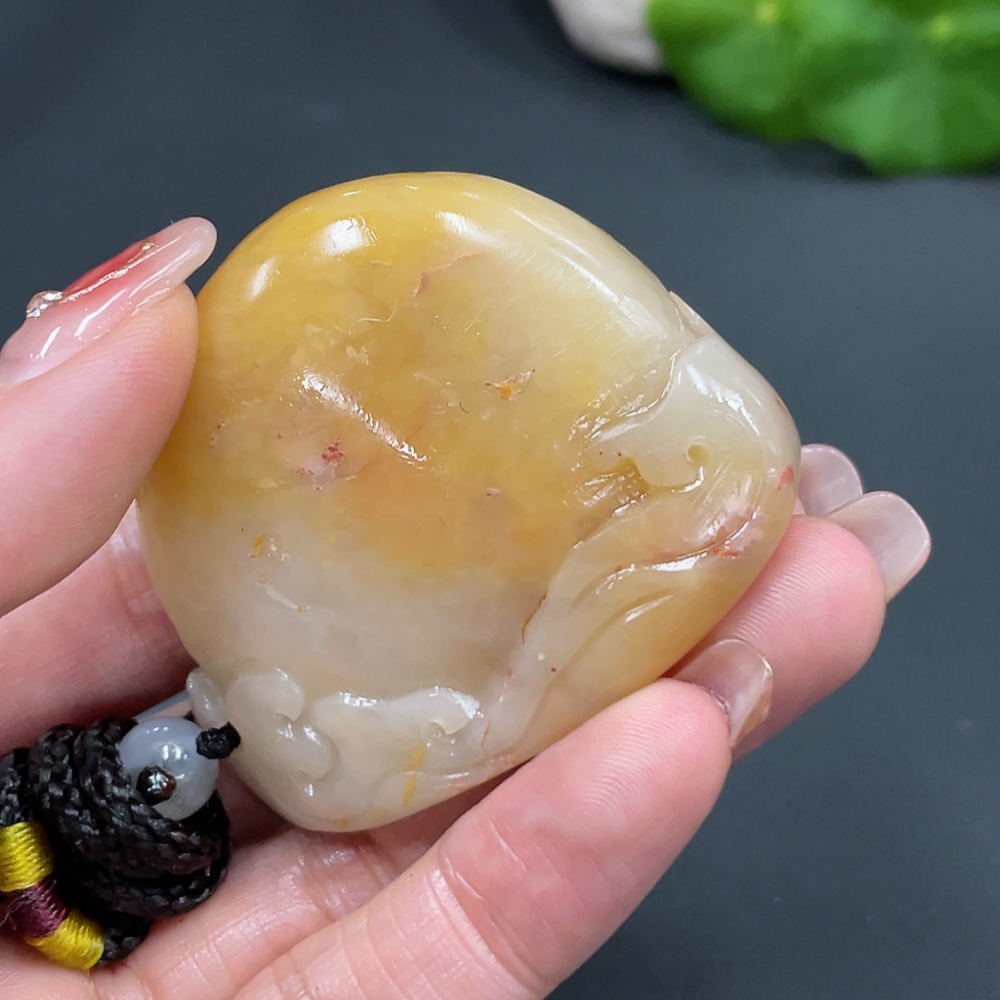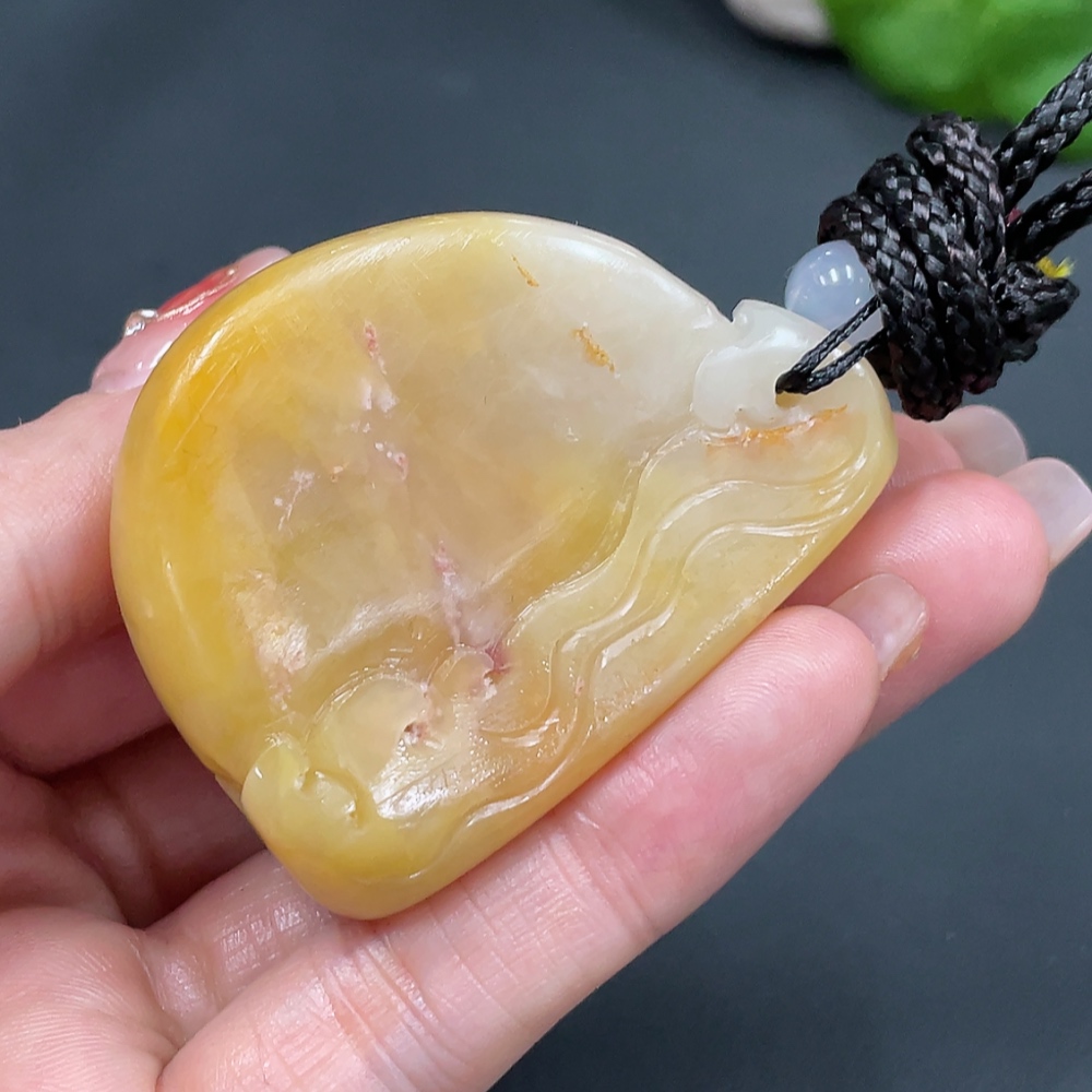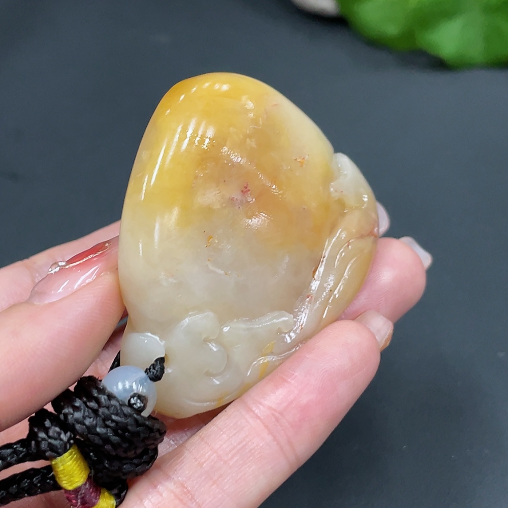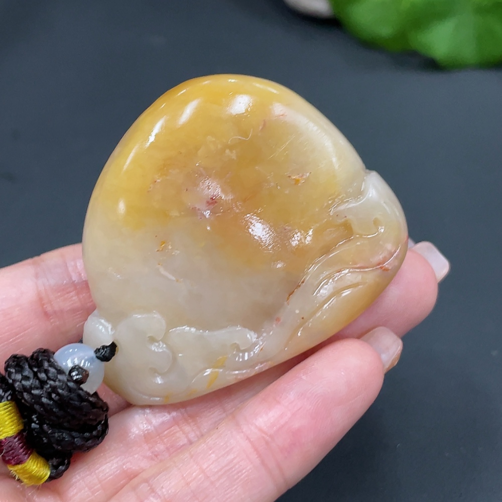 Shoushan Stone Handheld Piece, Antique-style Piece, Total Weight Approx. (Including Rope) 68.9g
