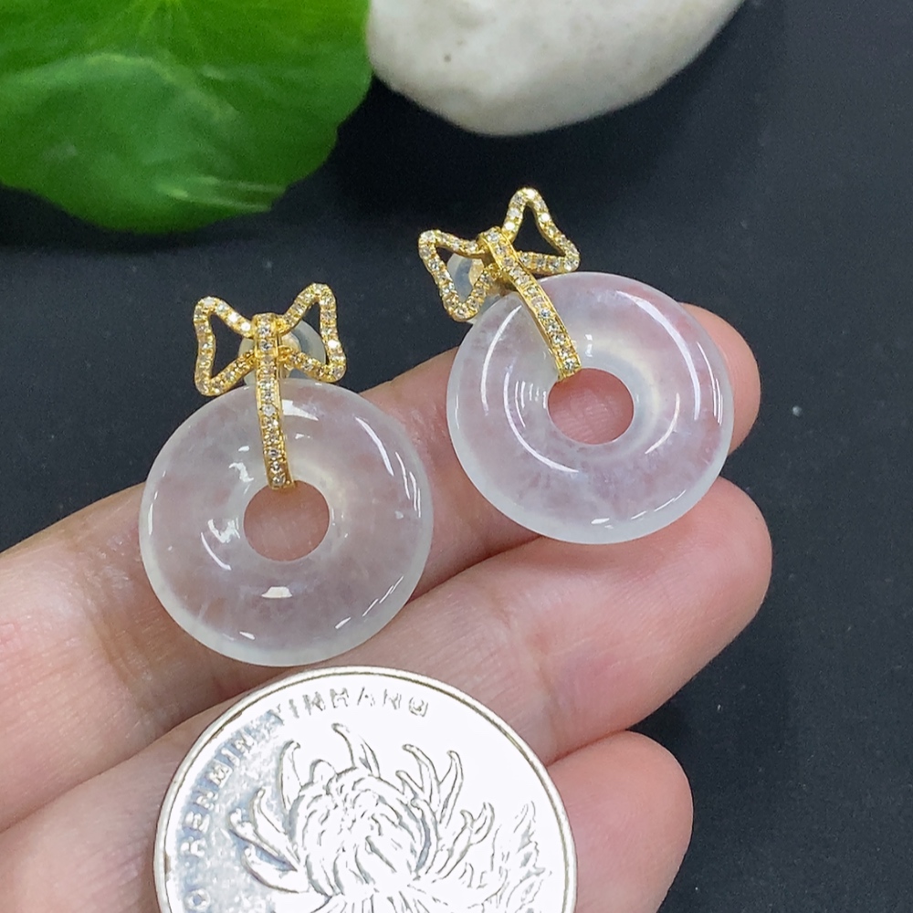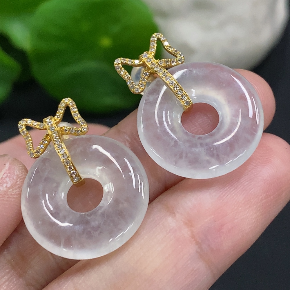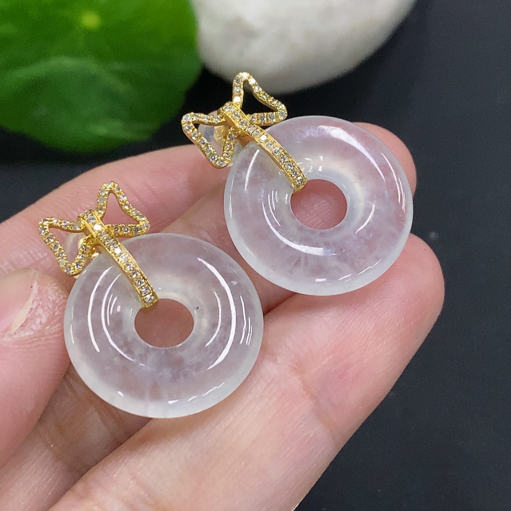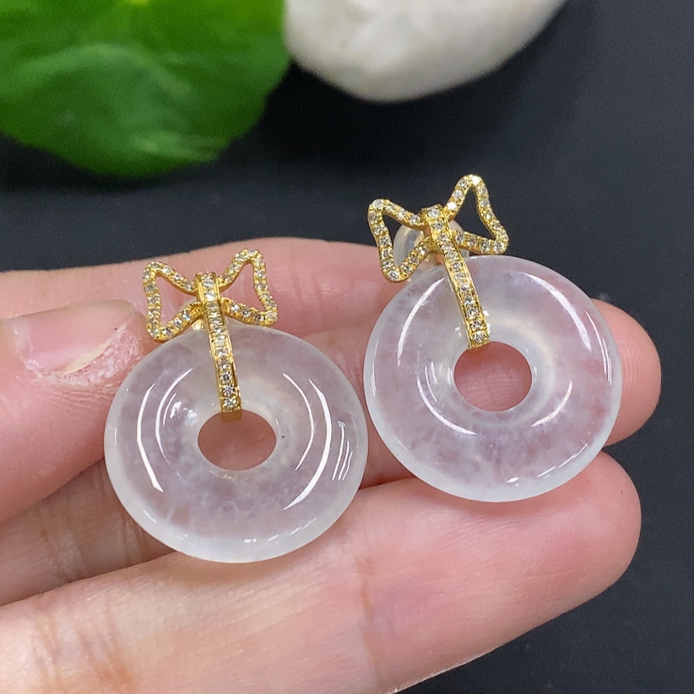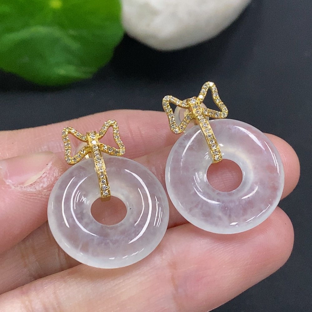 Jadeite earrings set in 18K gold, total weight approximately 7.2g (excluding ear stoppers), accented with diamonds