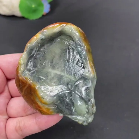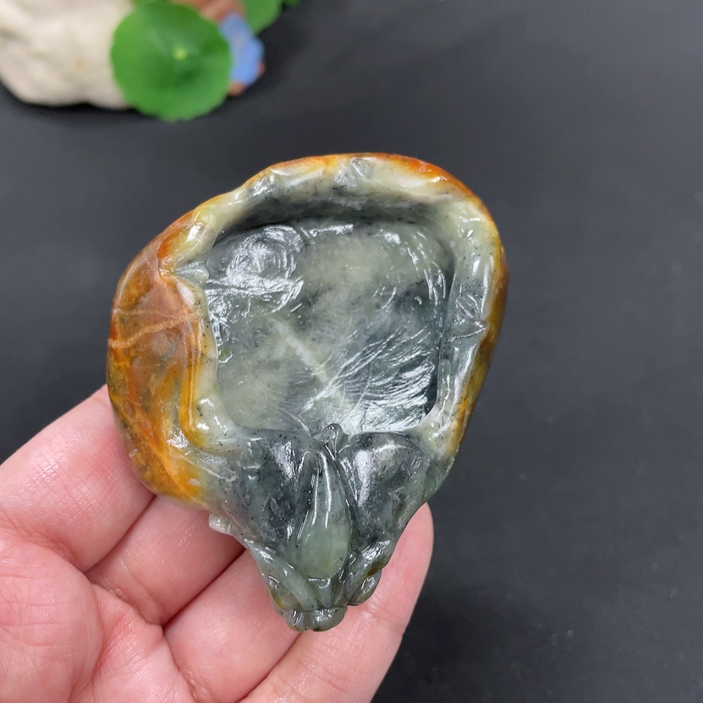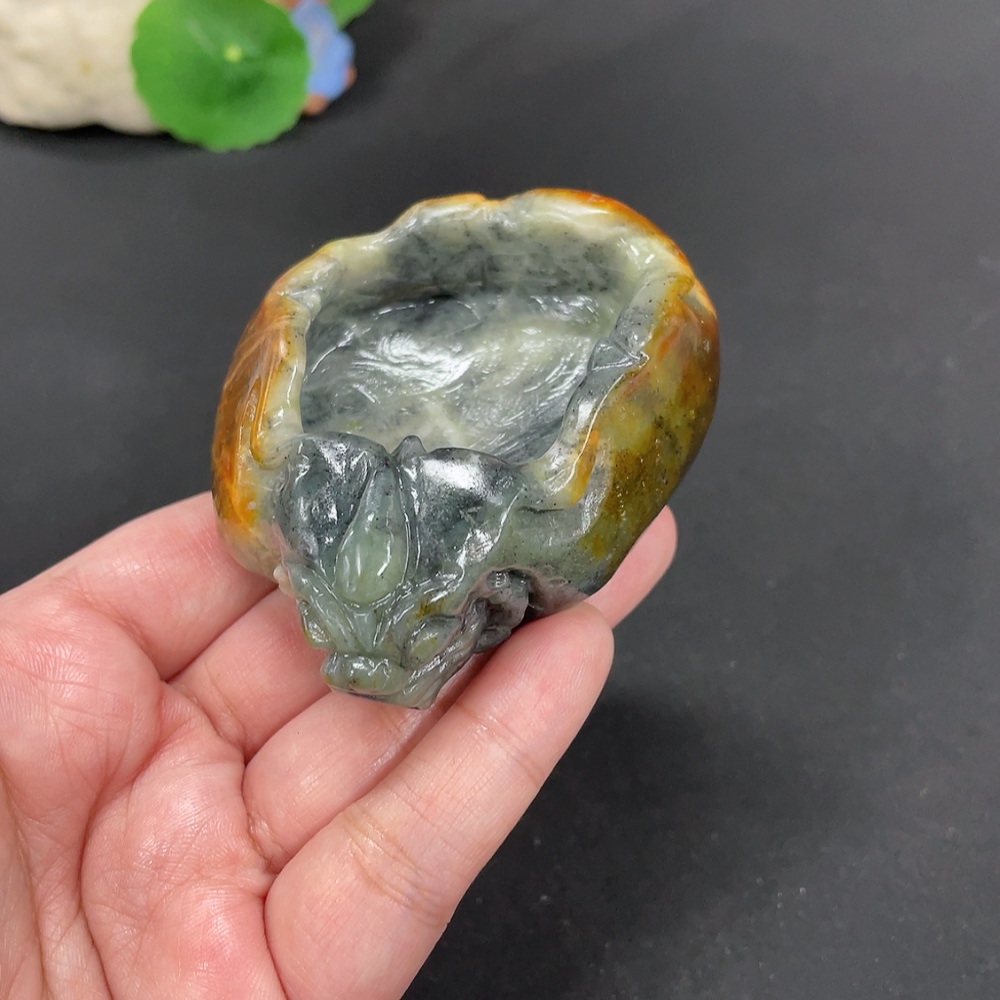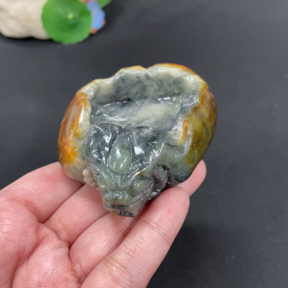 Hetian Jade Auspicious Beast Brush Washer, undetermined skin color origin, containing other mineral components, total weight approximately 144.7g