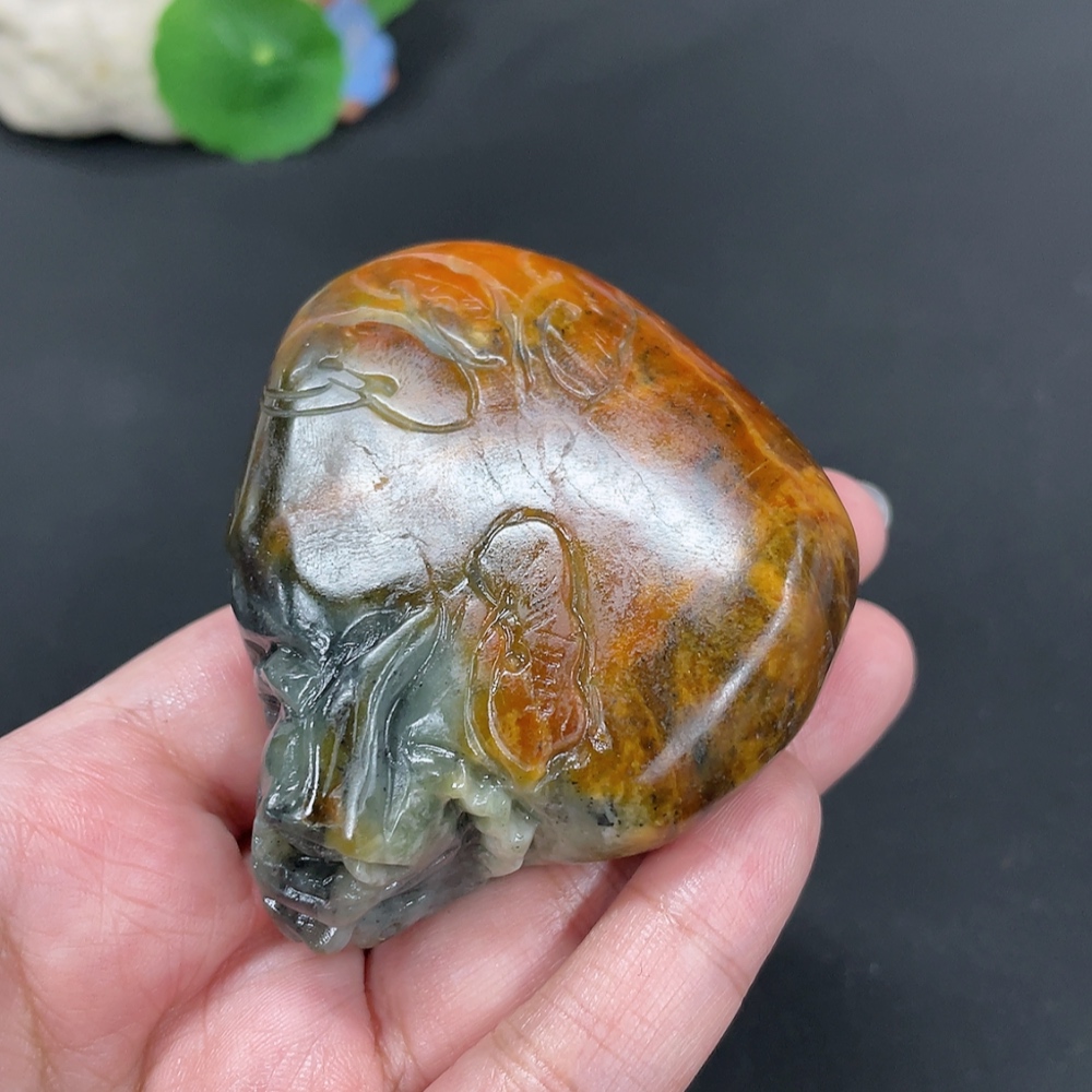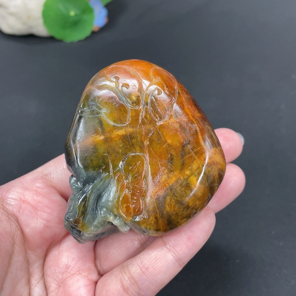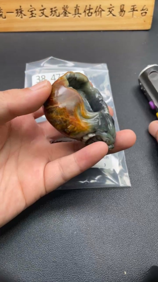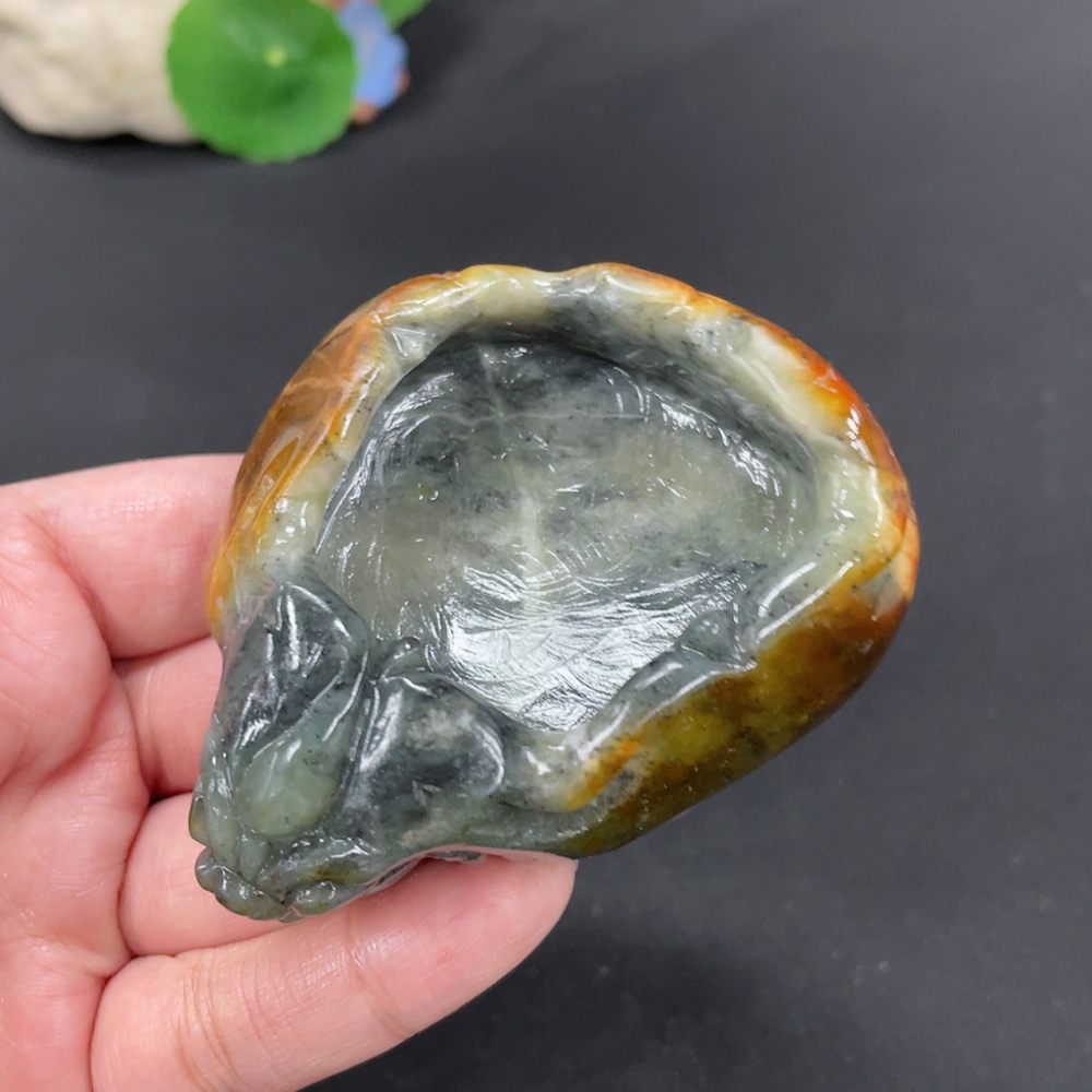 Hetian Jade Auspicious Beast Brush Washer, undetermined skin color origin, containing other mineral components, total weight approximately 144.7g